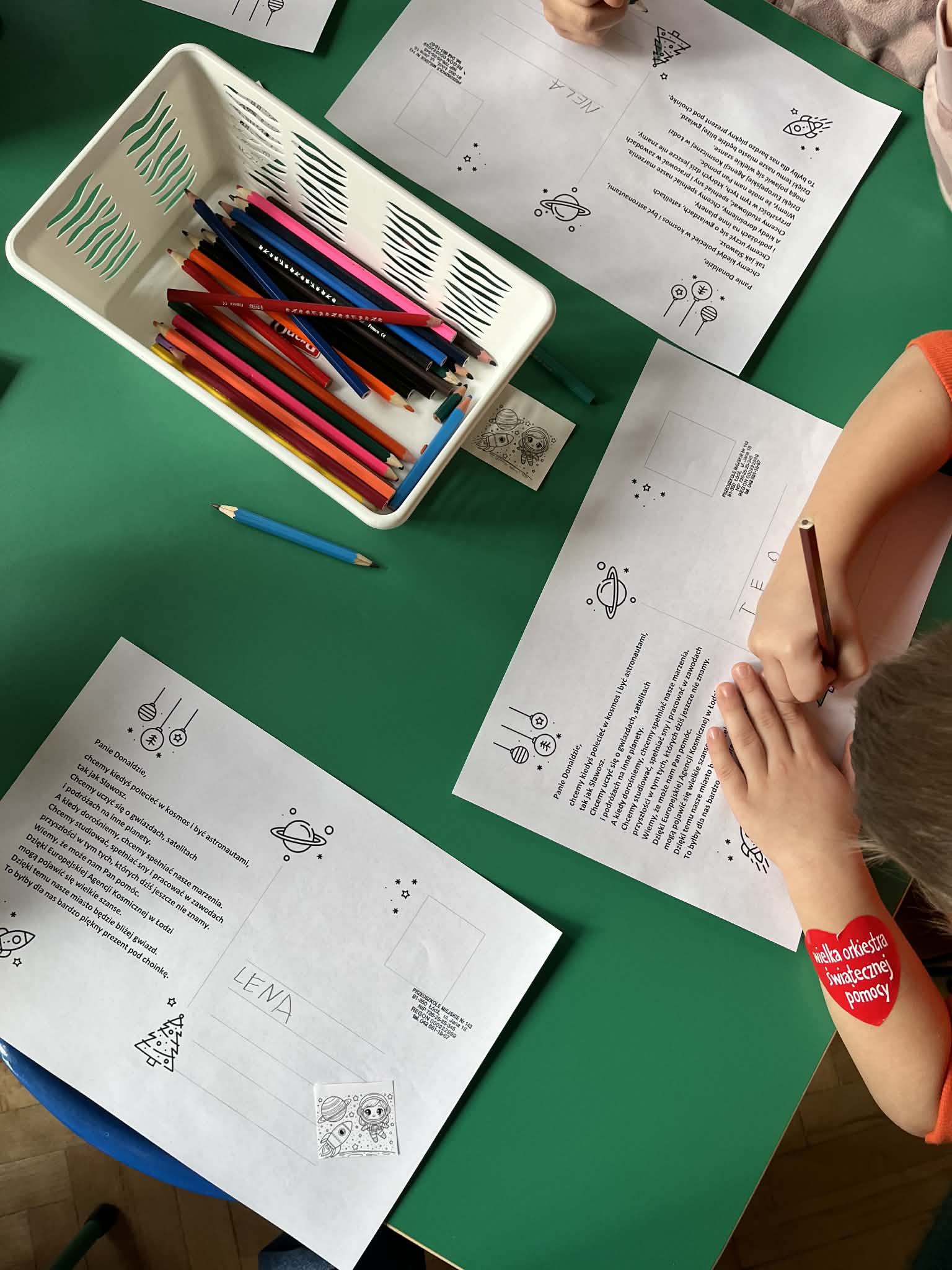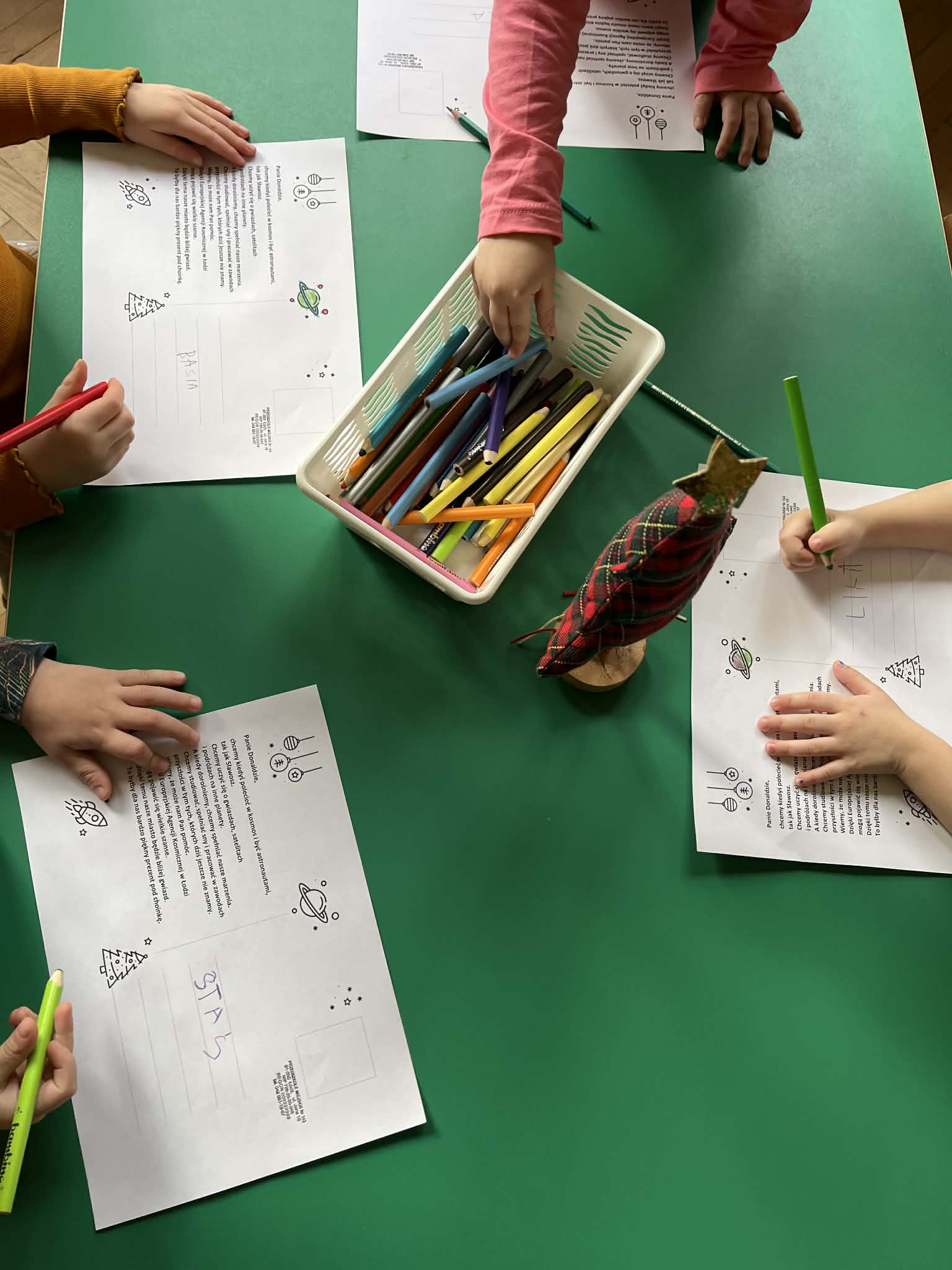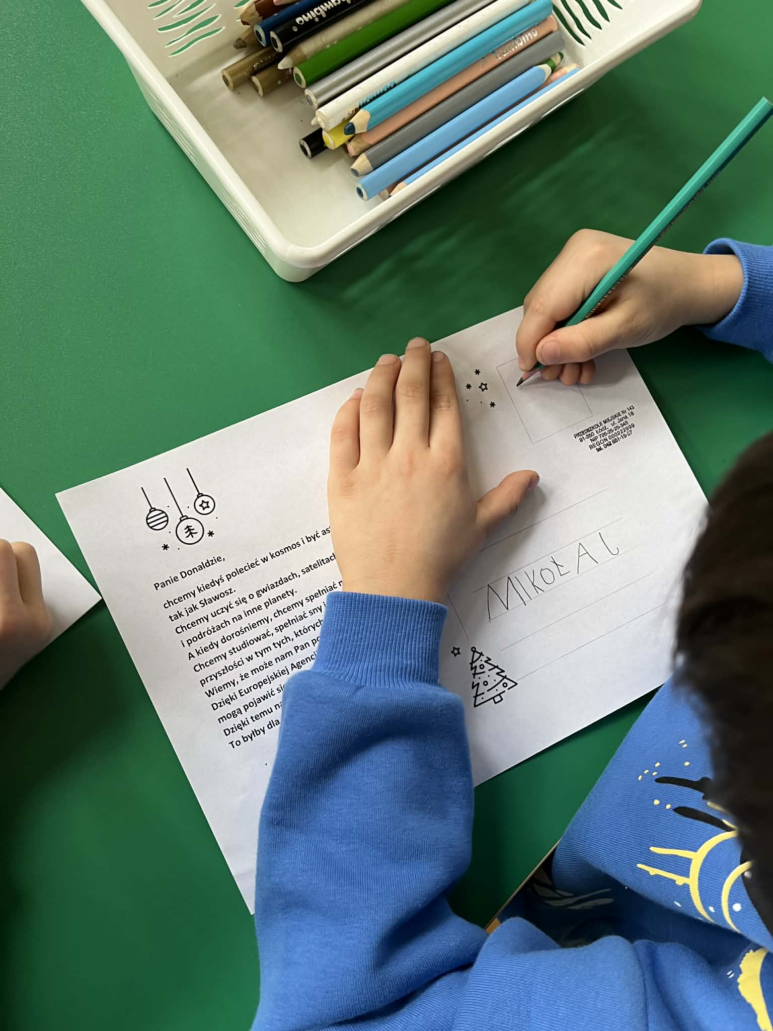 Dzieci, nauczyciele oraz pracownicy naszego przedszkola z dużym zaangażowaniem włączyli się w akcję podpisania i wysłania specjalnej kartki do Prezesa Rady Ministrów jako wyraz wsparcia dla idei powstania Europejskiego Centrum Kosmicznego w Łodzi.