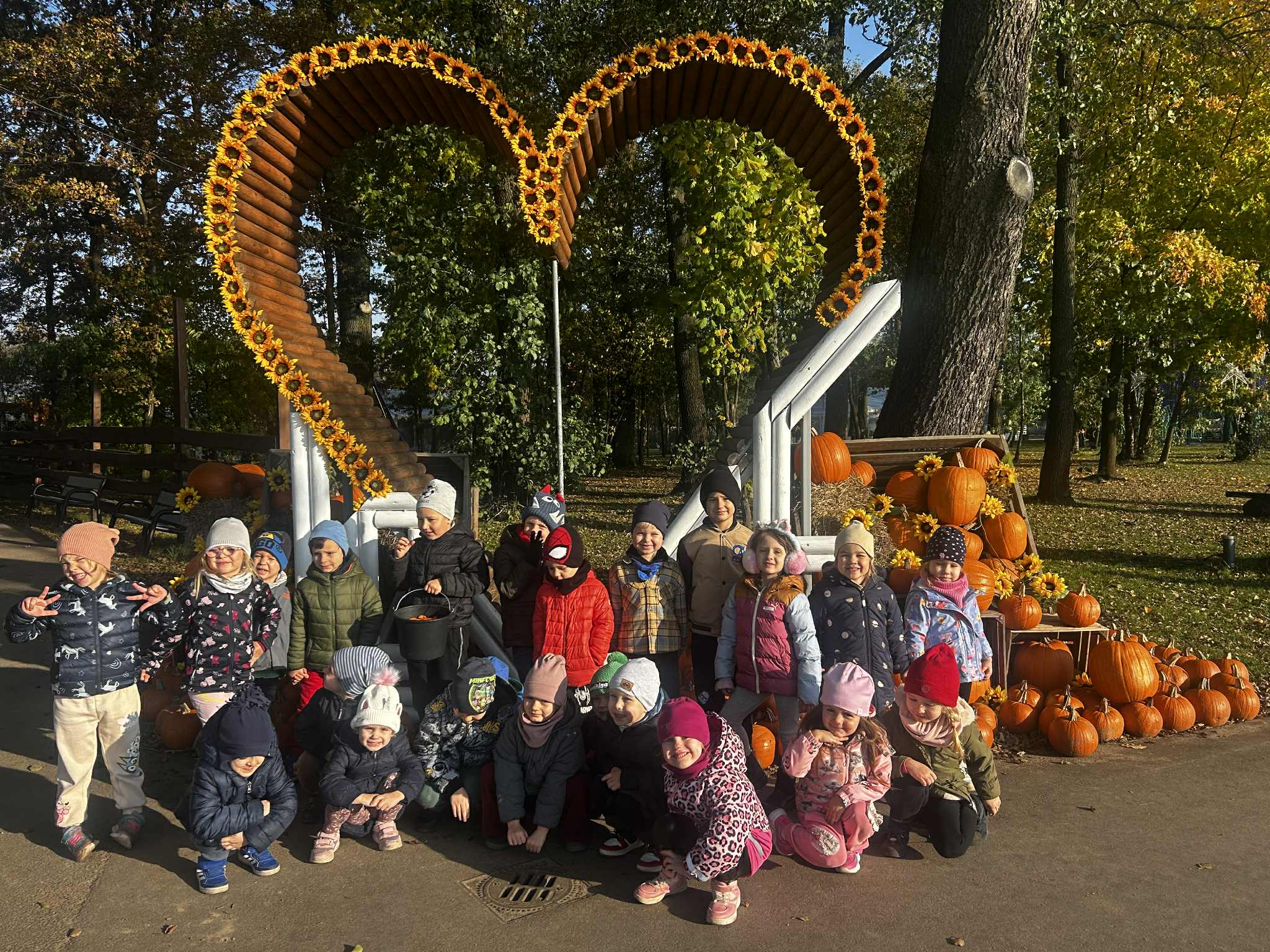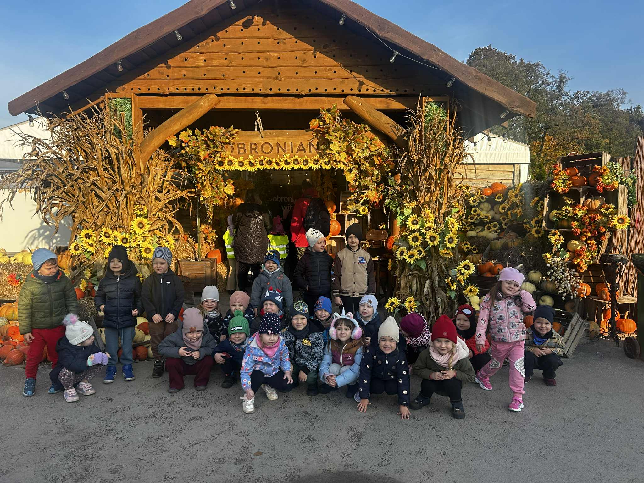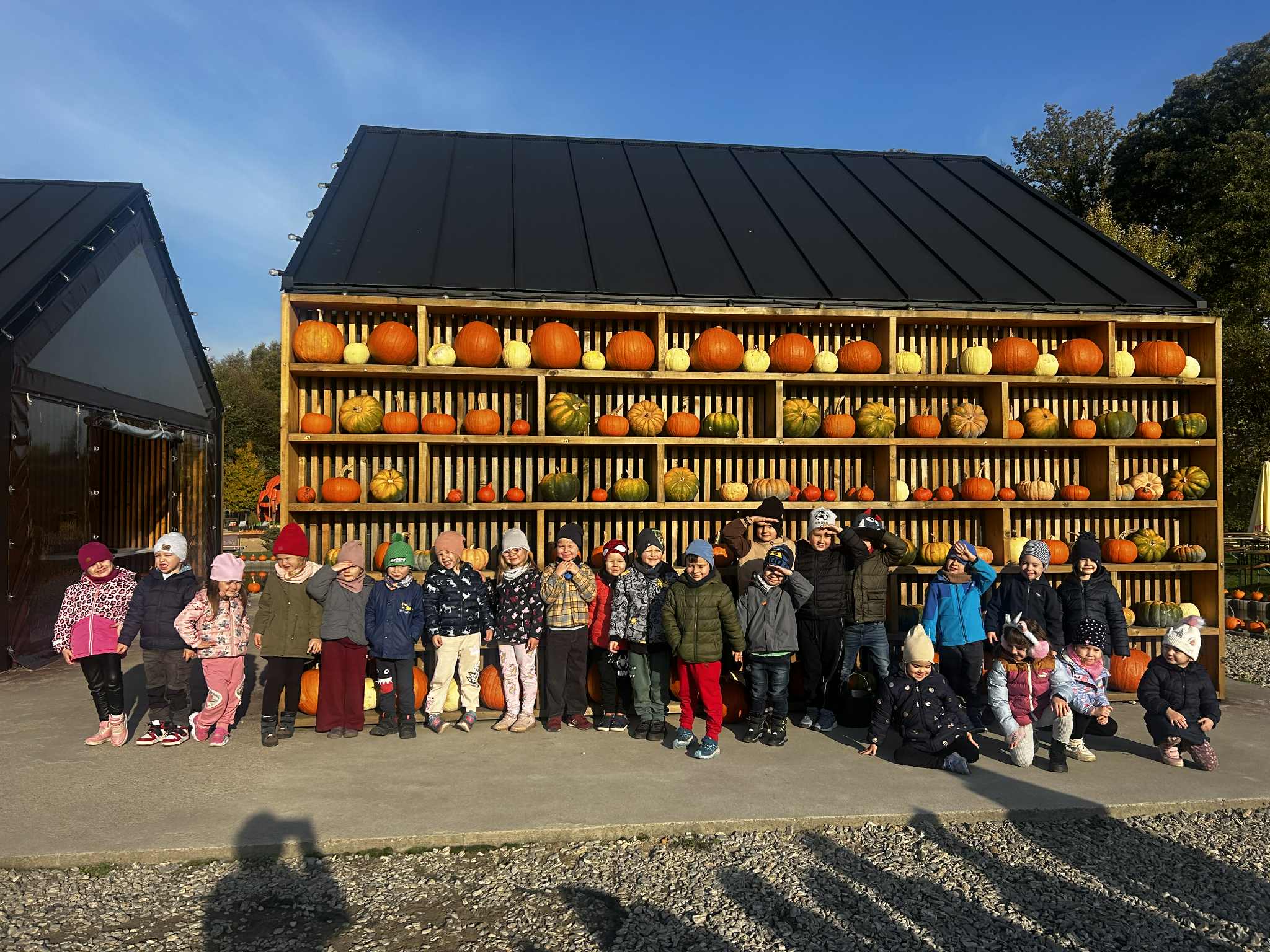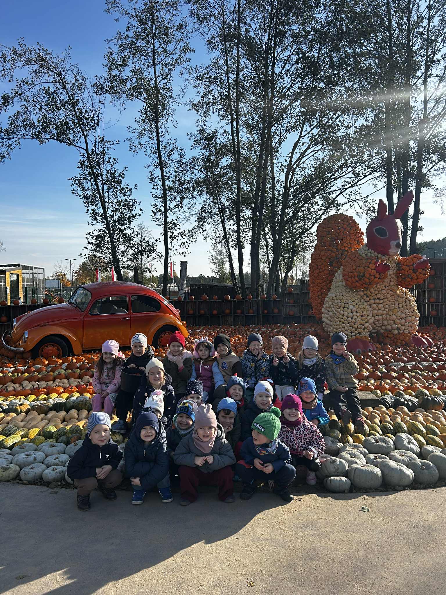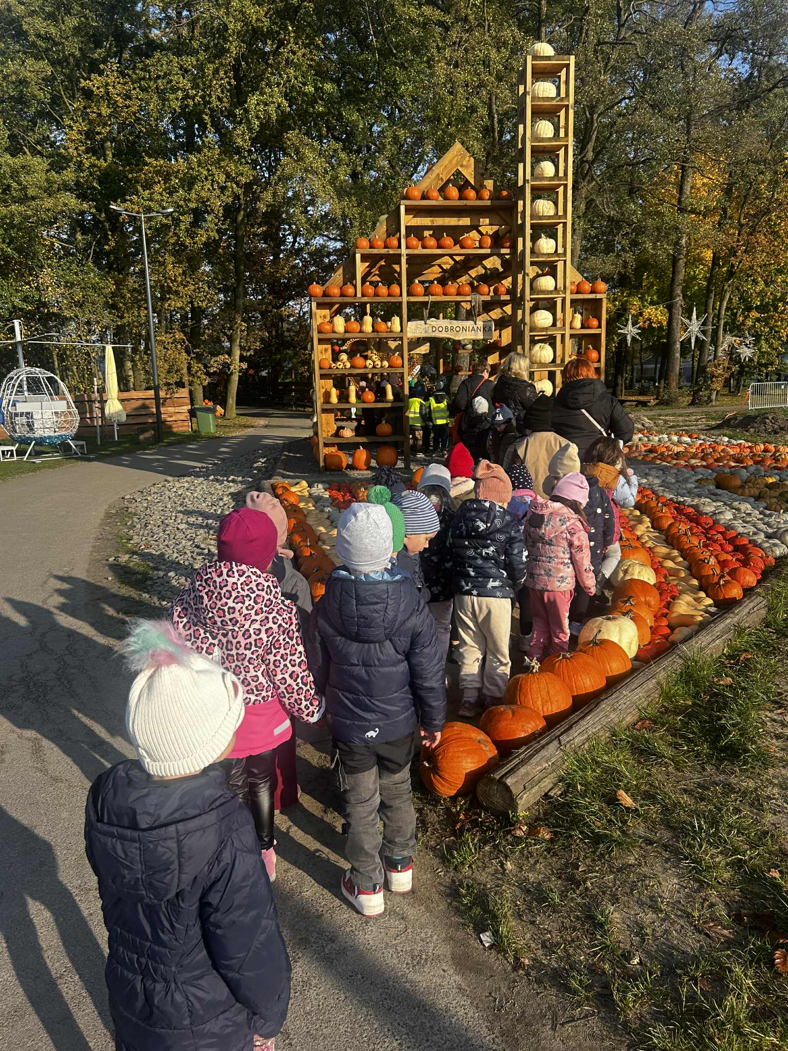 Dzieci z naszego przedszkola wybrały się na jesienną wycieczkę do Dobronianki. Podczas pobytu mali odkrywcy odwiedzili mini zoo, gdzie z radością karmili zwierzęta i poznawali ich zwyczaje. Następnie uczestniczyli w warsztatach zdobienia dyni – każda praca była wyjątkowa i bardzo pomysłowa!