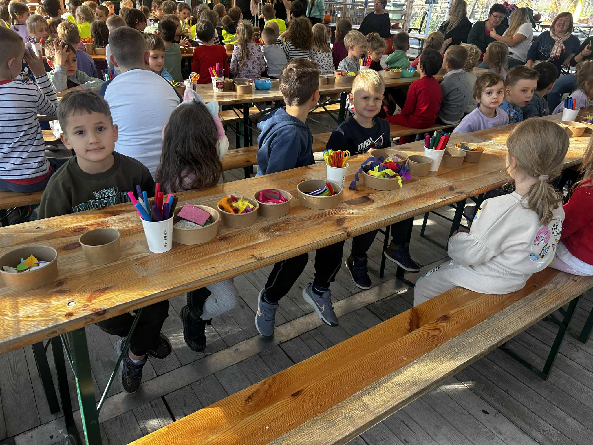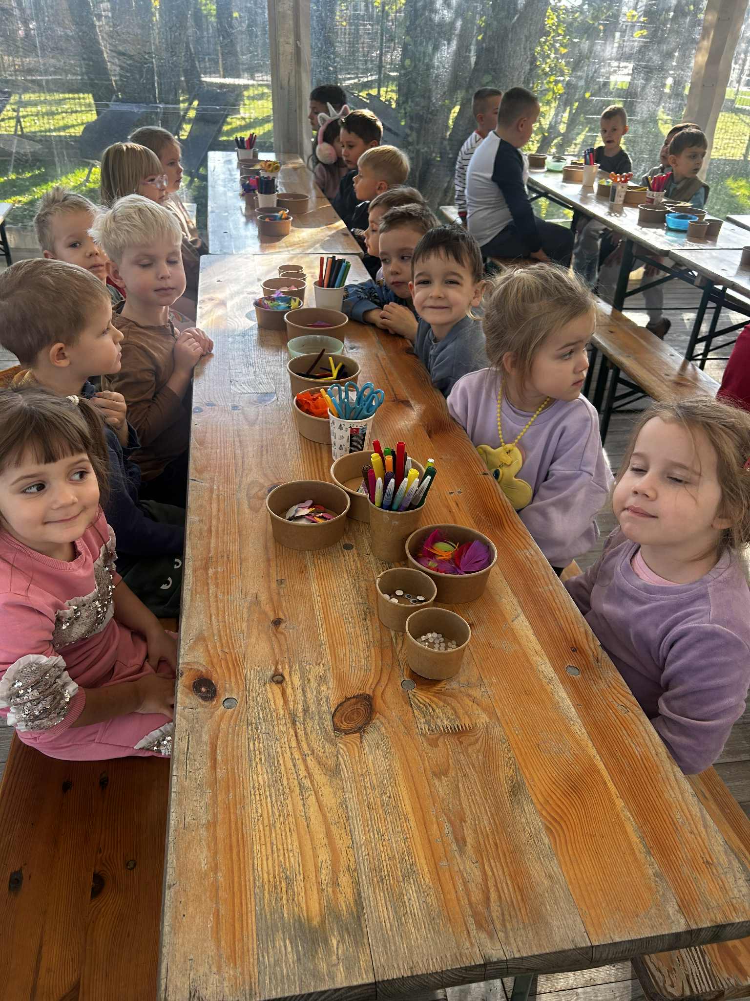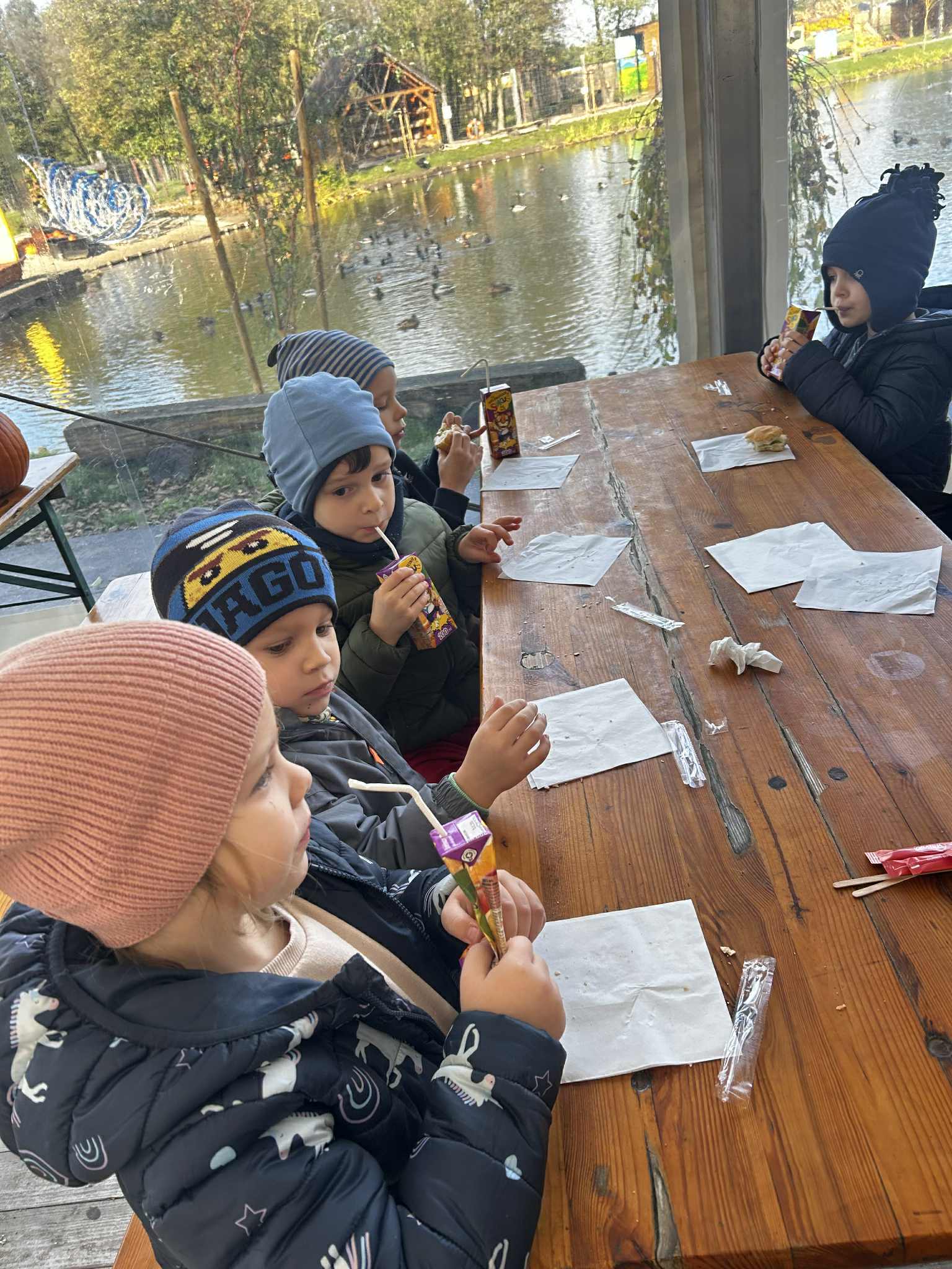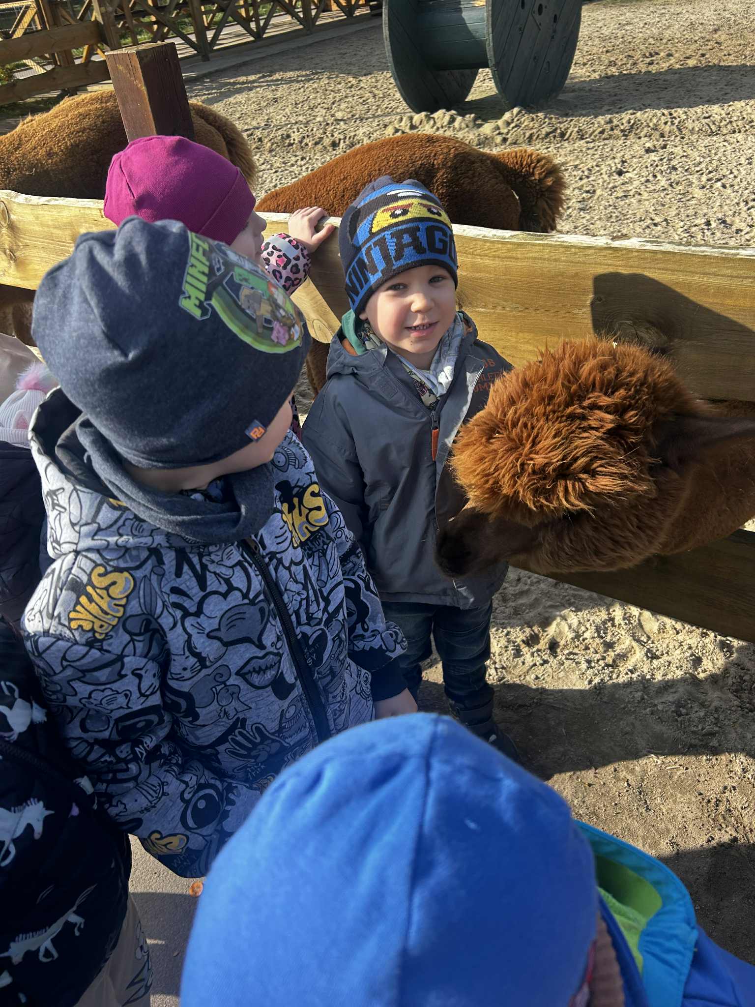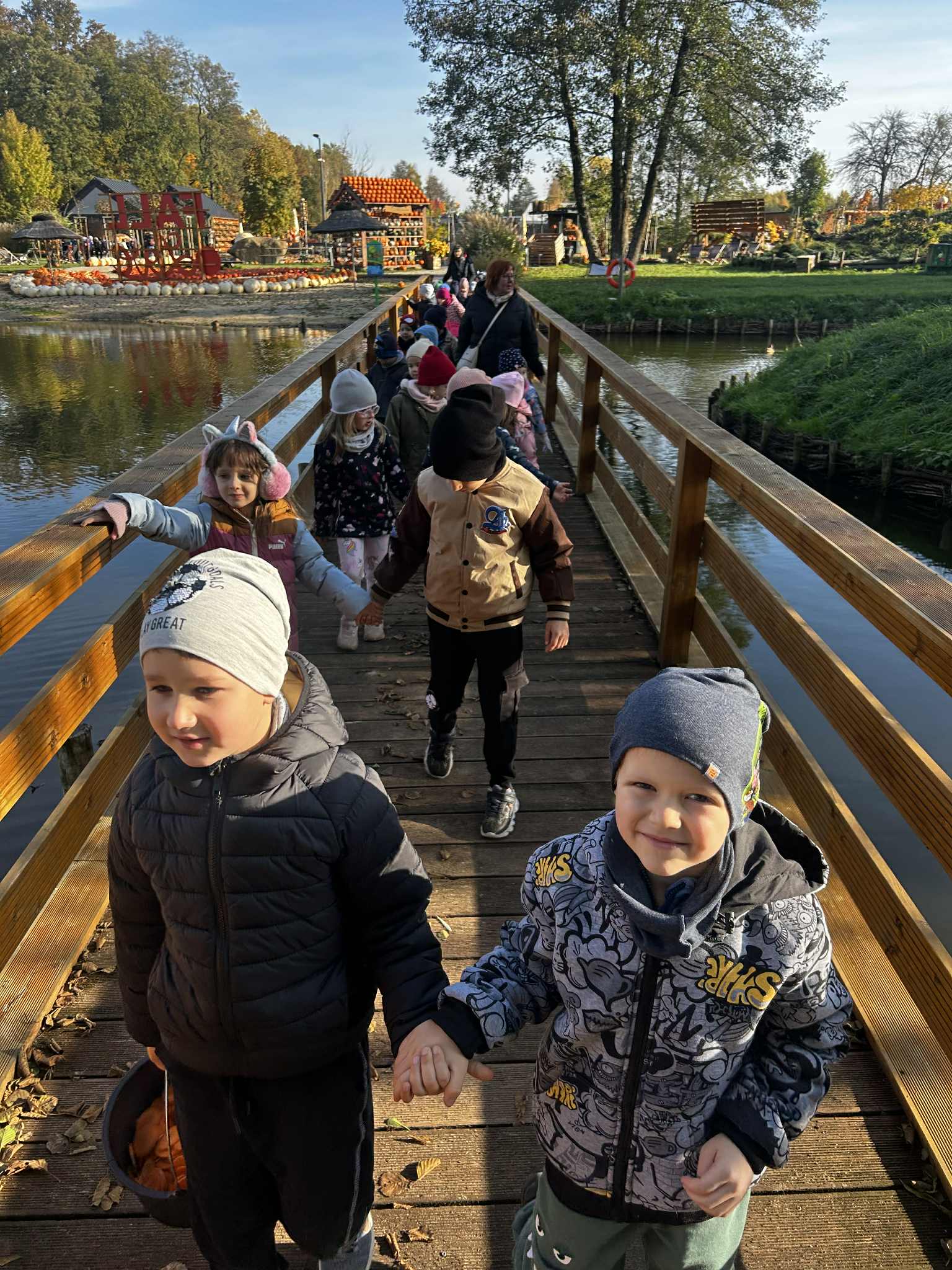 Dzieci z naszego przedszkola wybrały się na jesienną wycieczkę do Dobronianki. Podczas pobytu mali odkrywcy odwiedzili mini zoo, gdzie z radością karmili zwierzęta i poznawali ich zwyczaje. Następnie uczestniczyli w warsztatach zdobienia dyni – każda praca była wyjątkowa i bardzo pomysłowa!