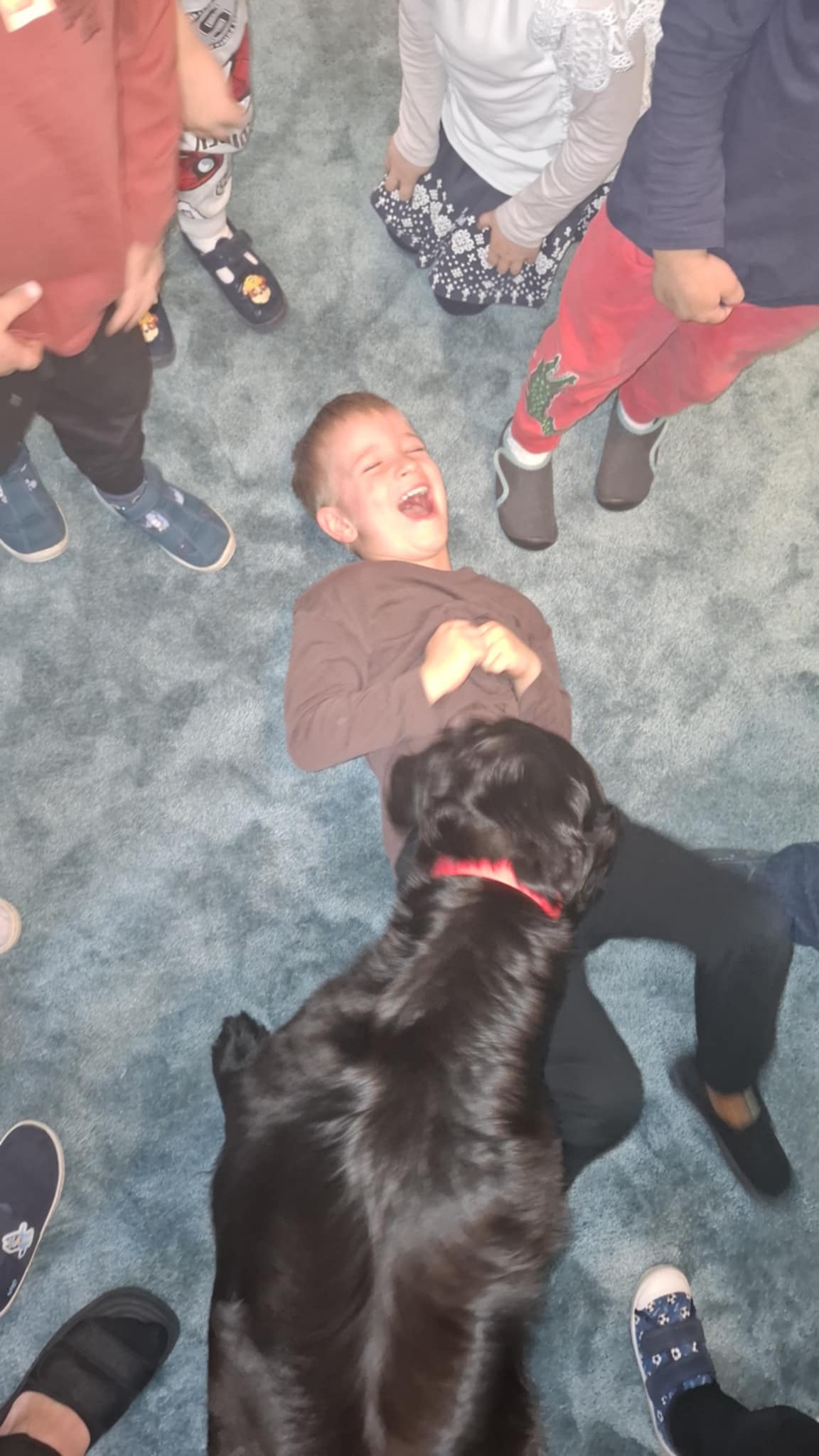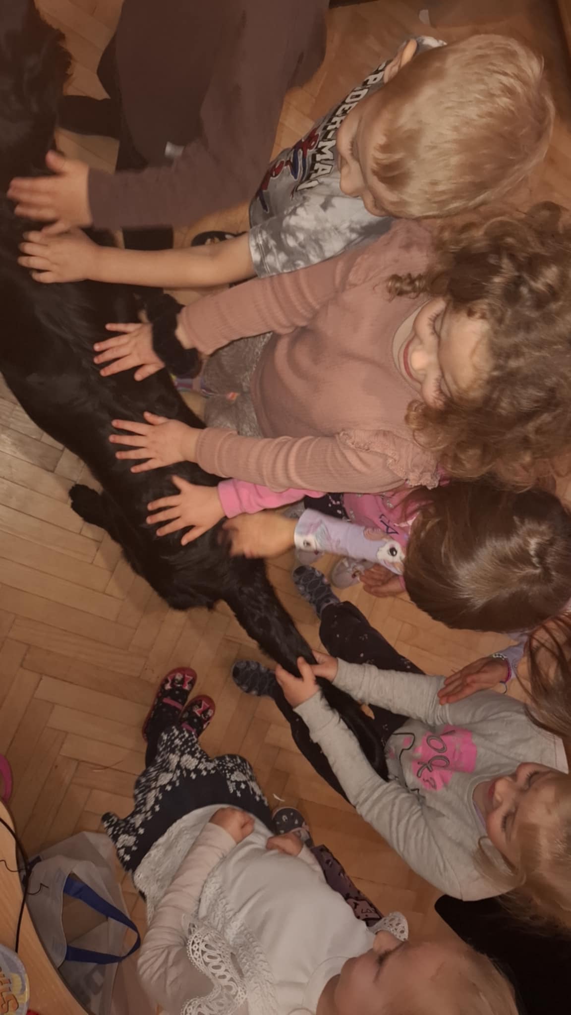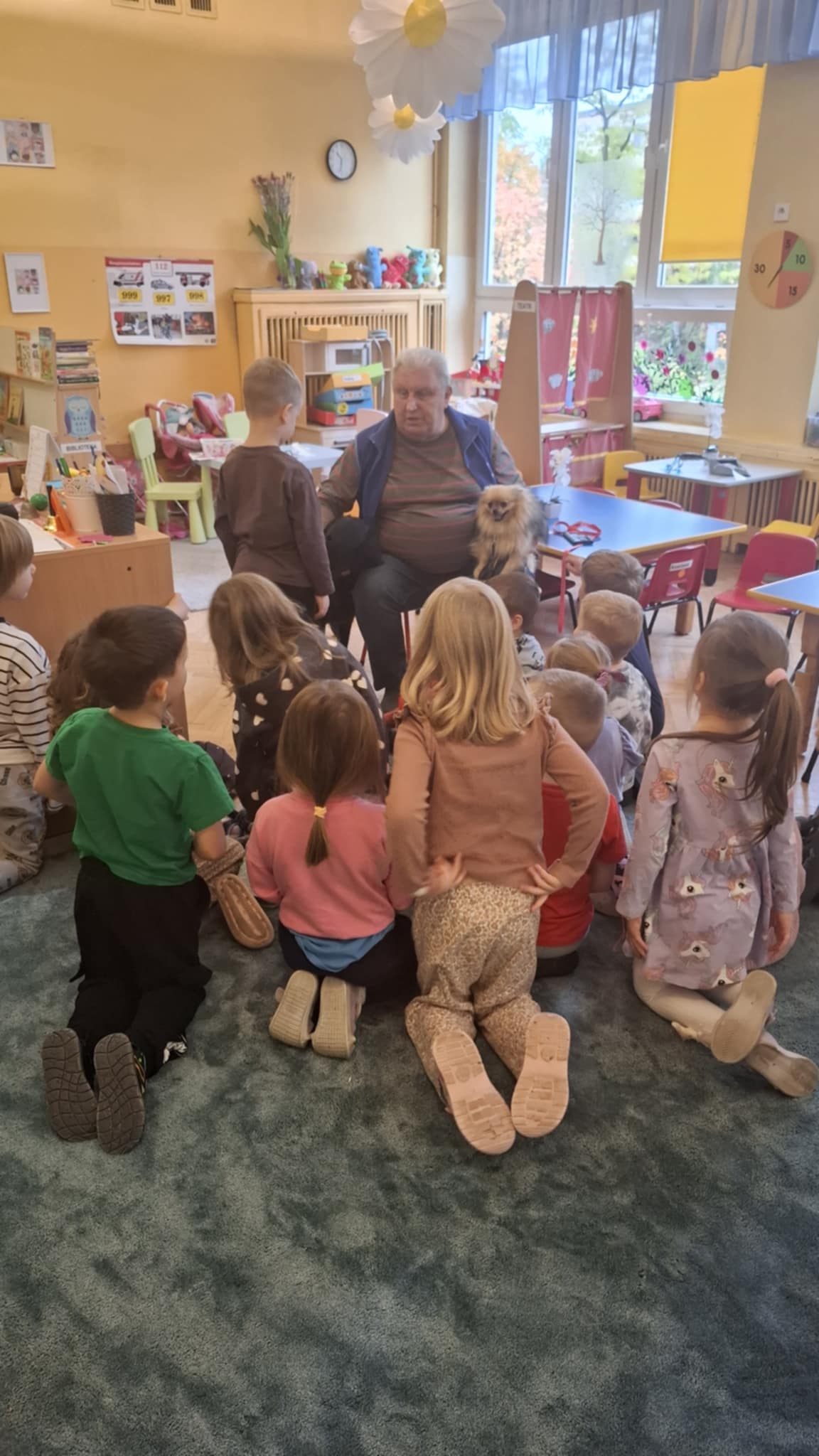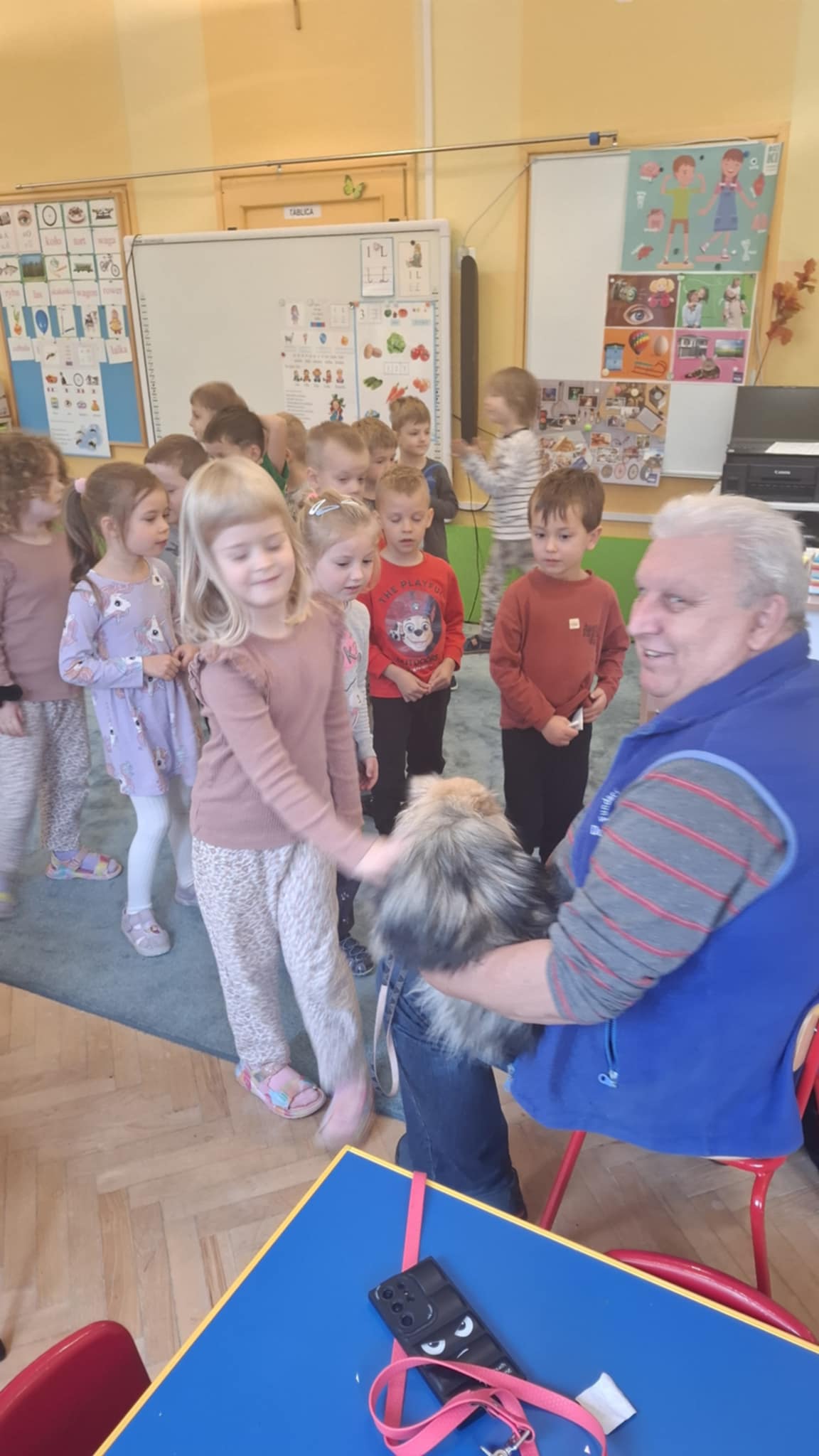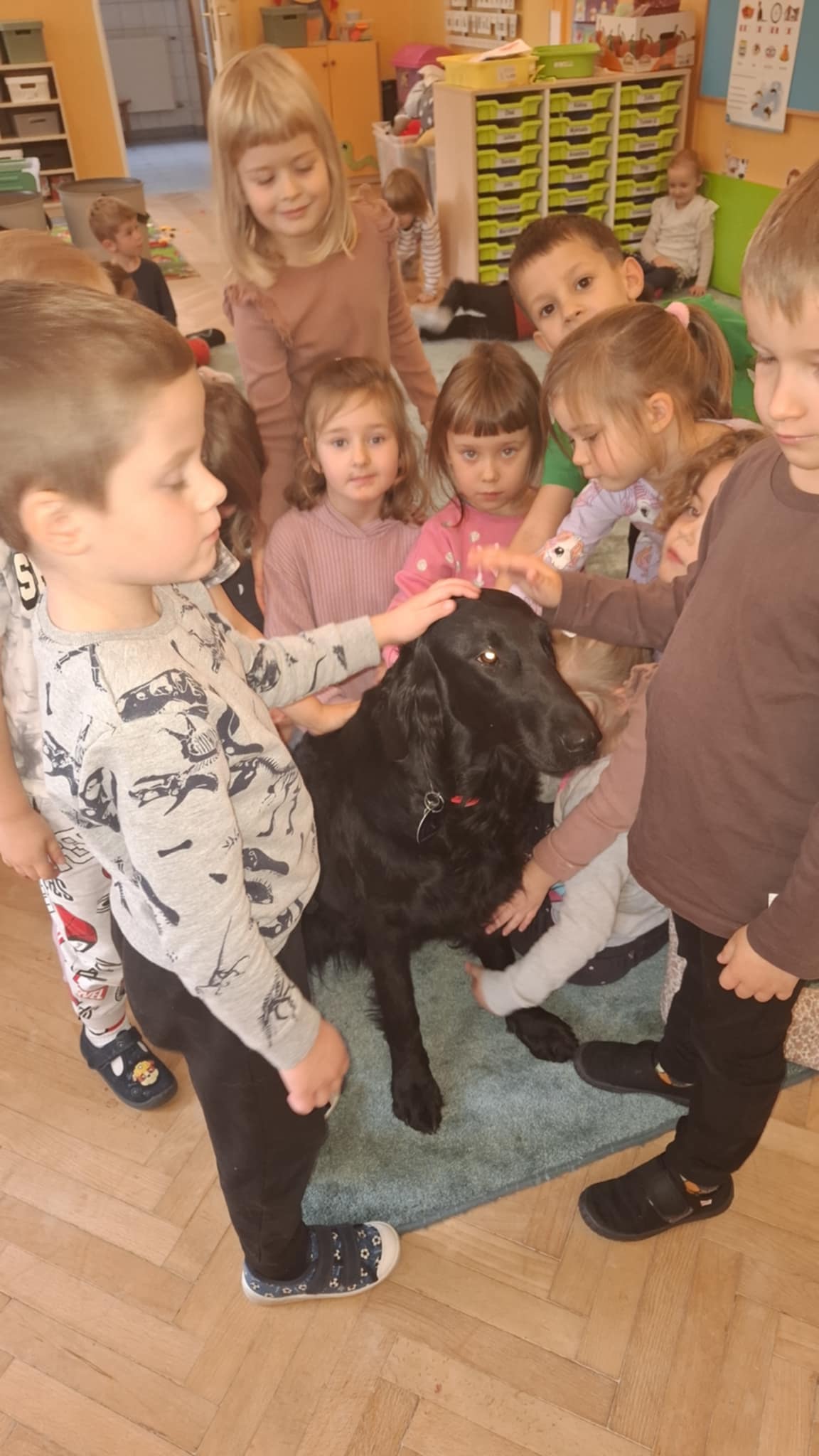 14.10.2025 r gościliśmy w naszym przedszkolu Psich Terapeutów instruktorami z Fundacji Ama Canem z Łodzi, którzy dla wszystkich grup przedszkolnych poprowadzili zajęcia na temat, bezpieczne zachowania się podczas kontaktu z psem. Dzieci dowiedziały się, w jaki sposób powinny postępować w różnych sytuacjach np. podczas zagrożenia ze strony obcego zwierzęcia. Zajęciom edukacyjnym towarzyszyła również zabawa z psami np. przechodzenie nad psem, pod a także głaskanie pupilów i nauka witania .
