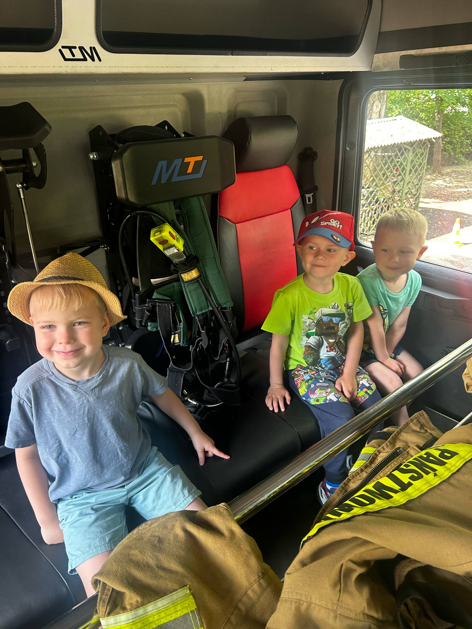 02 czerwca z okazji Dnia dziecka nasze przedszkole odwiedziła Państwowa Straż Pożarna. W trakcie spotkania strażacy zaznajomili dzieci z ciekawostkami związanymi z ich pracą zawodową, przestrzeganiem zakazów, zachowaniem bezpieczeństwa w czasie: pożaru, burzy oraz wypadku. Dzieci dowiedziały się, w jakich okolicznościach można wzywać straż pożarną, a także że strażacy nie tylko gaszą pożary, ale również są wzywani do wypadków samochodowych a także ratowania zwierząt. Jak zawsze największe zainteresowanie wzbudził wielki, czerwony wóz strażacki, do którego każde dziecko mogło wejść. Dzieci z bliska miały możliwość podziwiać wyposażenie, jakim dysponują podczas swojej ciężkiej i odpowiedzialnej pracy strażacy.