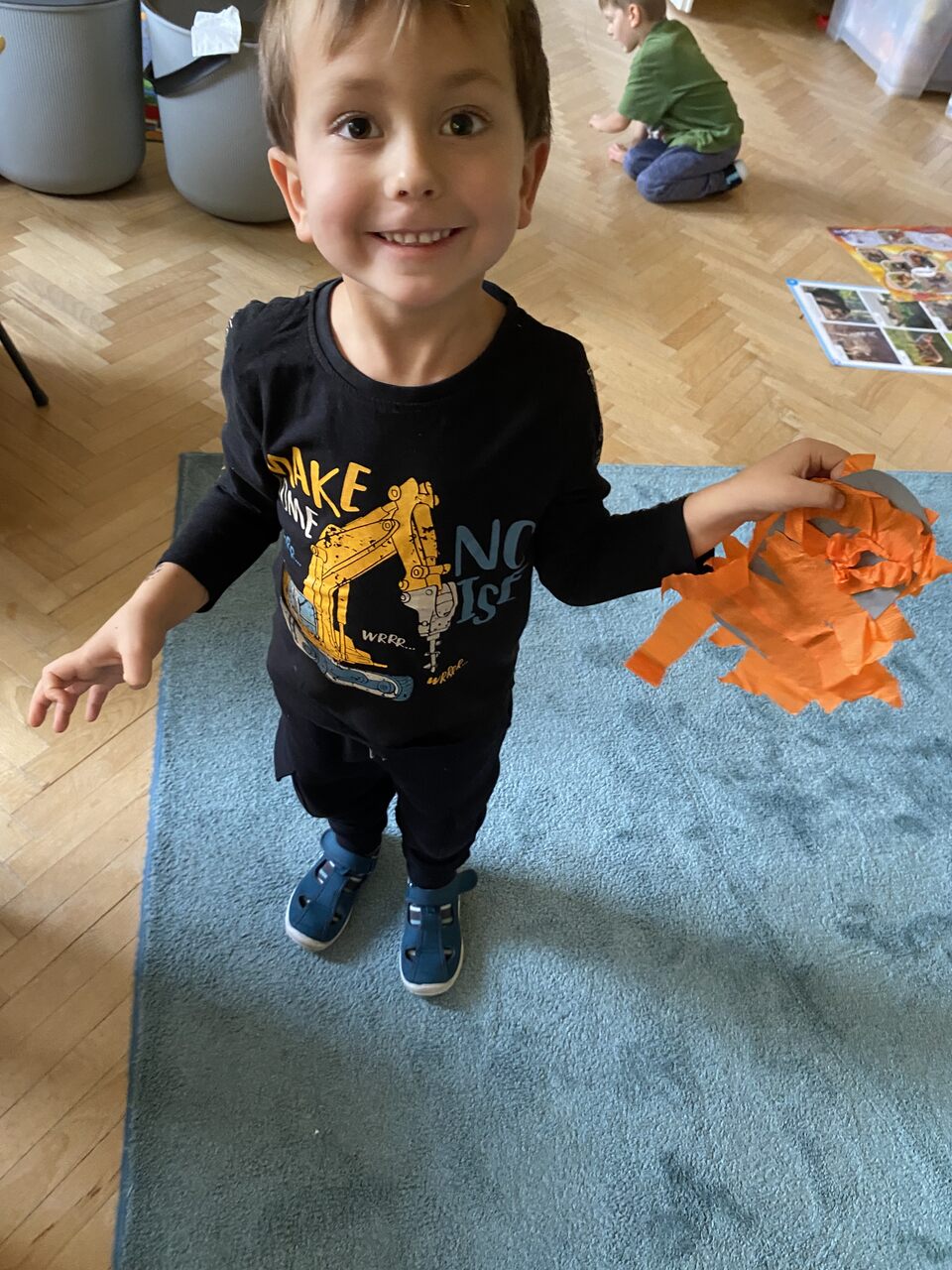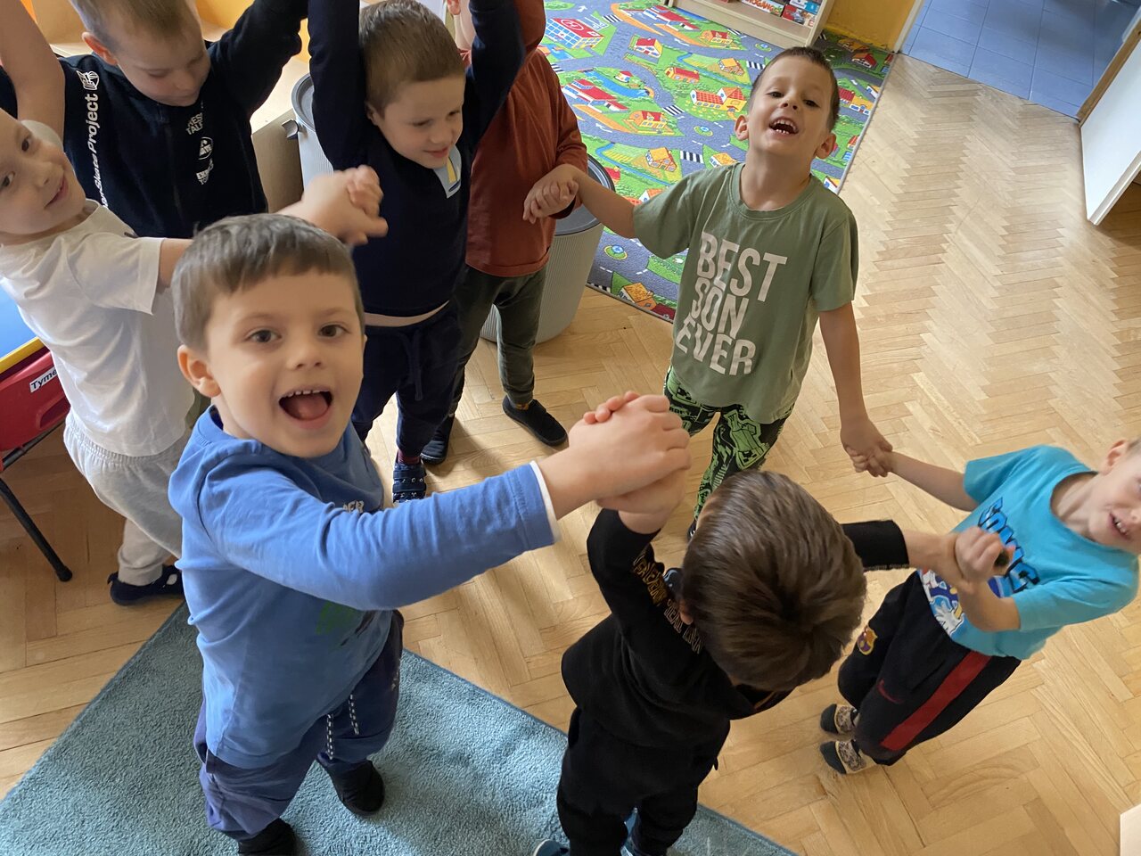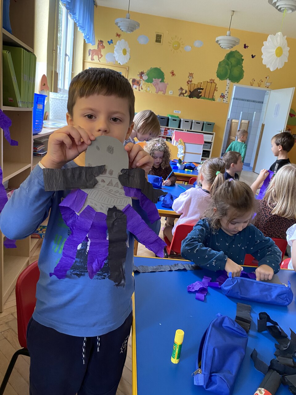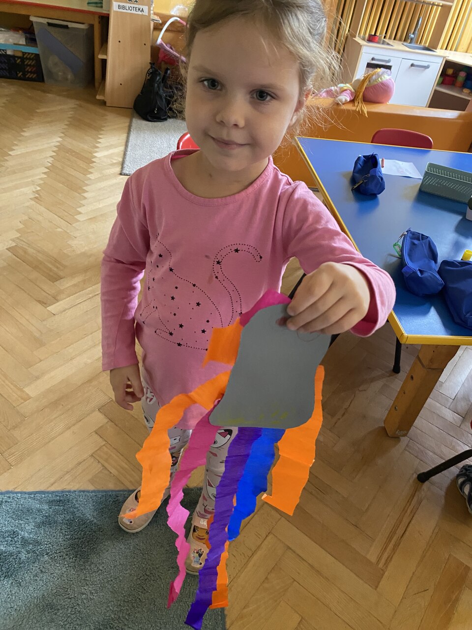 Po dawce ciekawych informacji przyszedł czas na matematyczne zagadki, które pozwoliły utrwalić nasze umiejętności liczenia. Zabawy ruchowe związane z życiem ośmiornicy dały dzieciom dużo radości i zabawy. Zwieńczeniem naszych zajęć było wykonanie kolorowej ośmiornicy.