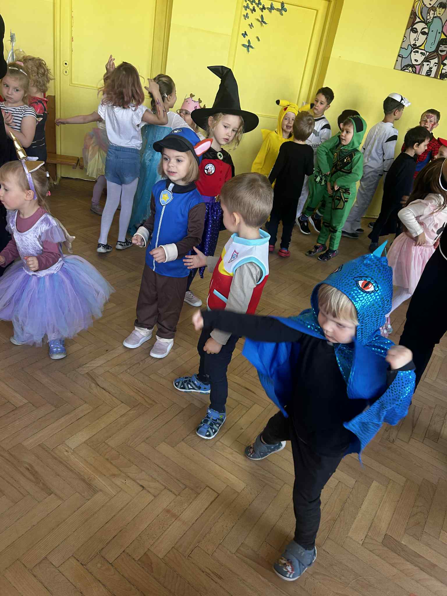 Przedszkolaki z dumą prezentowały swoje przebrania, opowiadały o wybranych postaciach i chętnie brały udział we wspólnych zabawach. Kulminacyjnym punktem dnia był bal bajkowy, podczas którego dzieci tańczyły, bawiły się i uczestniczyły w radosnych animacjach.