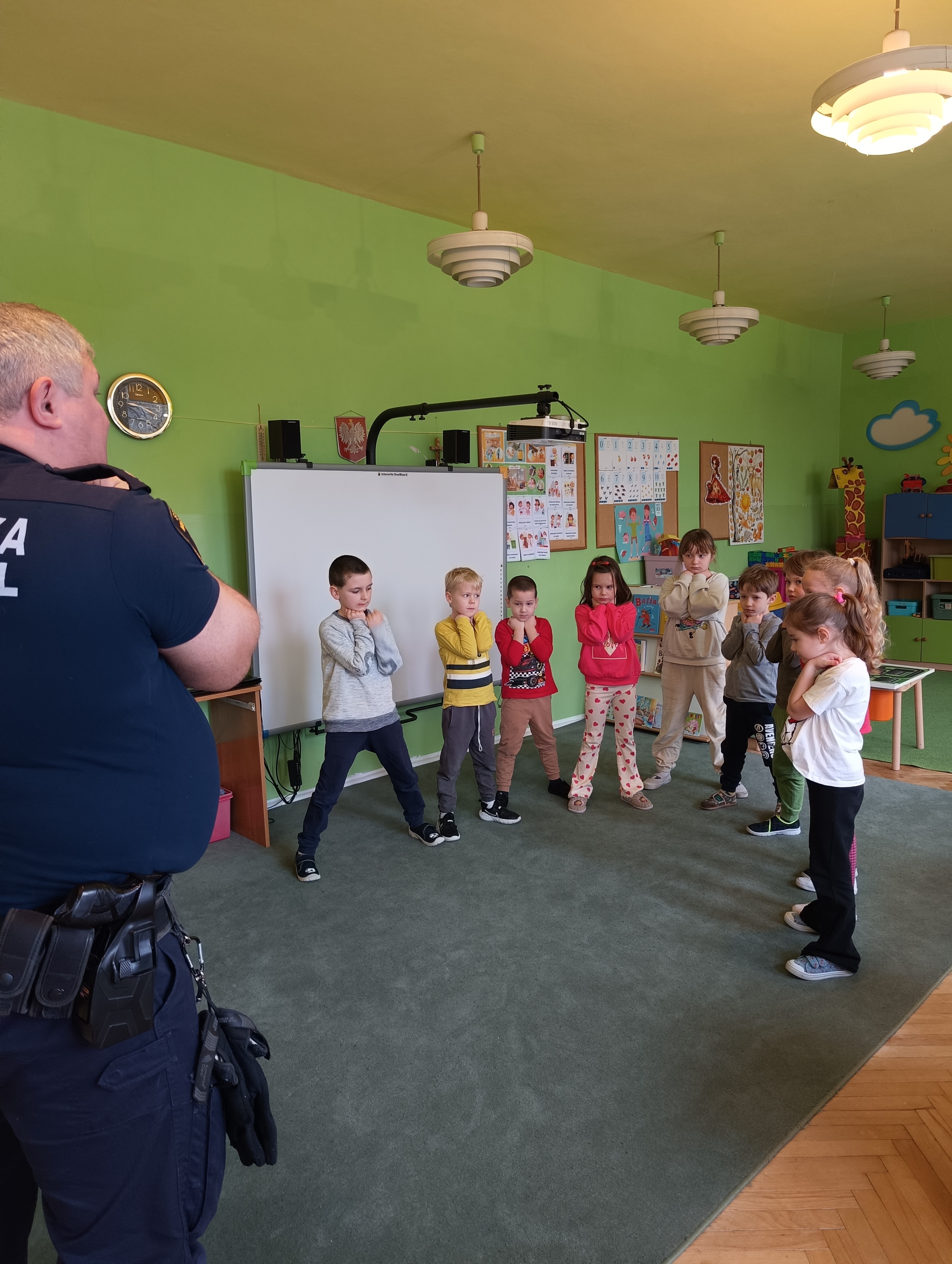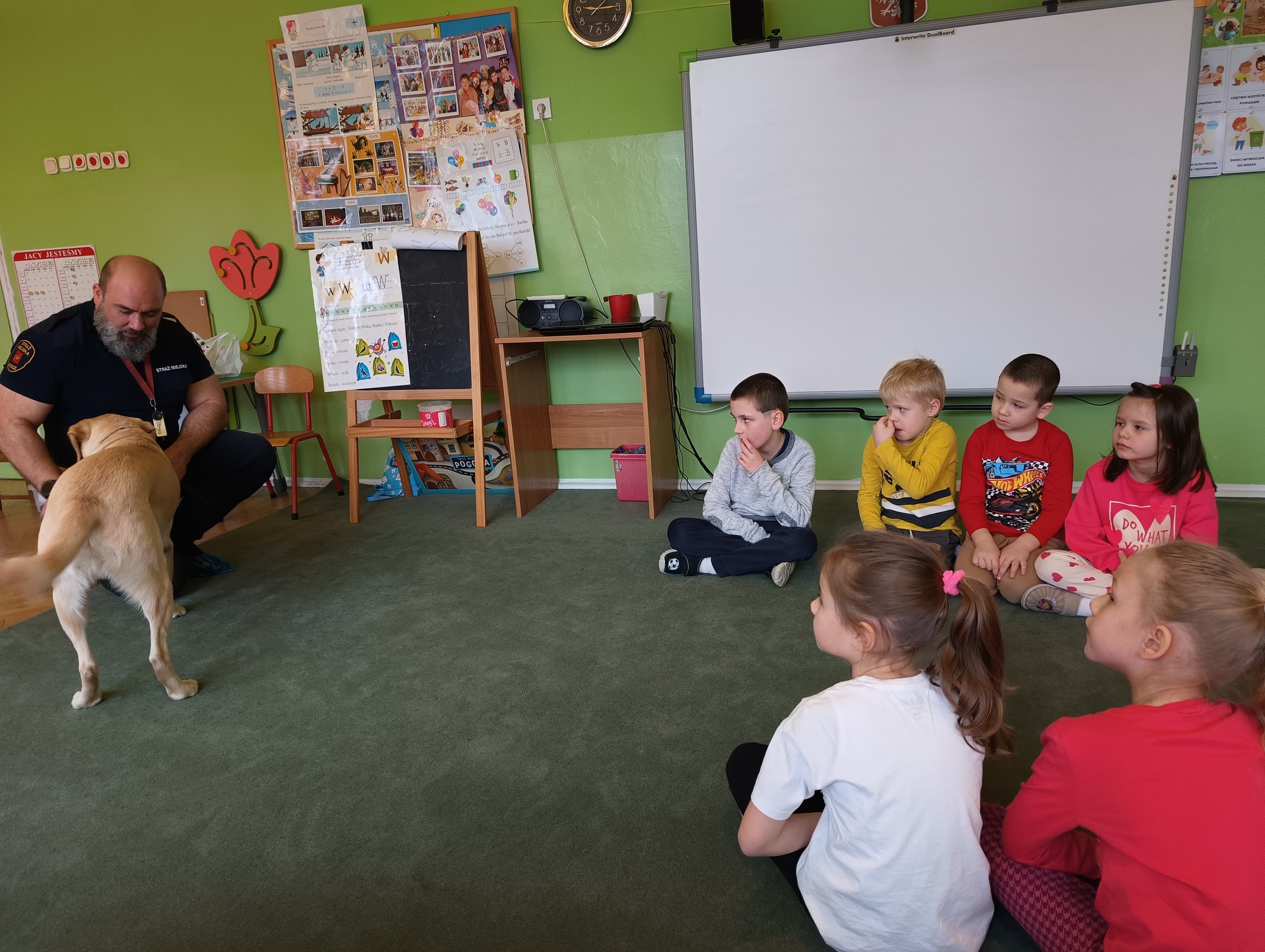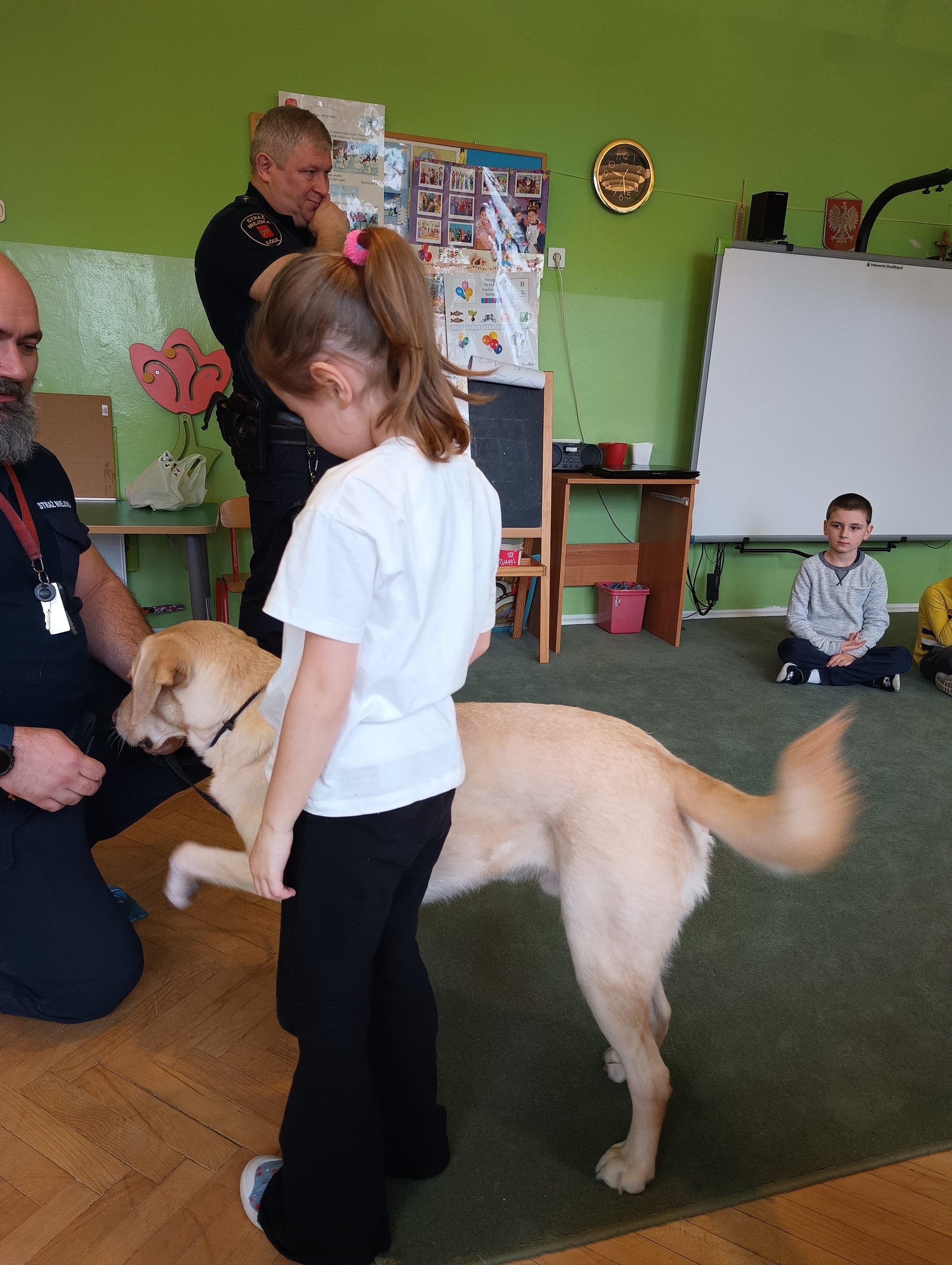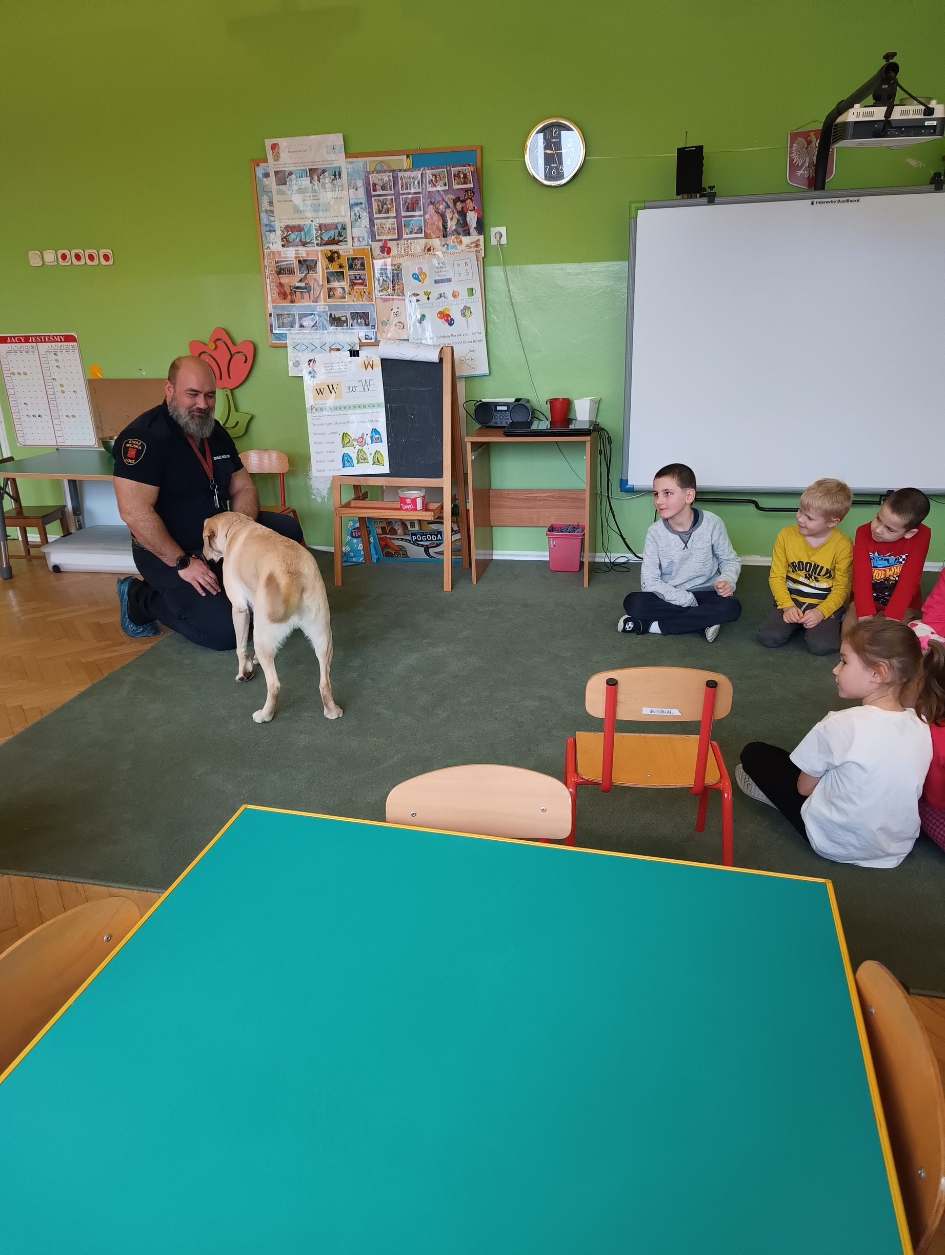 Dzisiaj gościliśmy w przedszkolu Strażników Straży Miejskiej wraz z ich podopiecznym labradorem Maksem. Maks wraz ze swoim opiekunem odwiedzają przedszkola i prowadzą zajęcia dla dzieci, które mają uświadamiać, jak ważny jest szacunek do zwierząt i ich odpowiednie traktowanie. Panowie strażnicy nauczyli nas ,jak zachowywać się w obecności nieznanych zwierząt oraz jaka postawę obronną przyjąć na wypadek ich ataku. Maks, to wspaniały nauczyciel i cudowny funkcjonariusz.