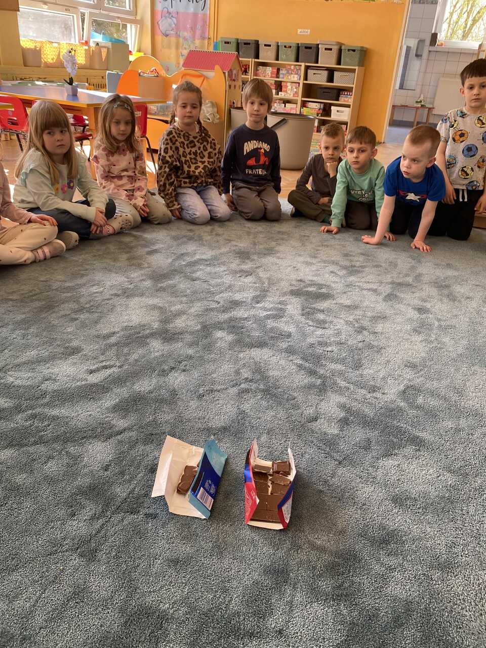Na zakończenie czekała na dzieci słodka niespodzianka – degustacja czekolady mlecznej i truskawkowej, która sprawiła wszystkim wiele radości.