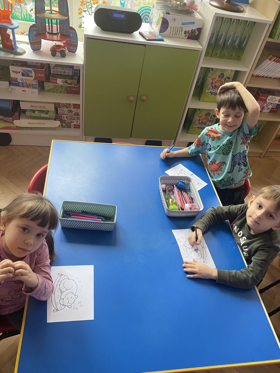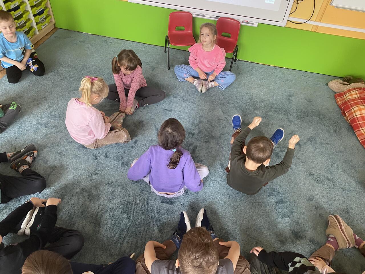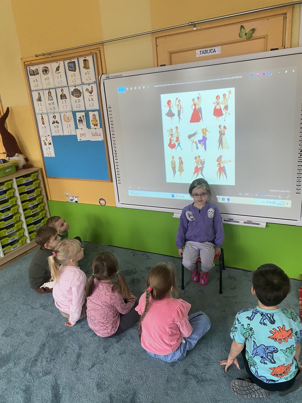 W ramach programu Mały Miś w Świecie Wielkiej Literatury - Dzieci Uczą Dzieci nasze chętne przedszkolaki wcieliły się w rolę nauczyciela i postanowiły nauczyć swoich kolegów czegoś nowego. Podzieliły się z kolegami tym co ich interesuje np: taniec, zwierzęta, gimnastyka,koty, samochody sportowe. Przedszkolaki przygotowały krótkie prezentacje na temat swoich zainteresowań , wspólnie się poruszaliśmy podczas gier czy ćwiczeń sportowych. Następnie obejrzeliśmy filmy edukacyjne do tematu i pokolorowaliśmy wybrane przez dzieci kolorowanki.