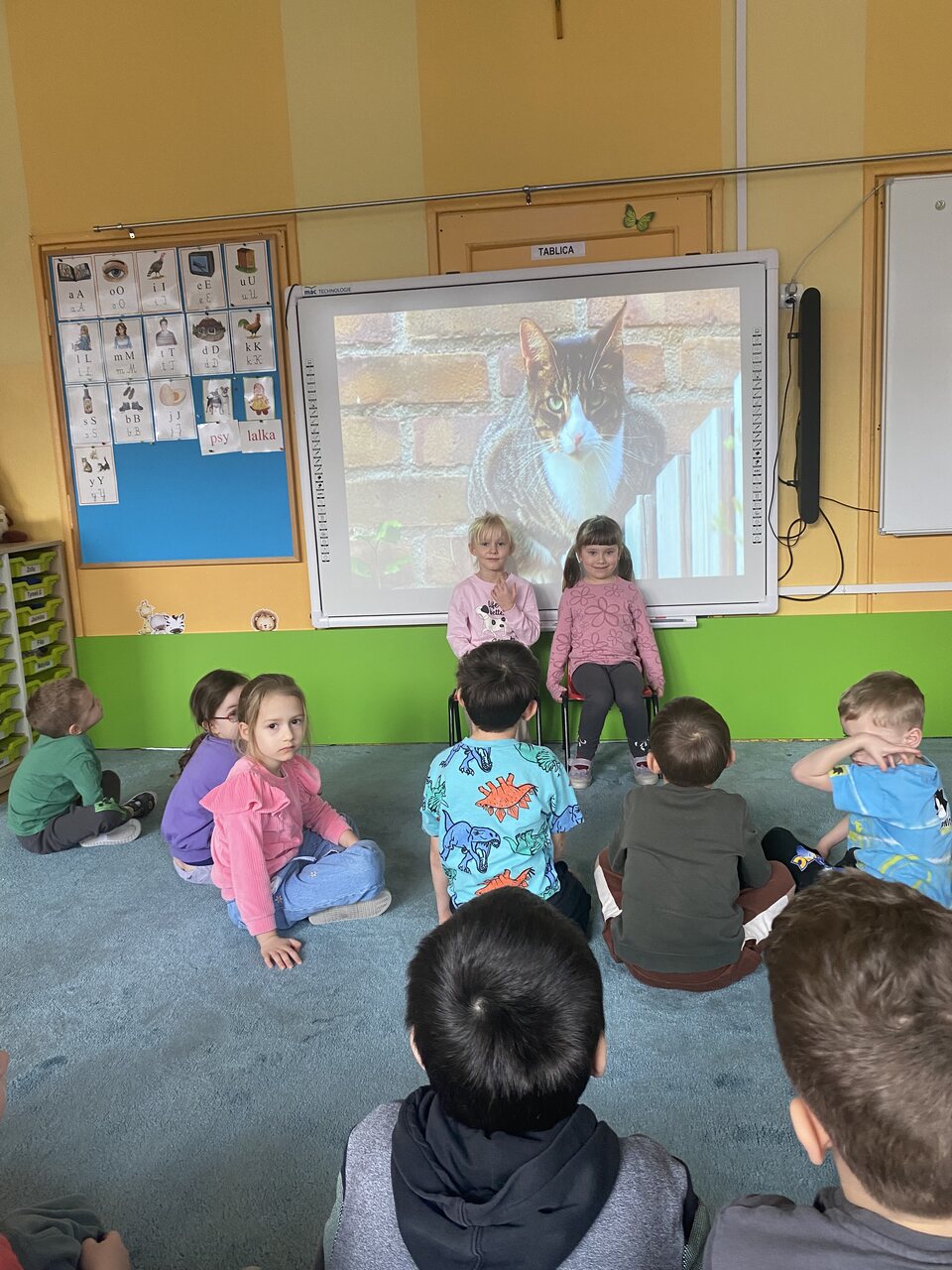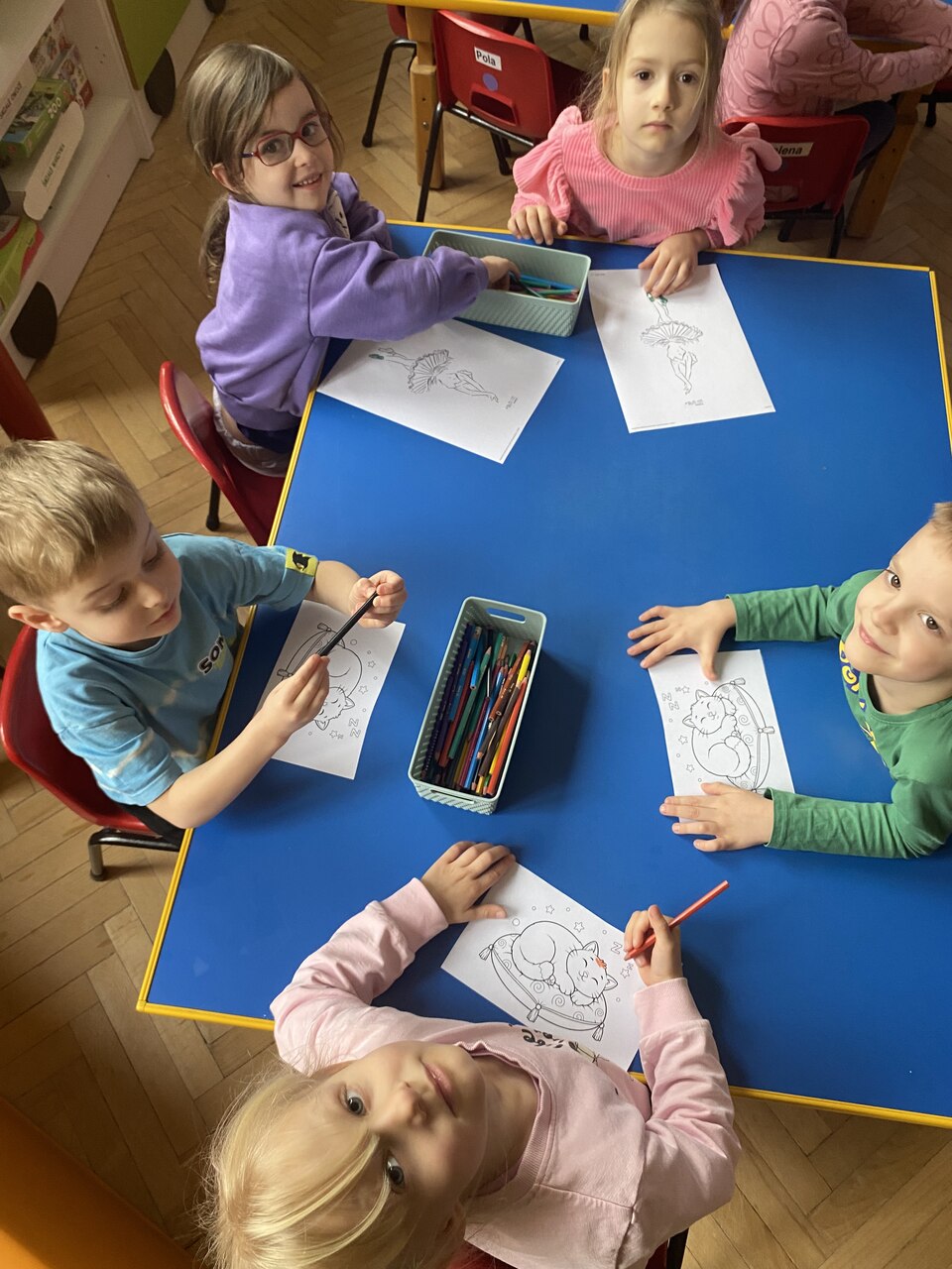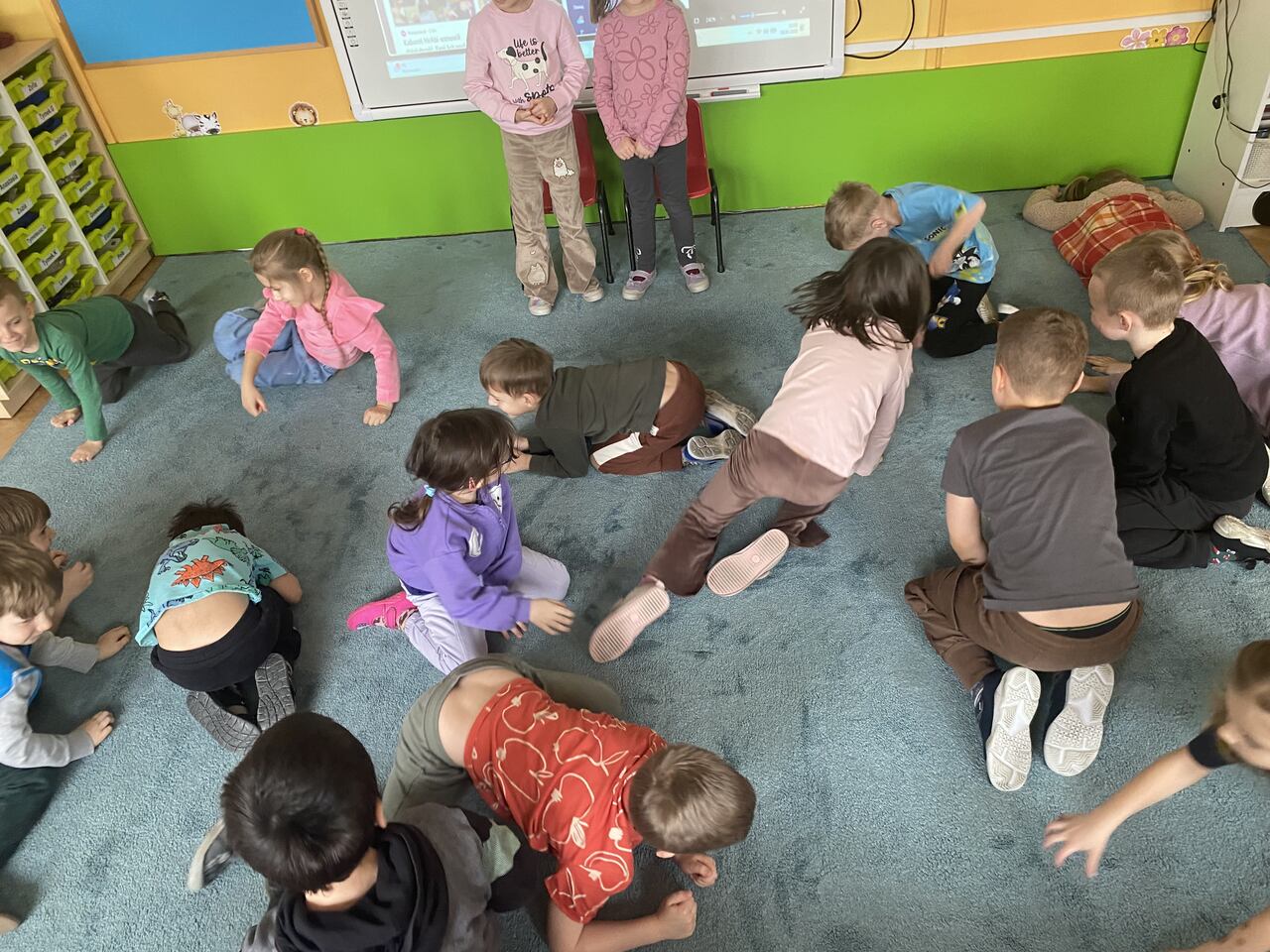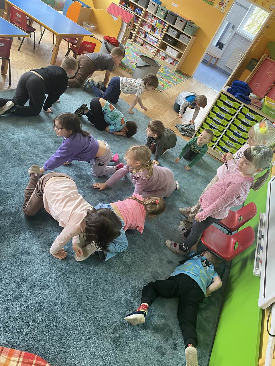 W ramach programu Mały Miś w Świecie Wielkiej Literatury - Dzieci Uczą Dzieci nasze chętne przedszkolaki wcieliły się w rolę nauczyciela i postanowiły nauczyć swoich kolegów czegoś nowego. Podzieliły się z kolegami tym co ich interesuje np: taniec, zwierzęta, gimnastyka,koty, samochody sportowe. Przedszkolaki przygotowały krótkie prezentacje na temat swoich zainteresowań , wspólnie się poruszaliśmy podczas gier czy ćwiczeń sportowych. Następnie obejrzeliśmy filmy edukacyjne do tematu i pokolorowaliśmy wybrane przez dzieci kolorowanki.