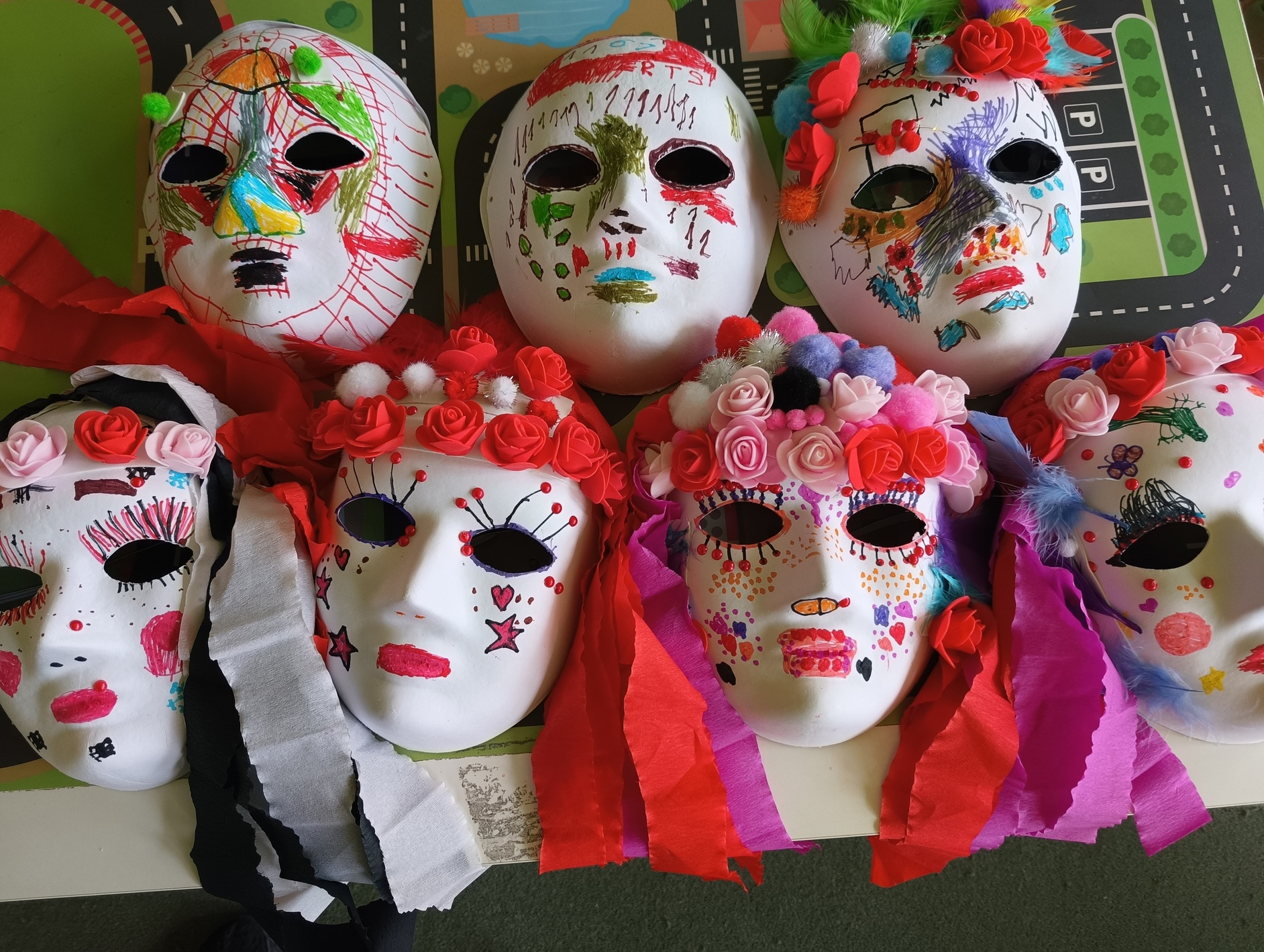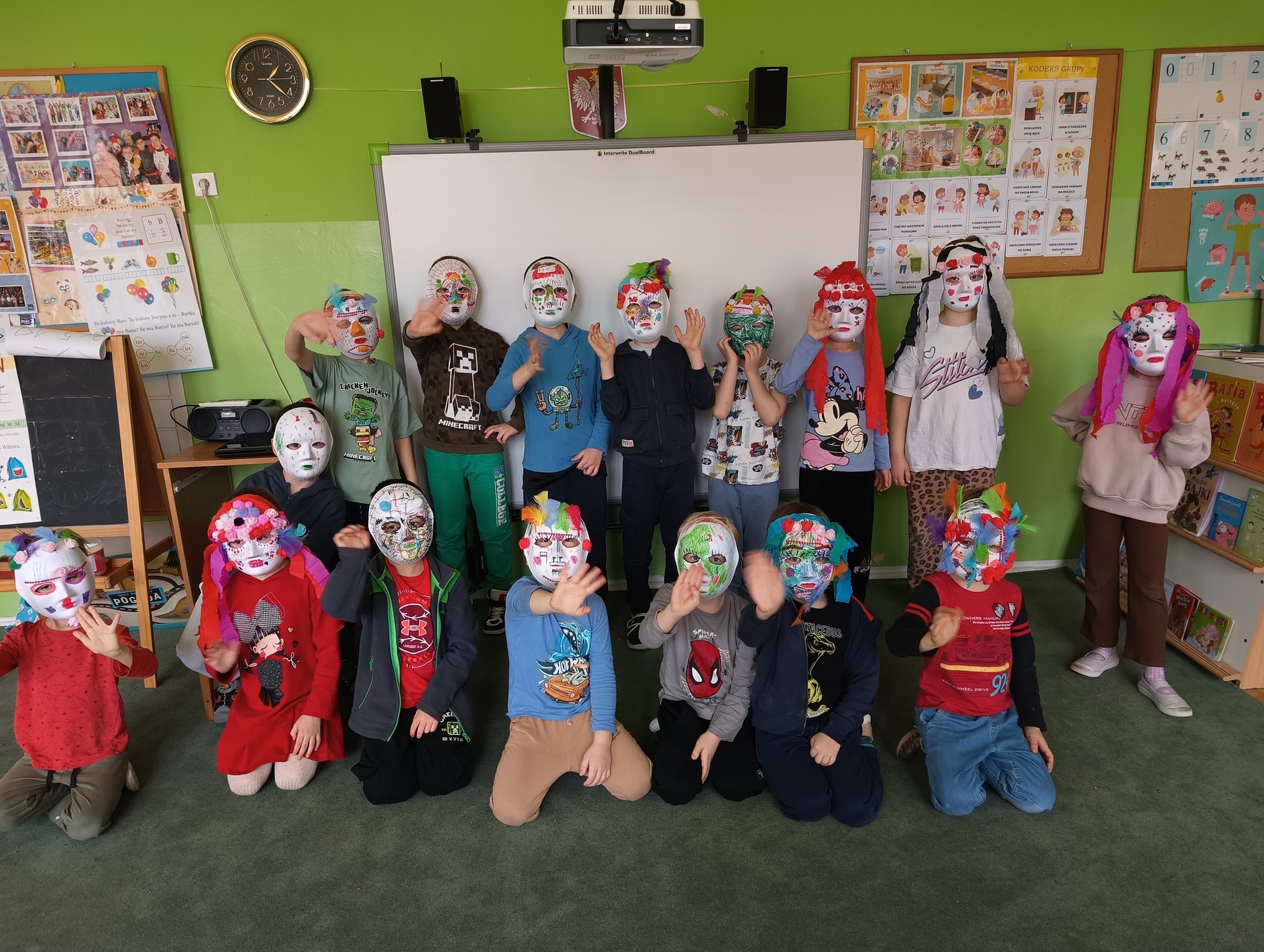 Dzisiaj na warsztatach plastycznych robiliśmy maski karnawałowe. Wcześniej jednak dowiedzieliśmy się wielu ciekawych rzeczy i ciekawostek dotyczących karnawału. Niestety jest nam smutno, bo w wyniku niefortunnego zdarzenia zostały nam z zajęć tylko dwa pamiątkowe zdjęcia.
