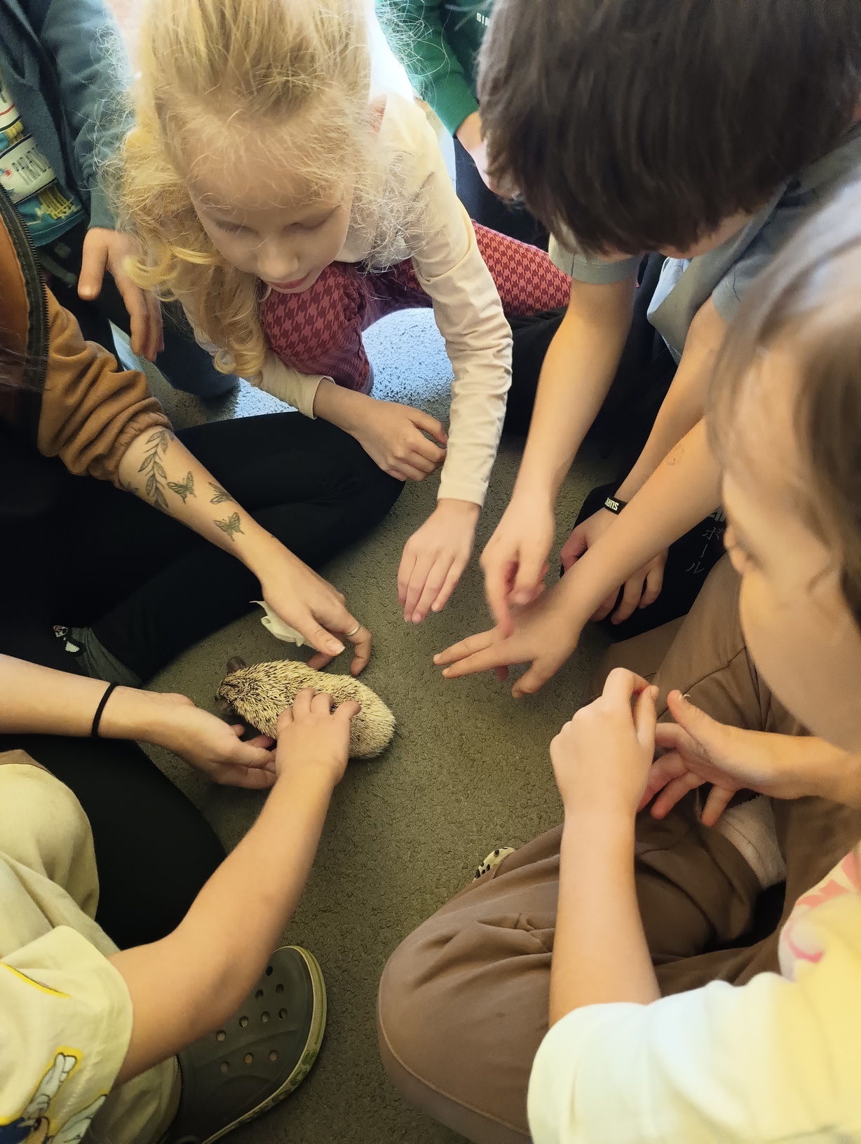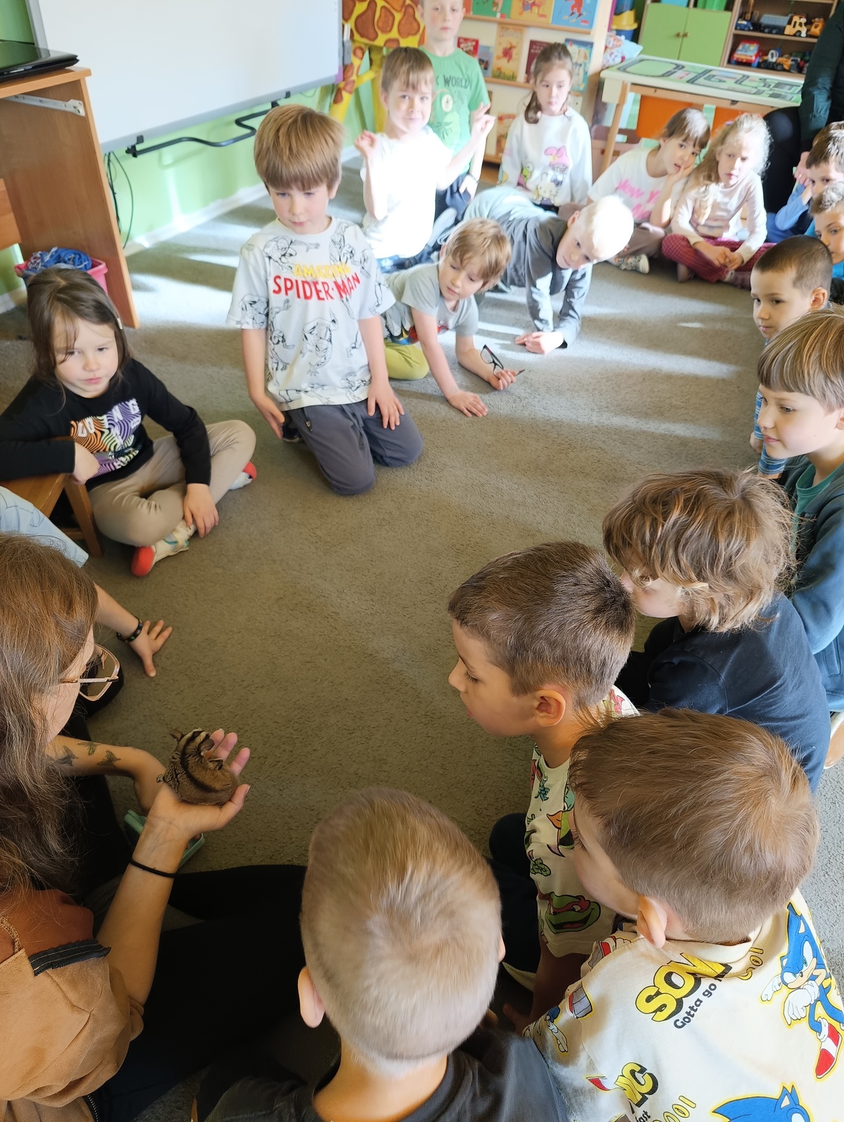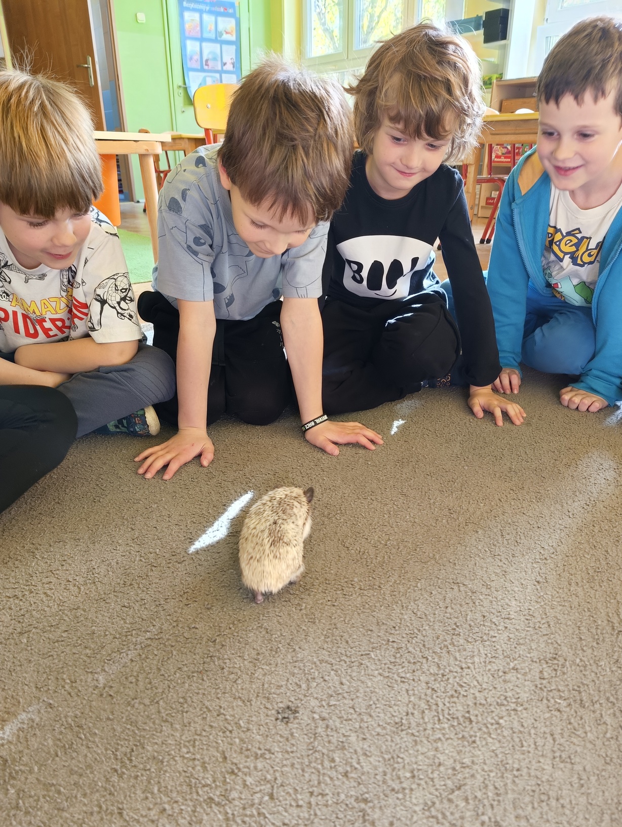 Dzisiaj odbyły się warsztaty przyrodnicze pod nazwą :Odkrywamy Leśnych Przyjaciół. Były u nas lotopałatka oraz jeż. Wiemy już od dawna, że jeż to gatunek chroniony, tym bardziej ucieszyła nas jego obecność. Podczas spotkania wzbogaciliśmy naszą wiedzę o nowe informacje, zadawaliśmy dużo pytań. Bardzo spodobała się nam lotopałatka, która dla nas jest zwierzęciem egzotycznym. Wiemy, że jesteśmy odpowiedzialni za środowisko w którym żyjemy dlatego chcemy dowiadywać się o nim jak najwięcej.