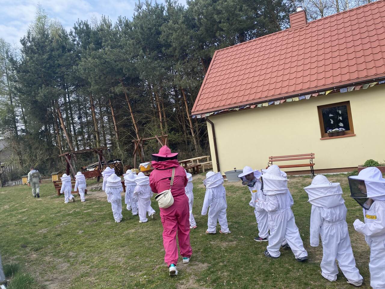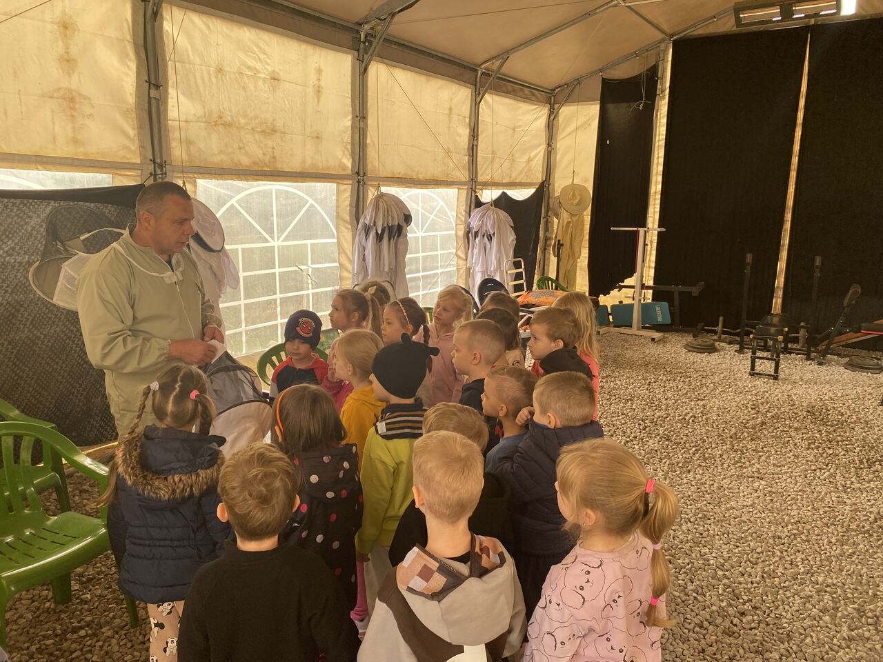 Podczas wycieczki dzieci uczestniczyły w wielu ciekawych atrakcjach. Na początku obejrzały film edukacyjny, a następnie przebrały się w kombinezony pszczelarskie i wraz z pszczelarzem wybrały się na spacer ścieżką edukacyjną. Odwiedziły także pasiekę, gdzie mogły obserwować pszczoły w ich naturalnym środowisku.