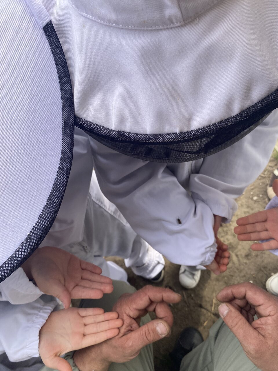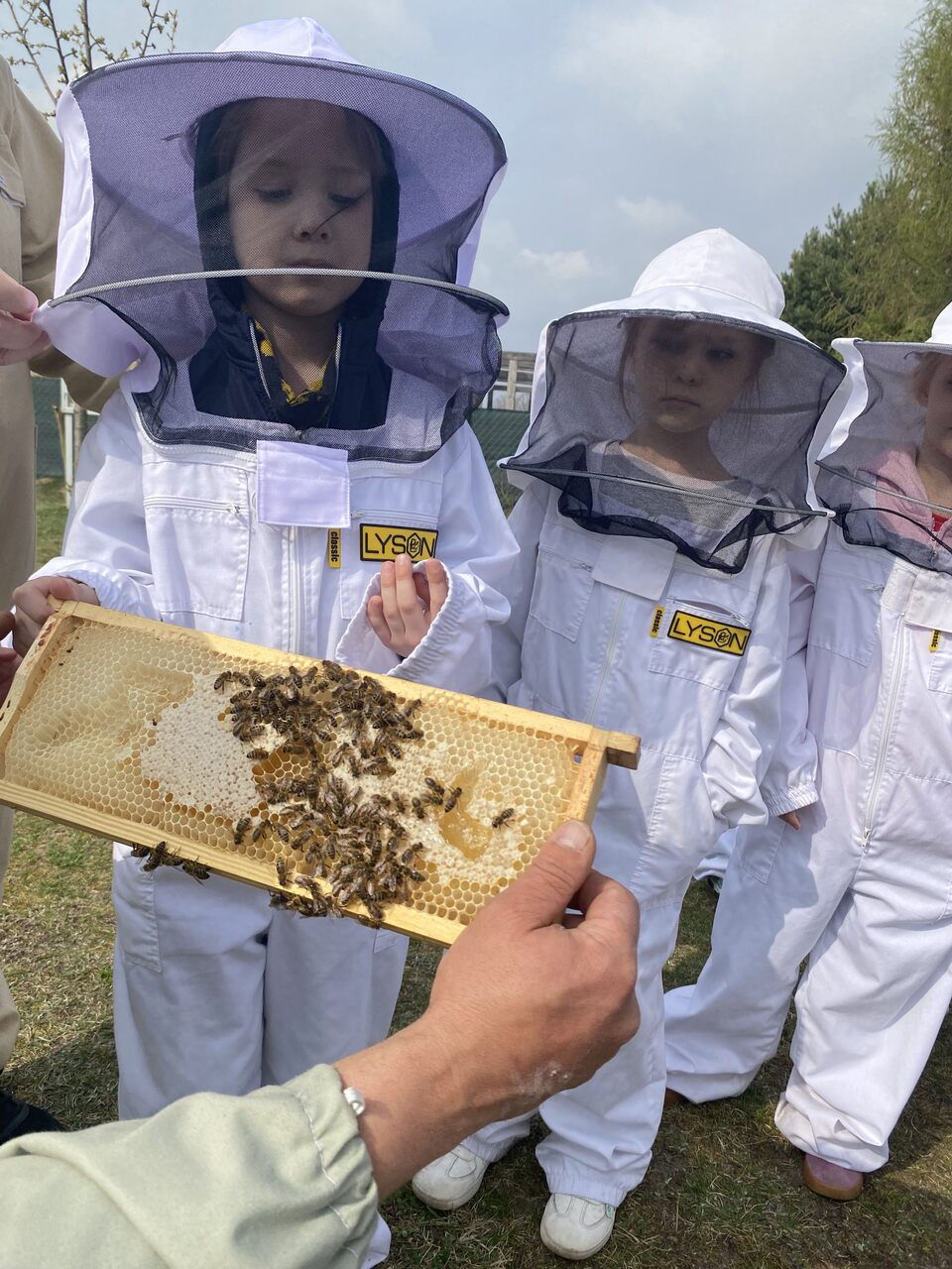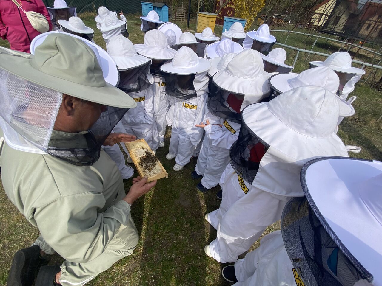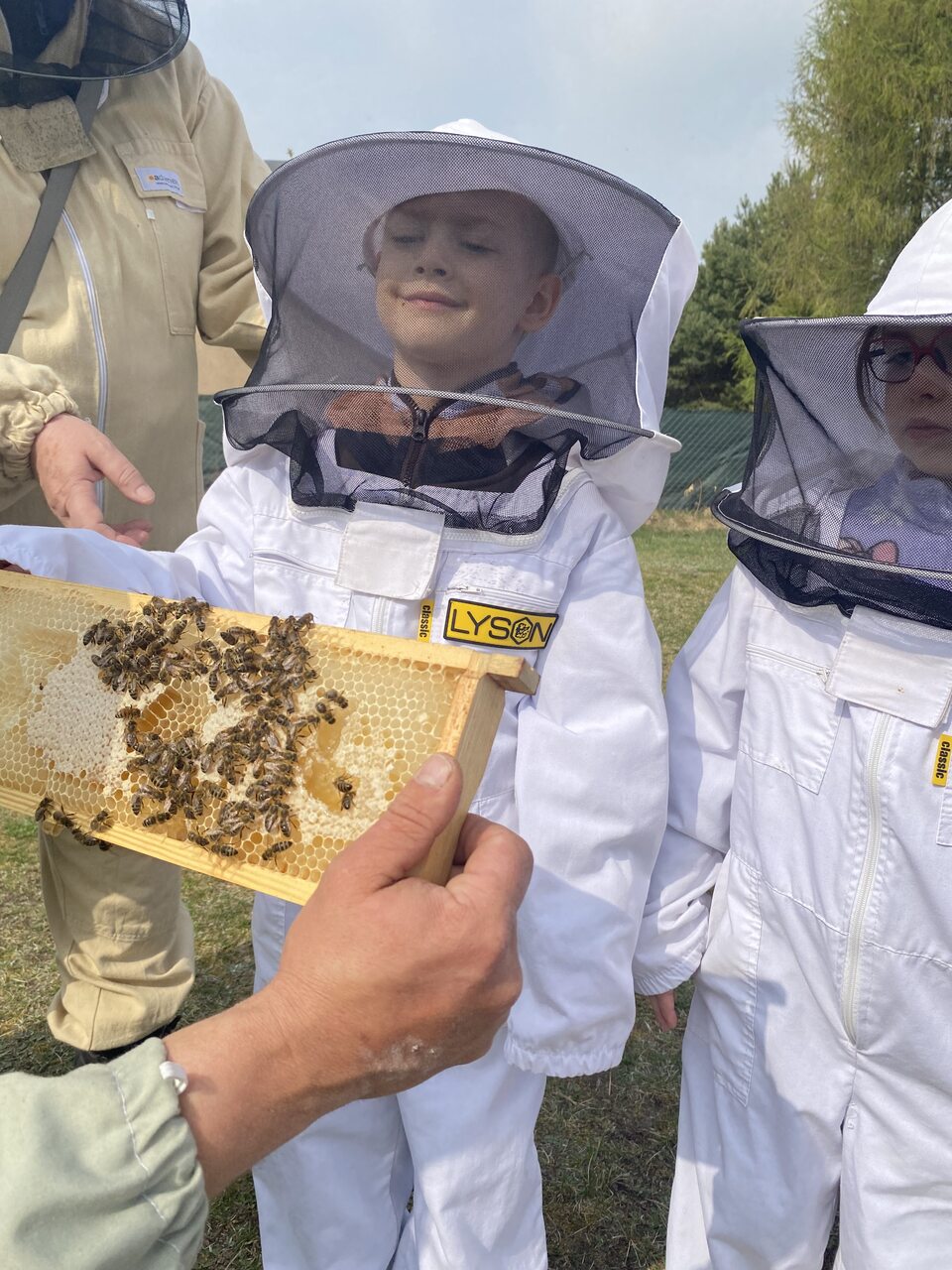 Dzieci miały wyjątkową okazję potrzymać na ręku pszczołę murarkę oraz zobaczyć, jak wygląda ul od wewnątrz. Mogły również z bliska przyjrzeć się pszczołom, trzymając w rękach ramki, na których budują plastry miodu.