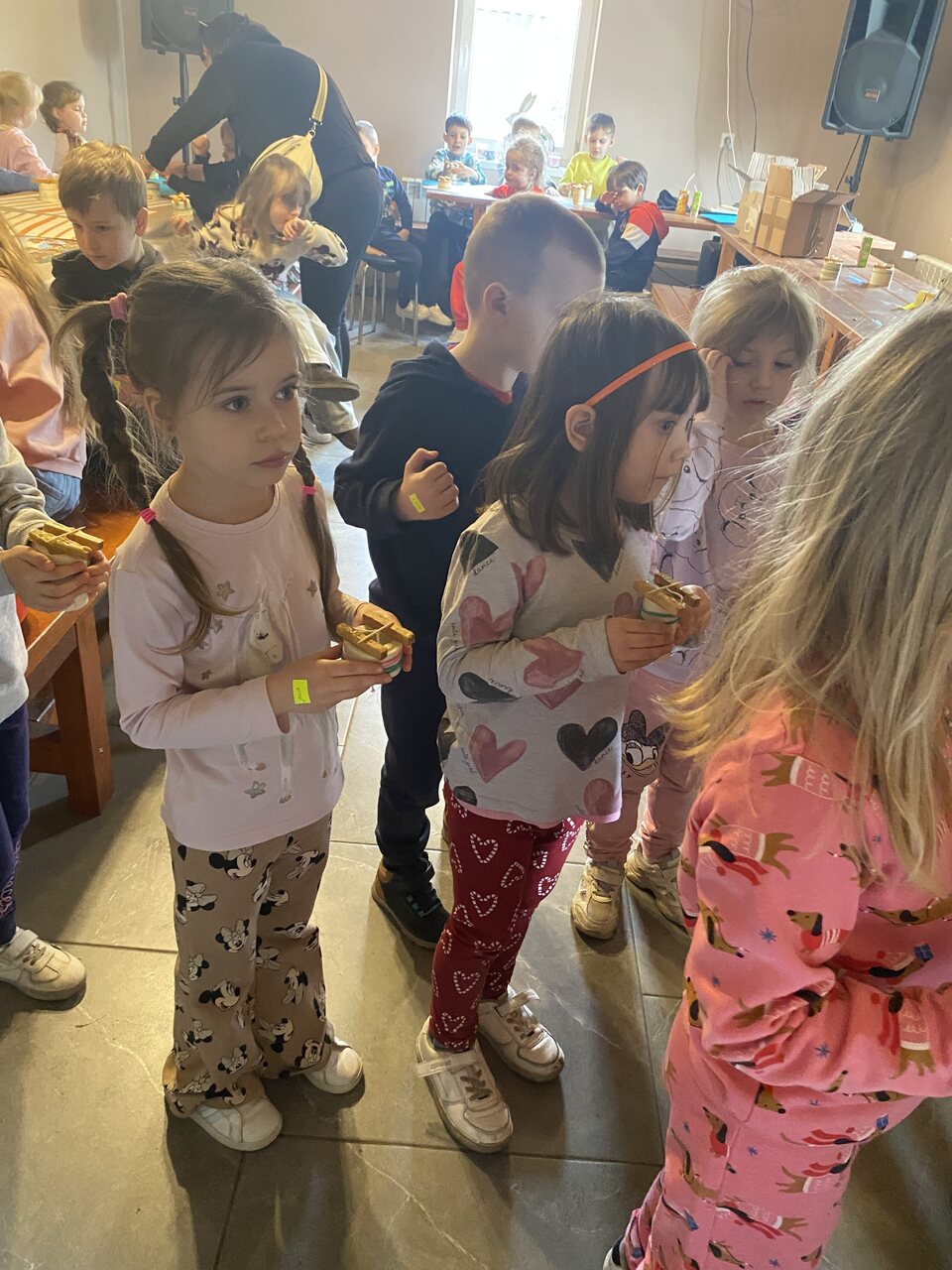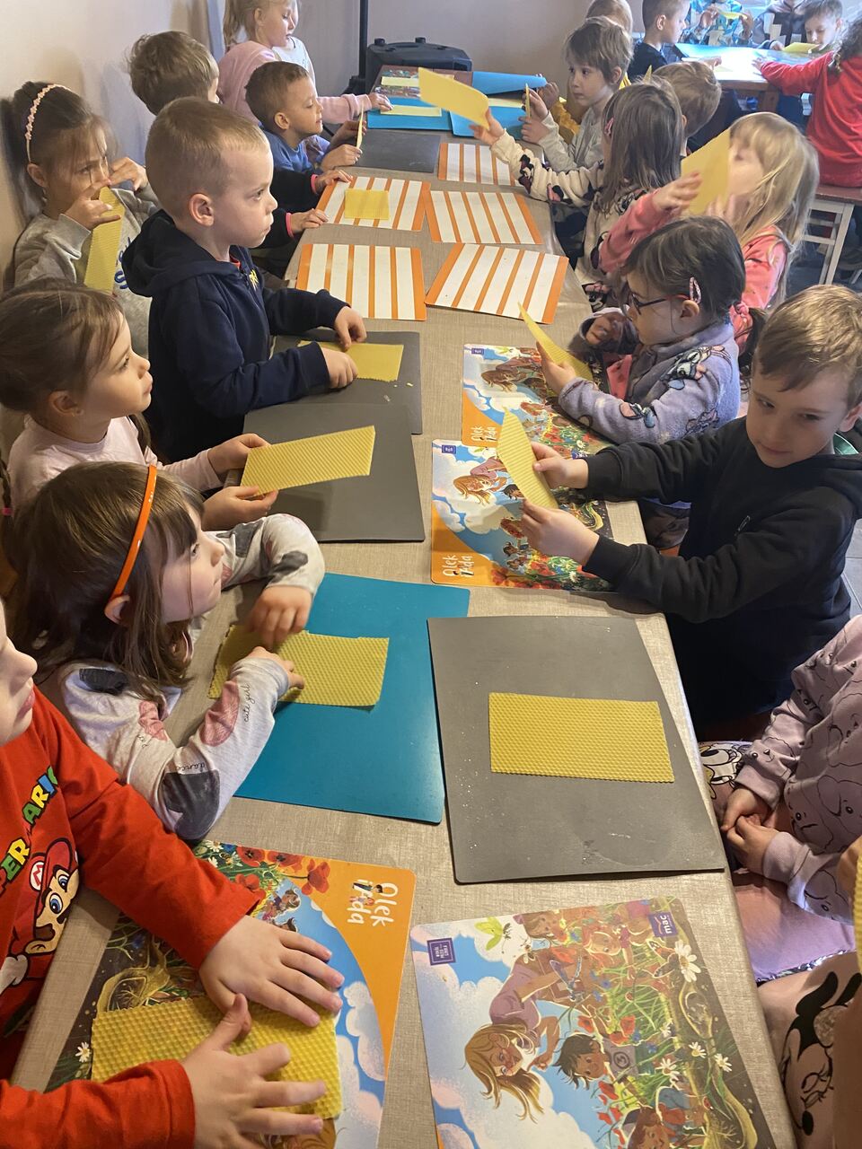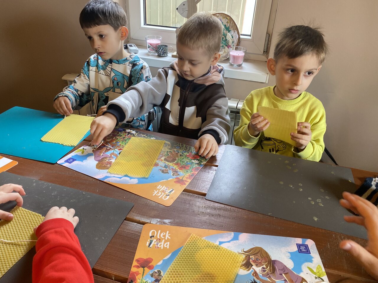 Największą atrakcją okazały się warsztaty, podczas których dzieci własnoręcznie wykonały świeczki z wosku pszczelego – powstały aż dwa różne rodzaje. Uczestnicy mieli również okazję spróbować różnych miodów.