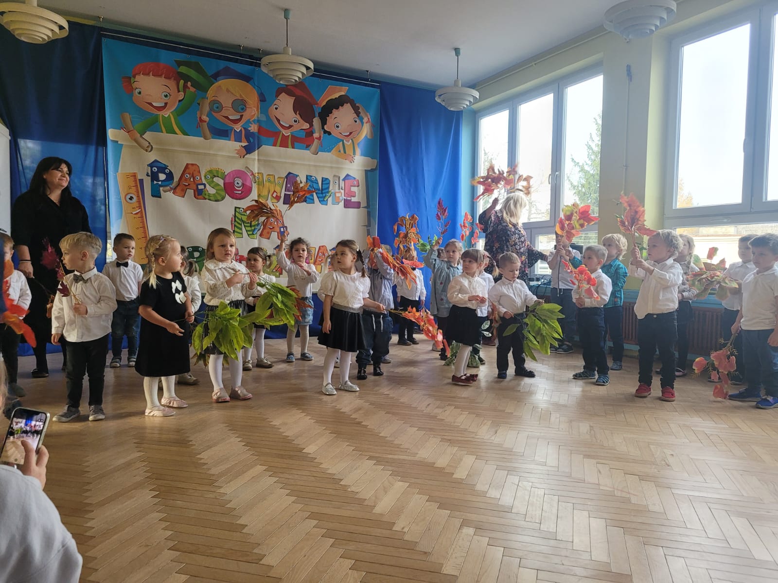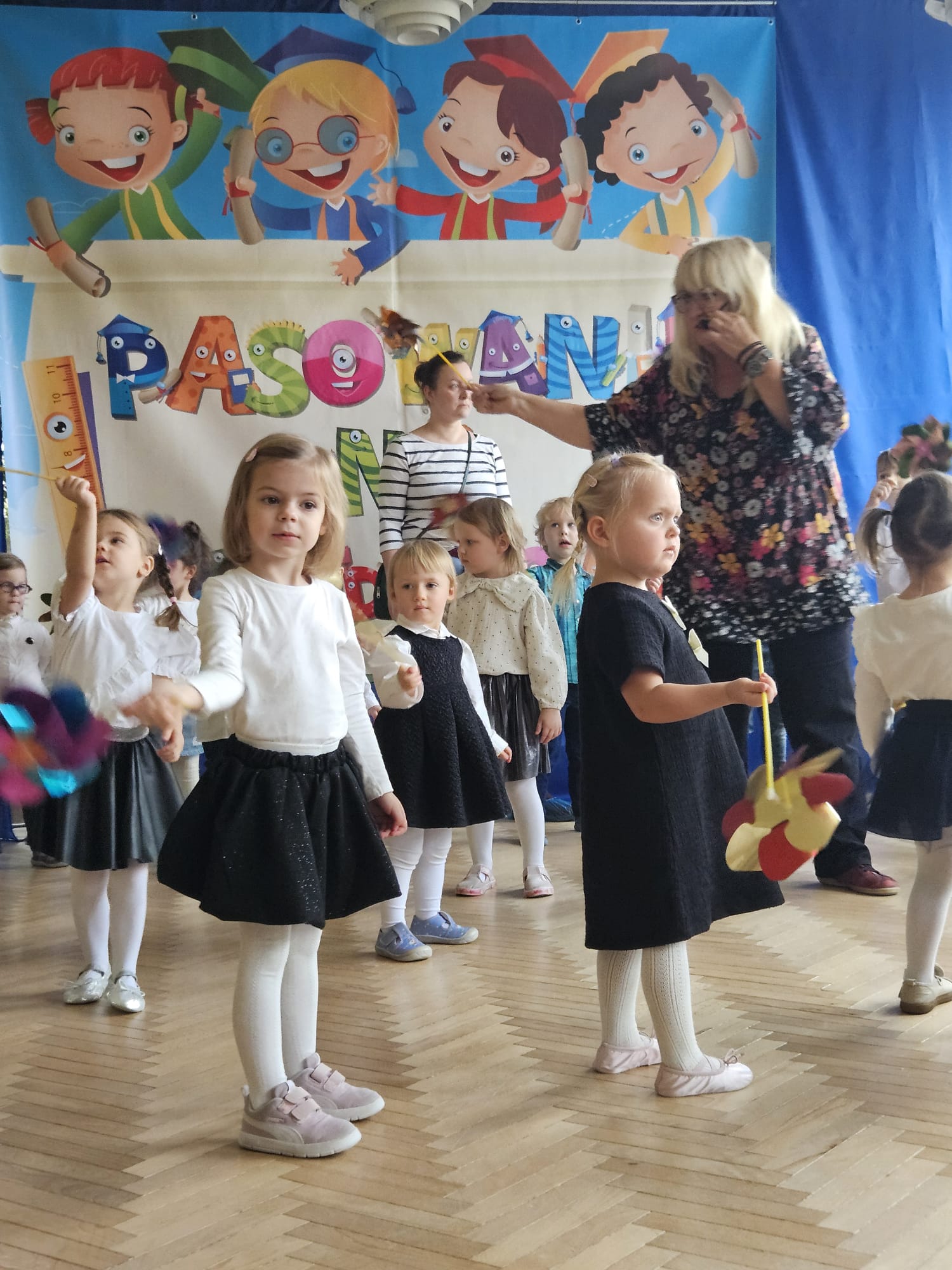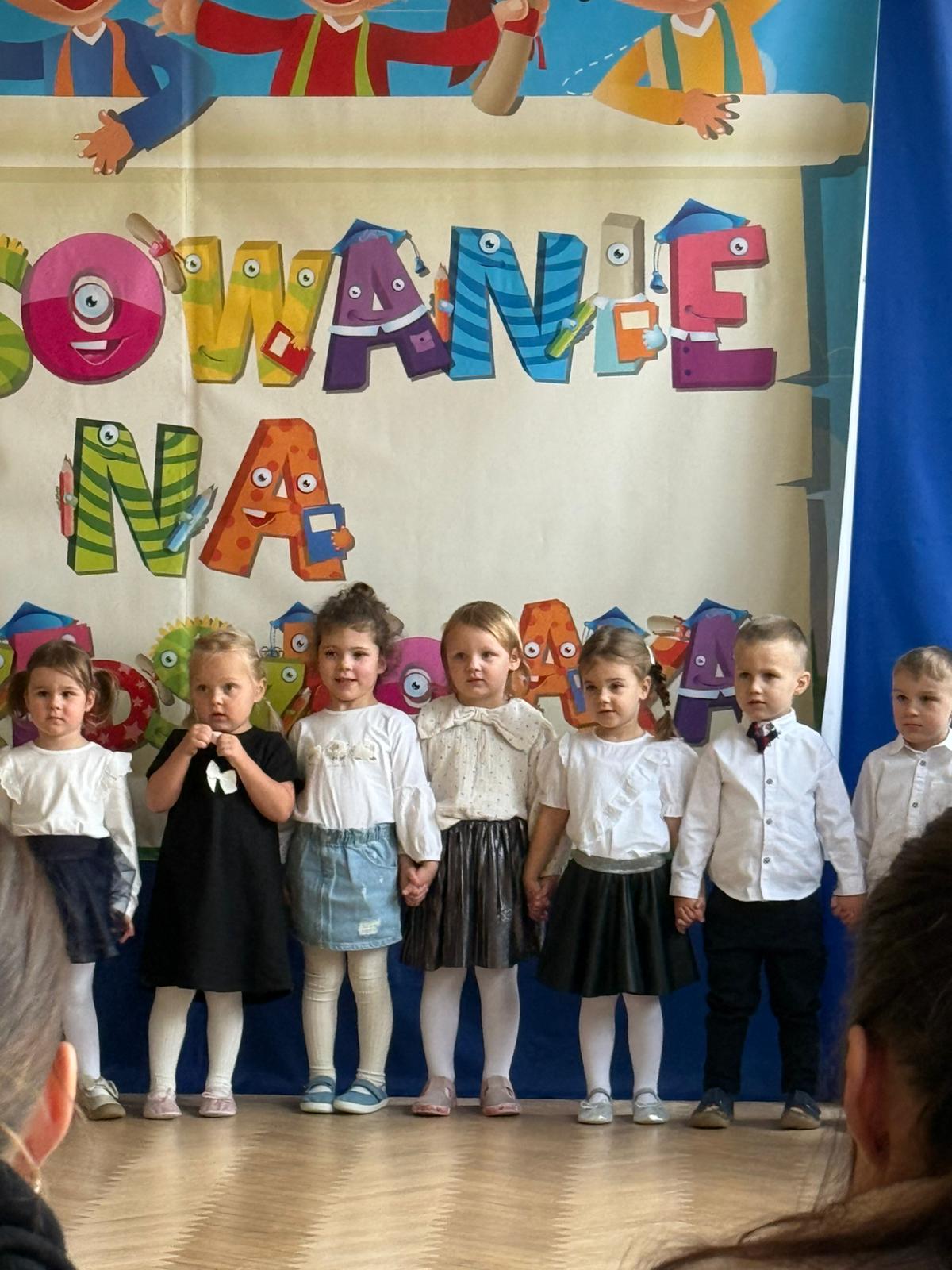 Kulminacyjnym momentem było pasowanie, podczas którego każde dziecko zostało dotknięte czarodziejskim ołówkiem. Ten symboliczny gest sprawił, że maluchy oficjalnie stały się prawdziwymi przedszkolakami. Na pamiątkę tego ważnego wydarzenia dzieci otrzymały dyplomy oraz książki.