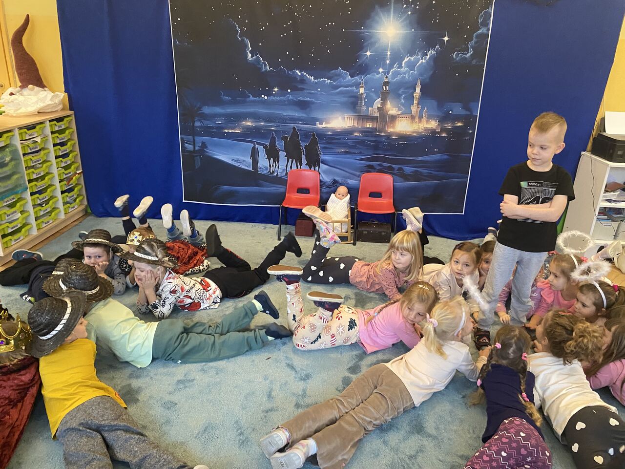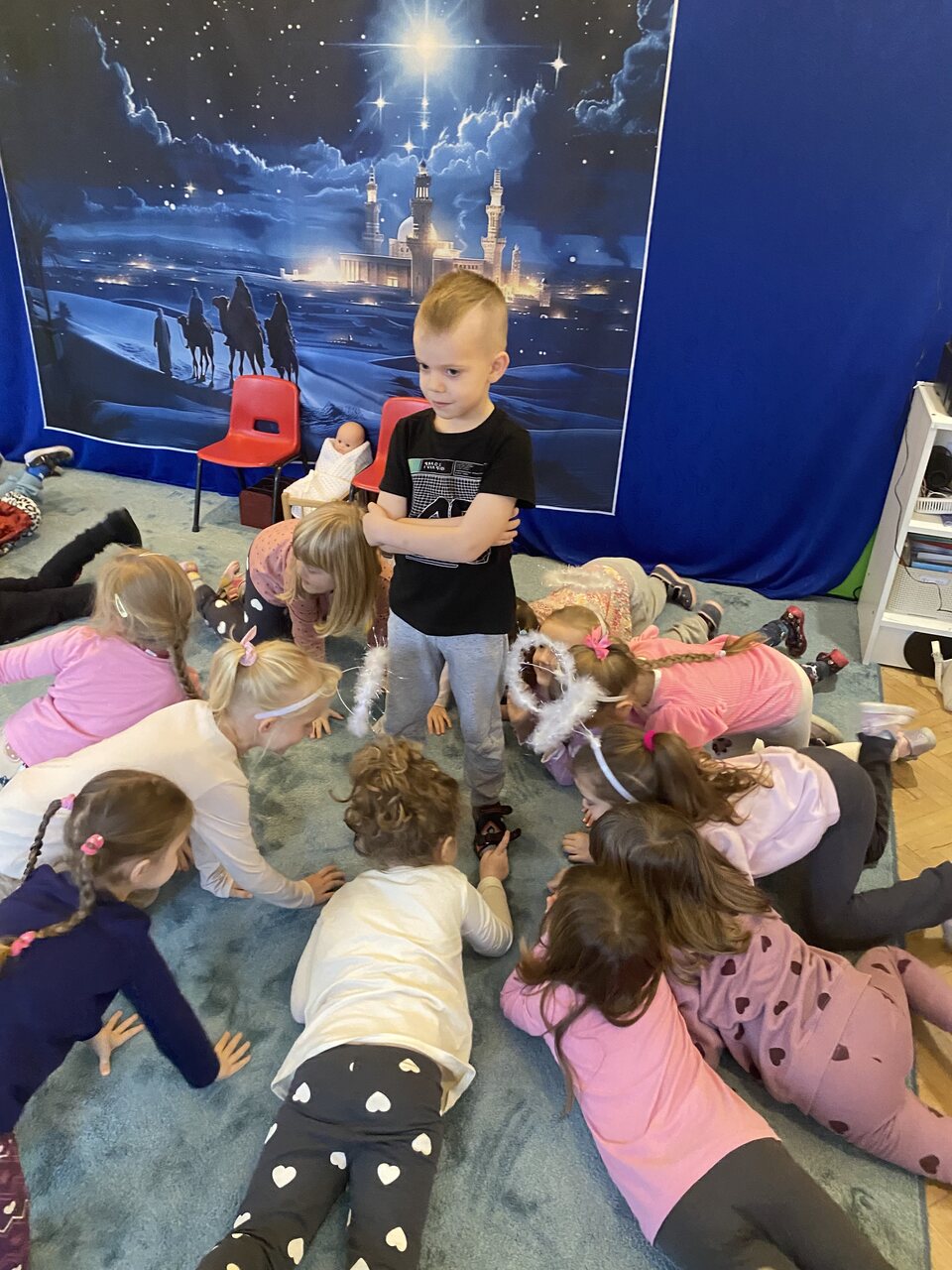 „Grunt to dobre przygotowanie”- taką zasadą kierowały się dzieci szykując się do wielkiego wydarzenia jakim są bożonarodzeniowe jasełka. Dnia 11 grudnia sala zamieniła się w Betlejem, dzieci włożyły wiele trudu i wysiłku podczas występów .Mamy nadzieje, że czas spędzony wspólnie przy kolędach i na warsztatach przybliży wszystkich do długo wyczekiwanych, magicznych i rodzinnych świąt.