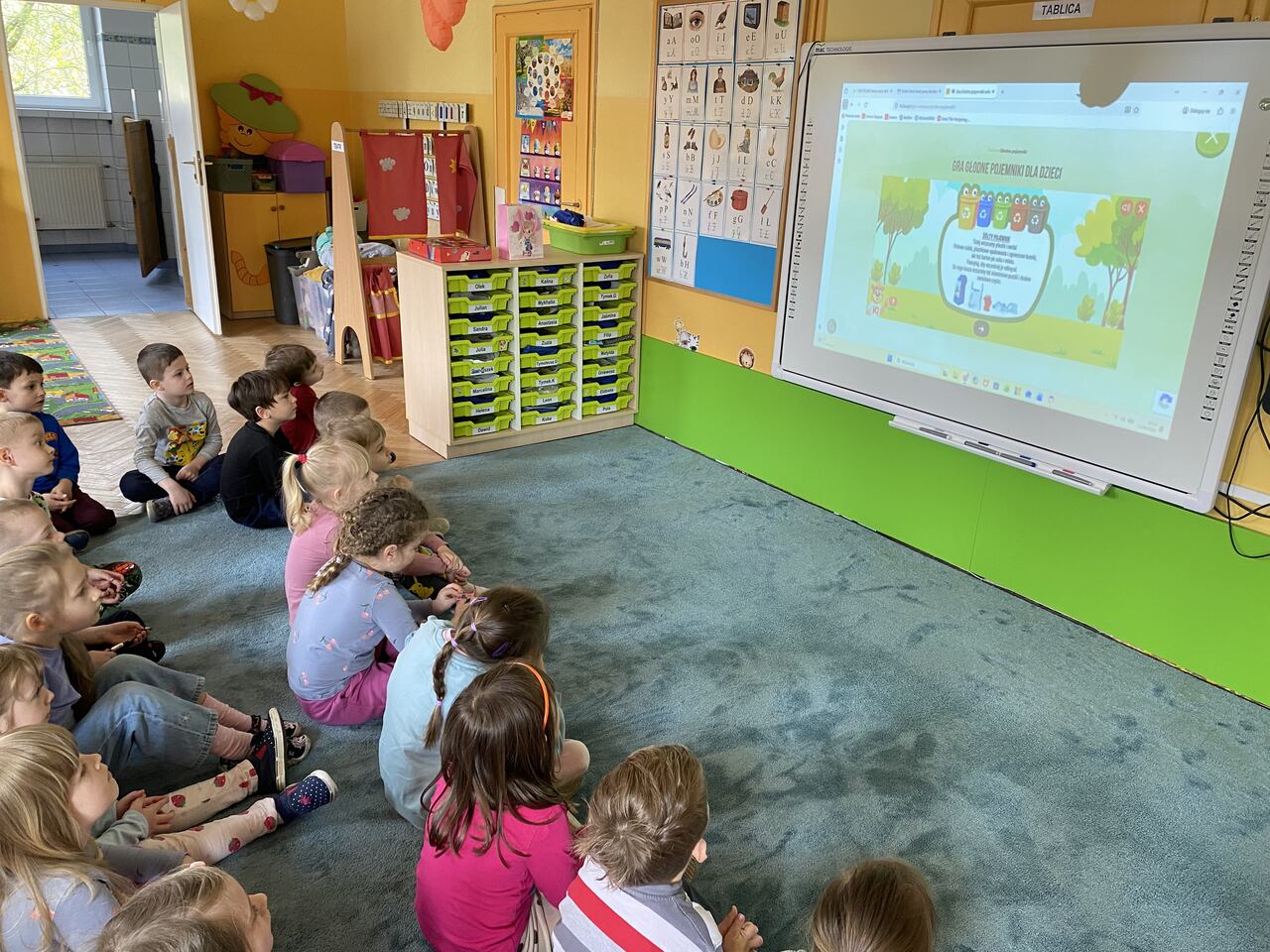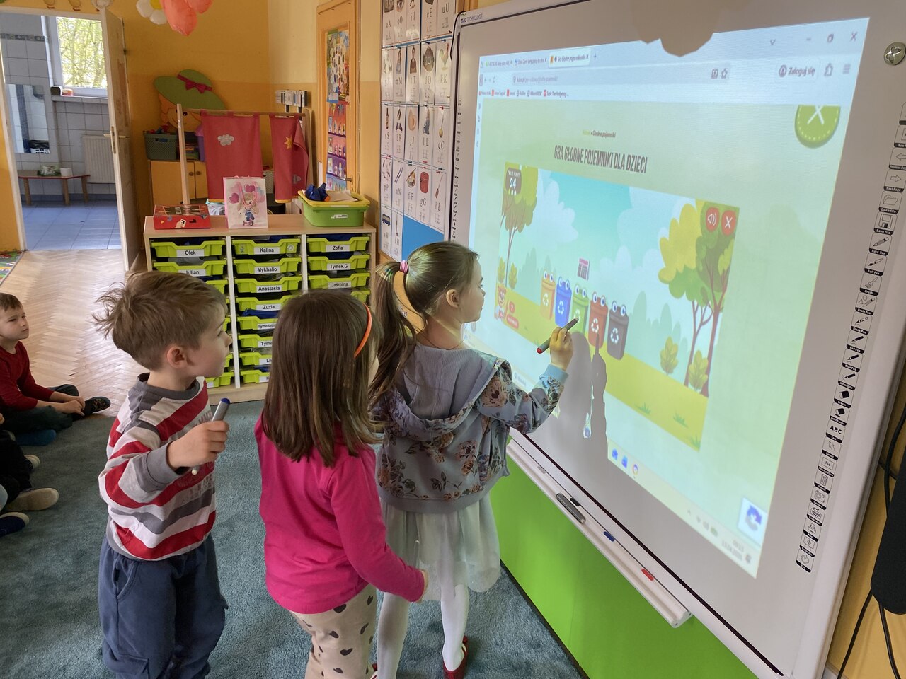 Dzieci z grupy III wzięły udział w zajęciach pt. „Skąd się biorą ekologiczne produkty?”. W ich trakcie przedszkolaki uczyły się, jak ważna jest troska o środowisko – segregowały śmieci oraz zbierały je do odpowiednich koszy podczas edukacyjnych gier. Wcześniej wspólnie przeczytaliśmy opowiadanie „Pomocnicy Ziemi”, które wprowadziło dzieci w tematykę dbania o naszą planetę. Na zakończenie zajęć dzieci wykonały karty pracy, utrwalając zdobytą wiedzę.