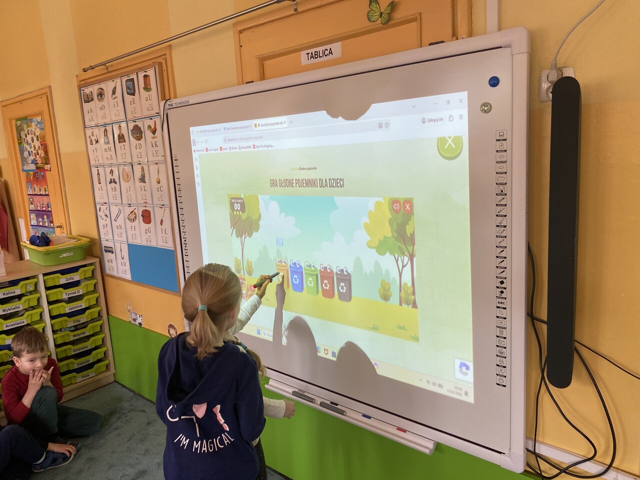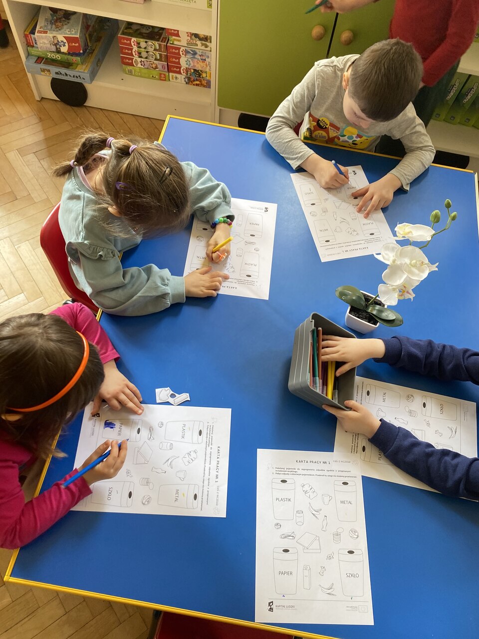 Dodatkowo rozmawialiśmy o zasadach prawidłowej segregacji odpadów oraz o tym, dlaczego jest ona tak istotna. Dzieci dowiedziały się, że dzięki segregacji śmieci możemy ponownie wykorzystać wiele materiałów, zmniejszyć ilość odpadów oraz chronić przyrodę. Podkreśliliśmy, że każdy, nawet najmniejszy gest – jak wrzucenie papierka do odpowiedniego kosza – ma znaczenie dla naszej planety.