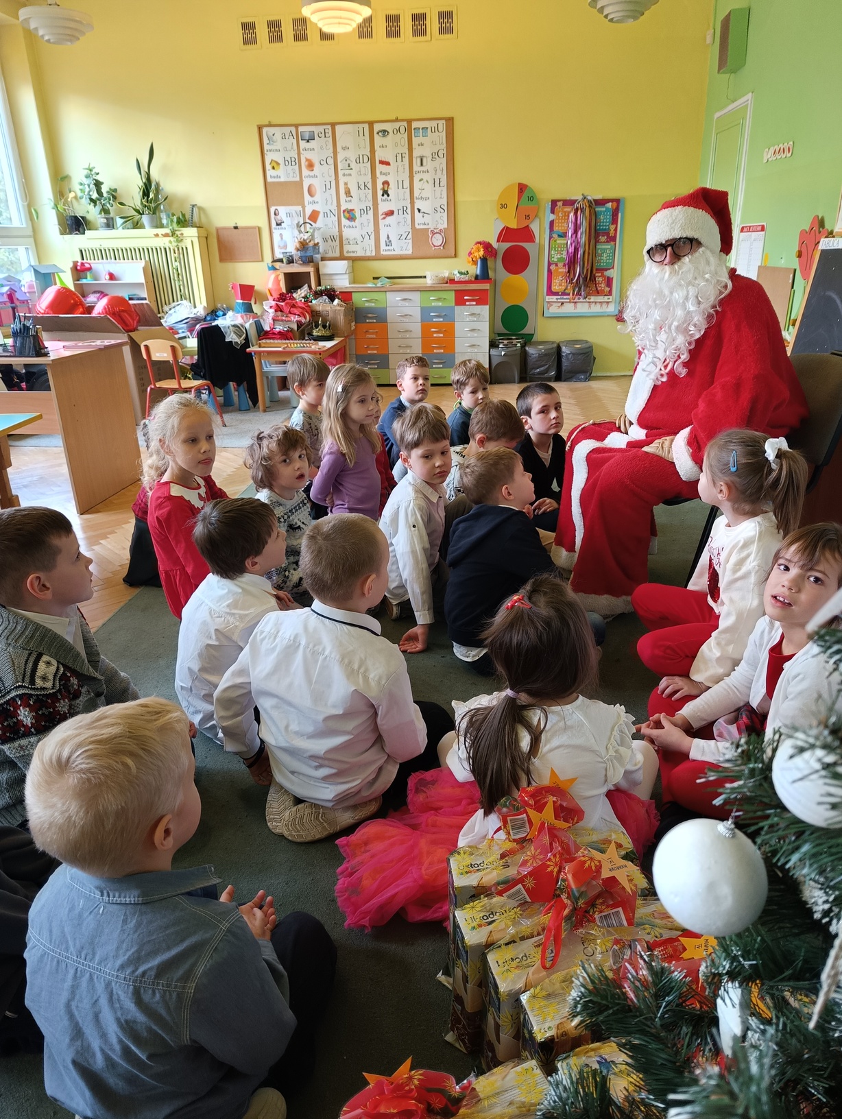 Na ten dzień czekaliśmy cały rok. Niecierpliwiliśmy się już od kilku dni. Odświętnie ubrani obejrzeliśmy świąteczne przedstawienie a później podekscytowani czekaliśmy w Sali na przyjście Mikołaja no i oczywiście na prezenty.