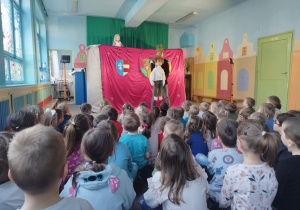 Teatr "Widzimisie" przedstawił naszym przedszkolakom teatrzyk pt.: "Żabi królewicz". Tematem przewodnim przedstawienia były zasady postępowania obowiązujące w życiu społecznym. Bohater bajki za nieprzestrzeganie zasad został zamieniony w żabę. Dopiero jego przemiana w empatyczną postać, pozwoliła mu powrócić do ludzkiej postać. Ciekawa choreografia, dobra gra aktorów, wesoła muzyka dopełniły całości przedstawienie, które bardzo spodobało się naszym małym widzom.