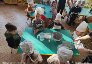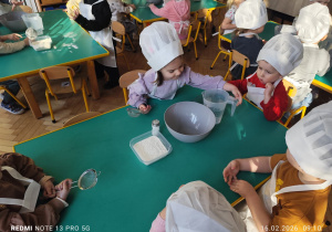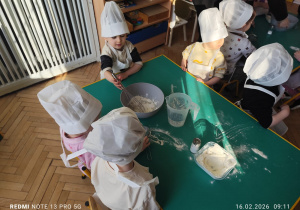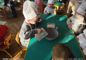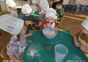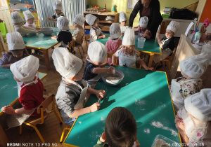 Na początku spotkania dzieci dowiedziały się kilku ciekawostek o historii pancake’ów oraz poznały składniki potrzebne do przygotowania tego popularnego przysmaku. Następnie mali kucharze przystąpili do działania. Ubrani w fartuszki i czapki kucharskie z ogromnym zaangażowaniem wyrabiali ciasto, poznając kolejne etapy przygotowania naleśników.