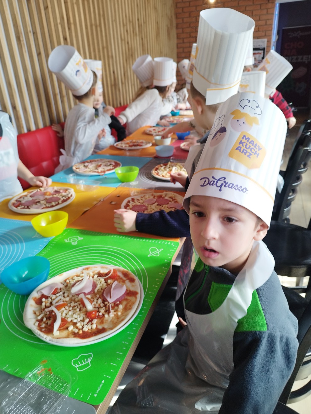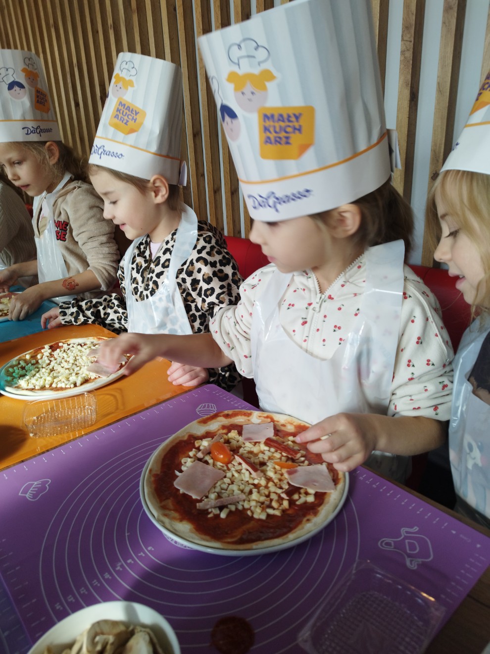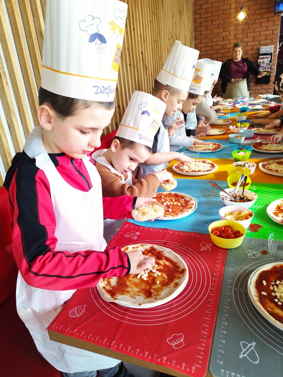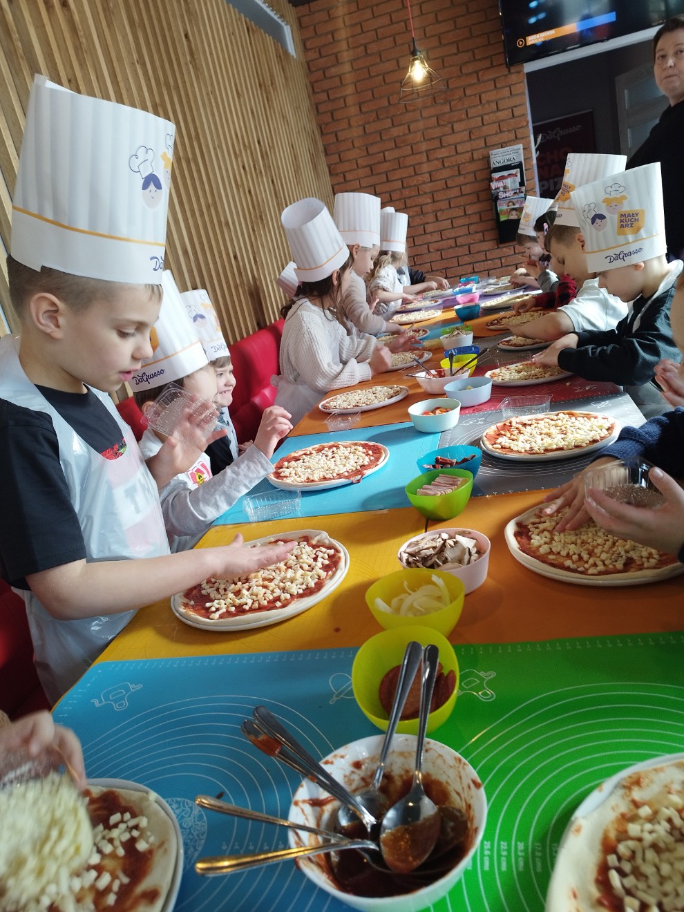 Dziś przedszkolaki wybrały się na wyjątkową wycieczkę do pizzerii Da Grasso, gdzie uczestniczyły w warsztatach kulinarnych – przygotowywaniu własnej pizzy.