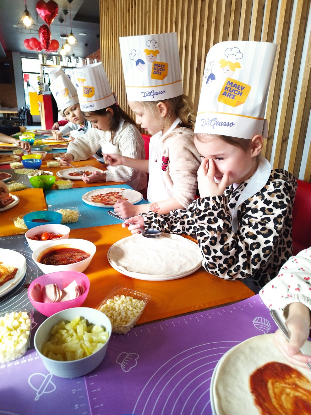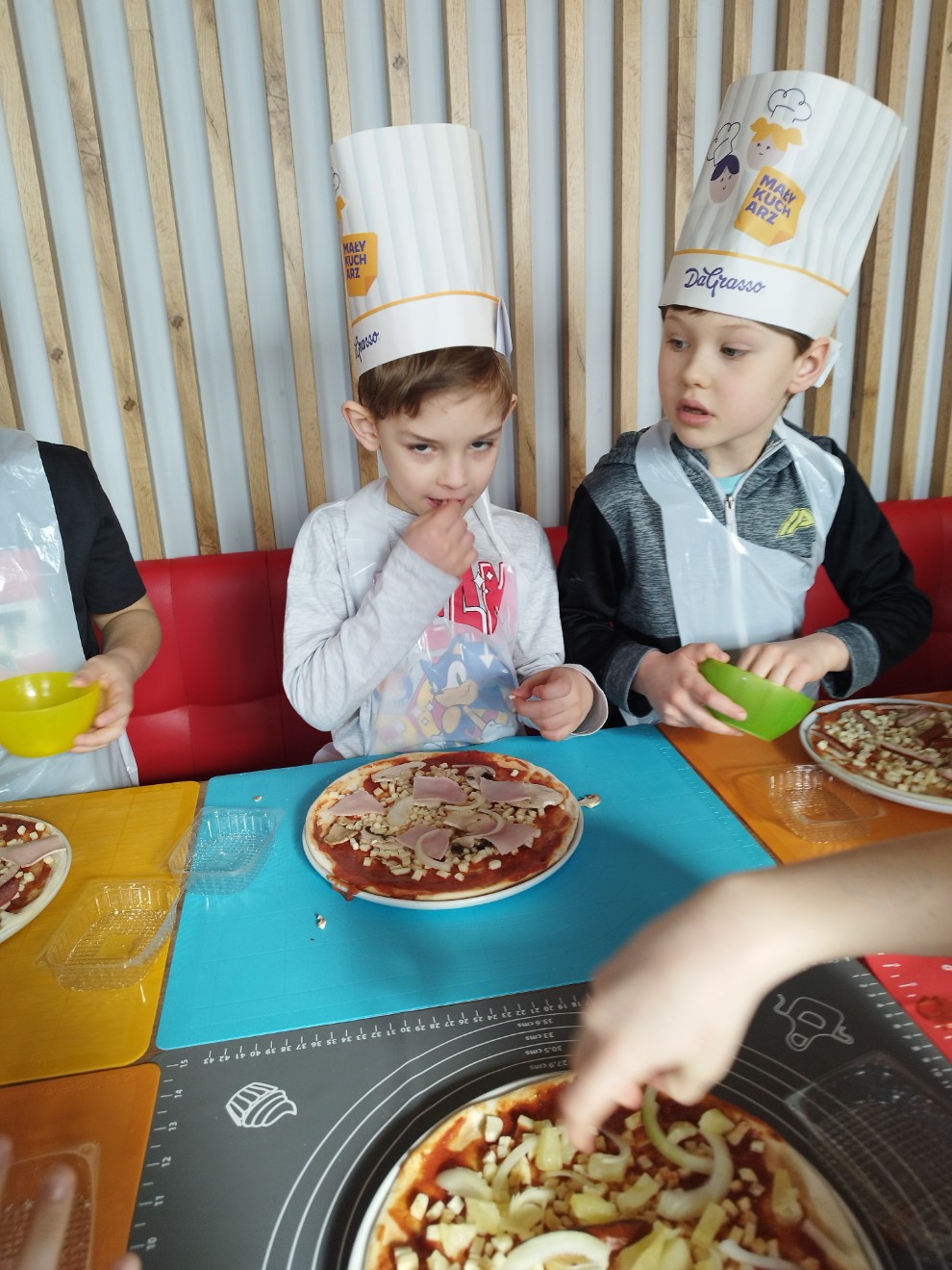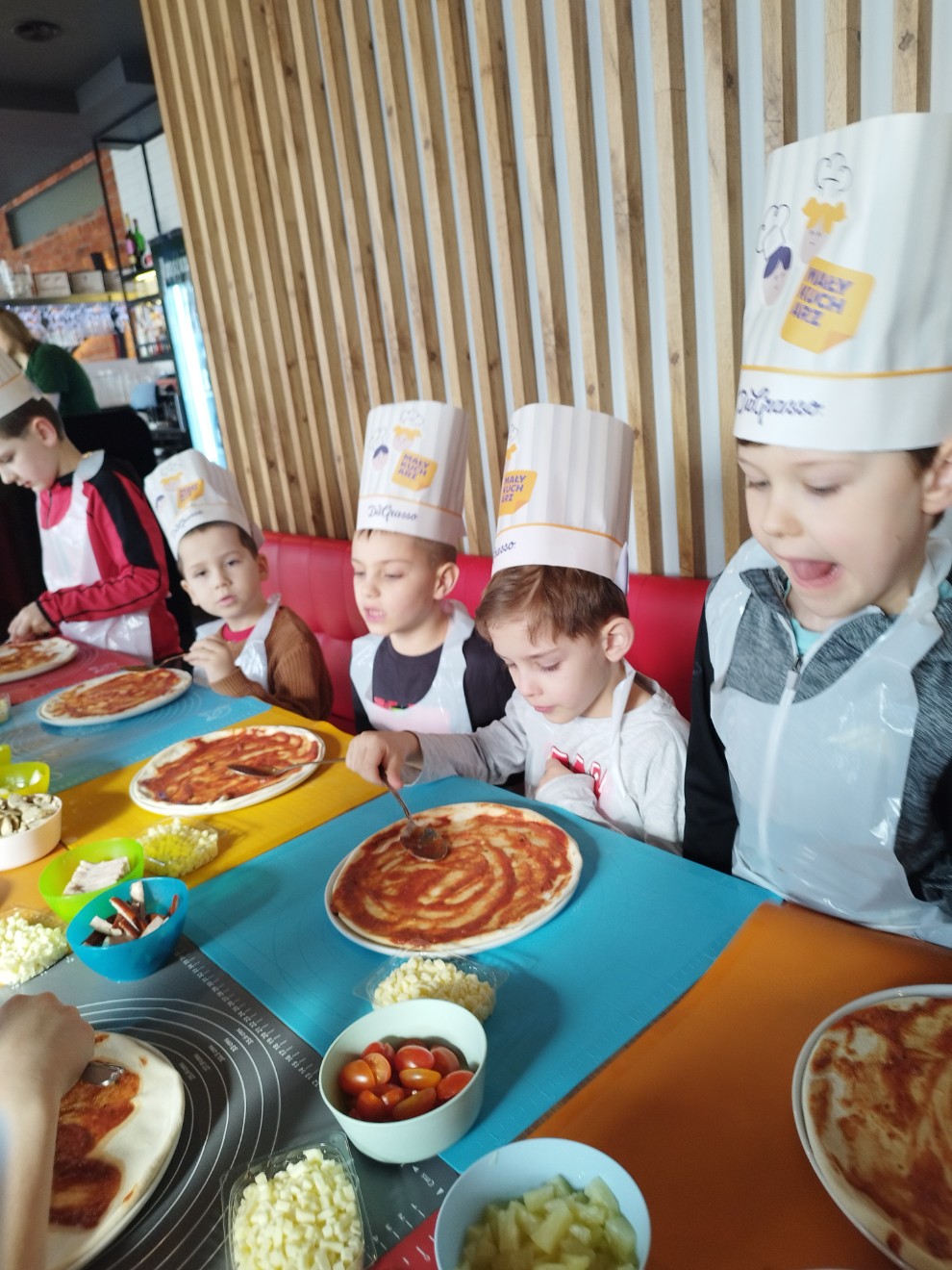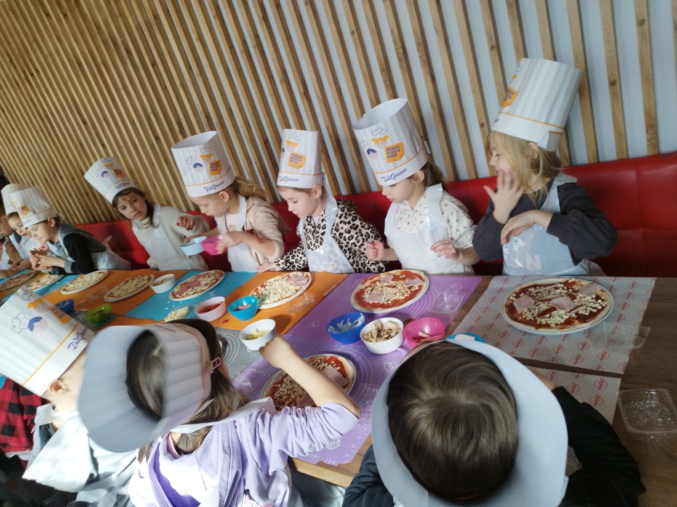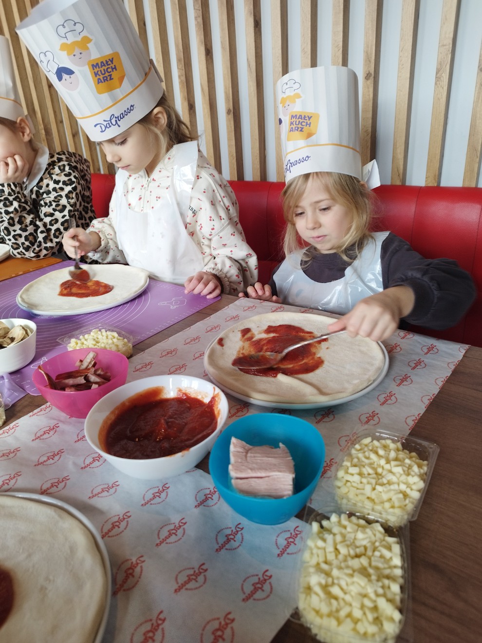 Dziś przedszkolaki wybrały się na wyjątkową wycieczkę do pizzerii Da Grasso, gdzie uczestniczyły w warsztatach kulinarnych – przygotowywaniu własnej pizzy.