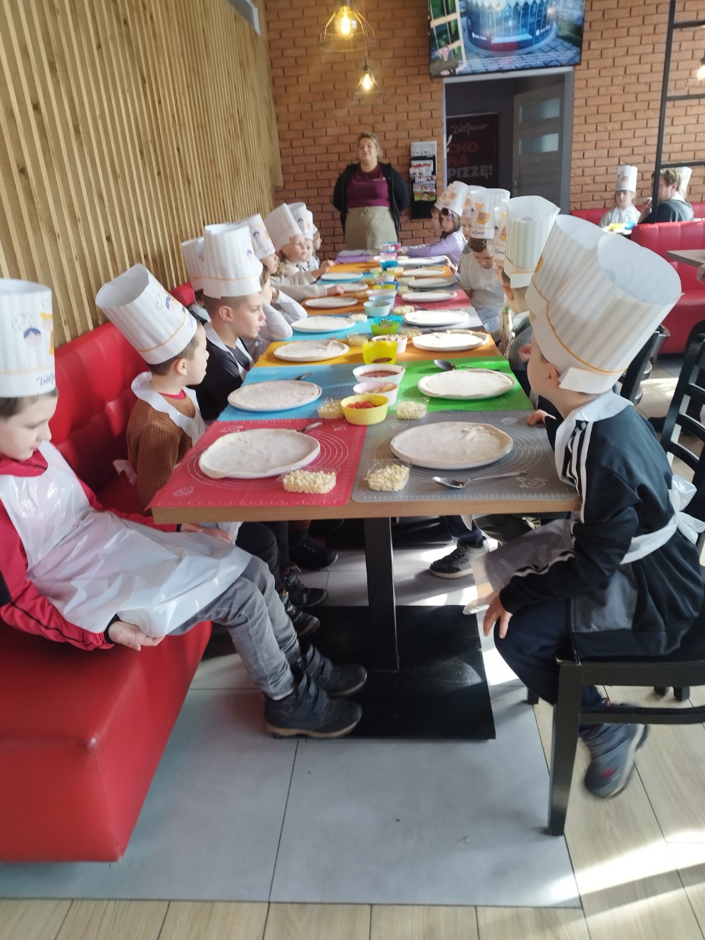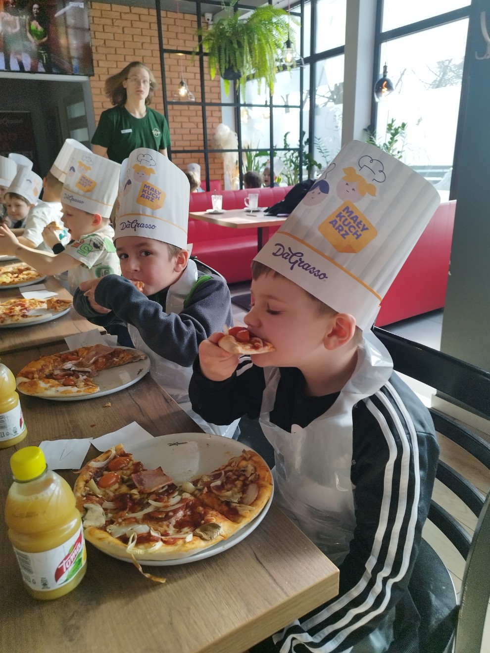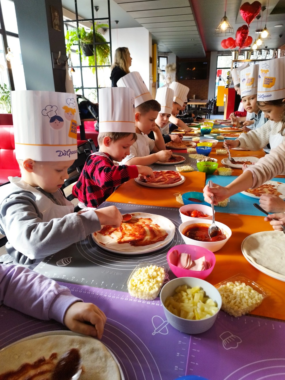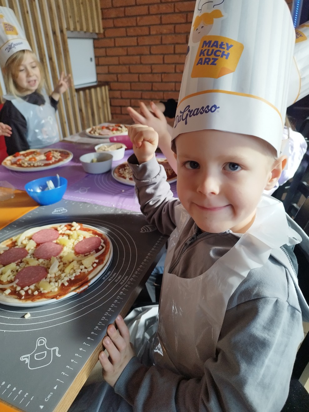 Dziś przedszkolaki wybrały się na wyjątkową wycieczkę do pizzerii Da Grasso, gdzie uczestniczyły w warsztatach kulinarnych – przygotowywaniu własnej pizzy.