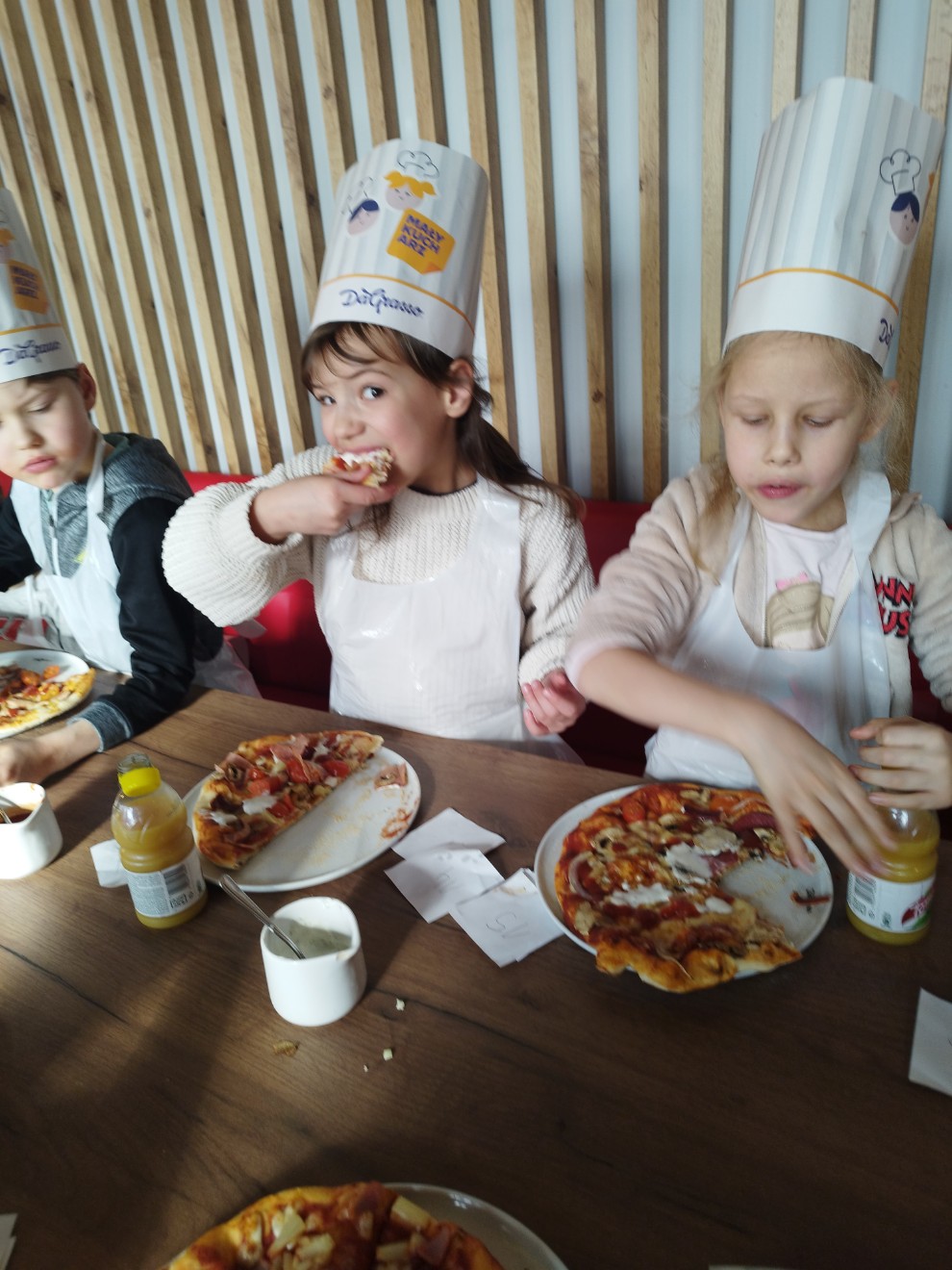Na zakończenie odbyła się wspólna degustacja przygotowanych pizz, która sprawiła dzieciom wiele radości i satysfakcji. Wycieczka była pełna pozytywnych emocji i kulinarnych doświadczeń.