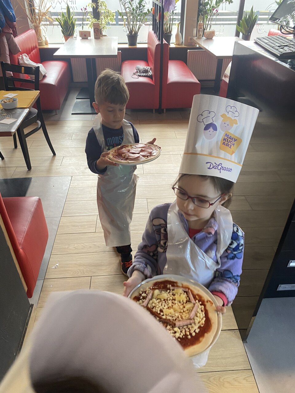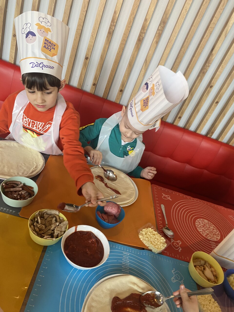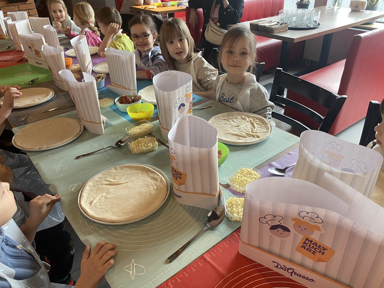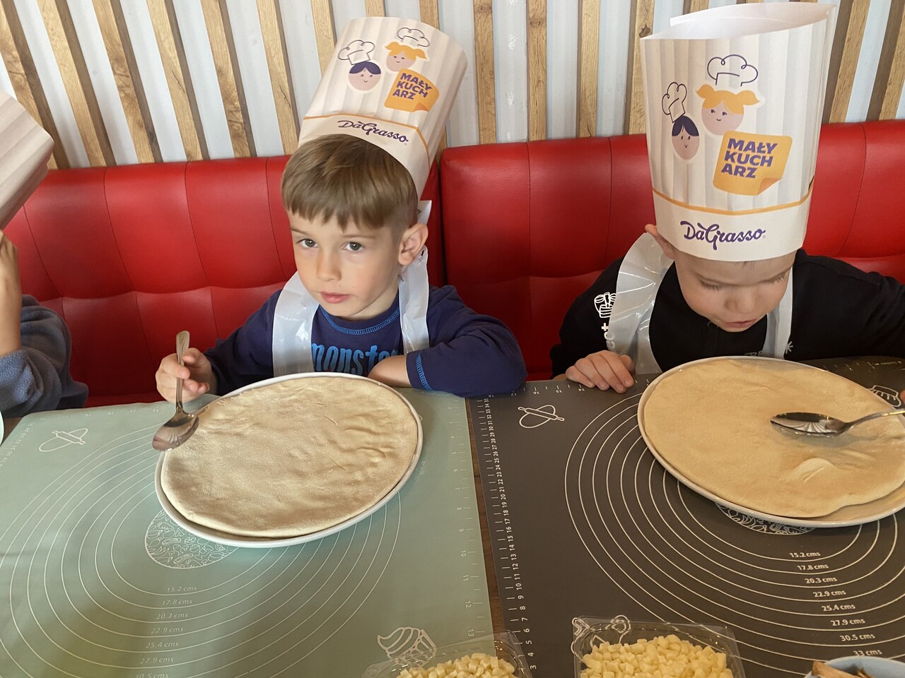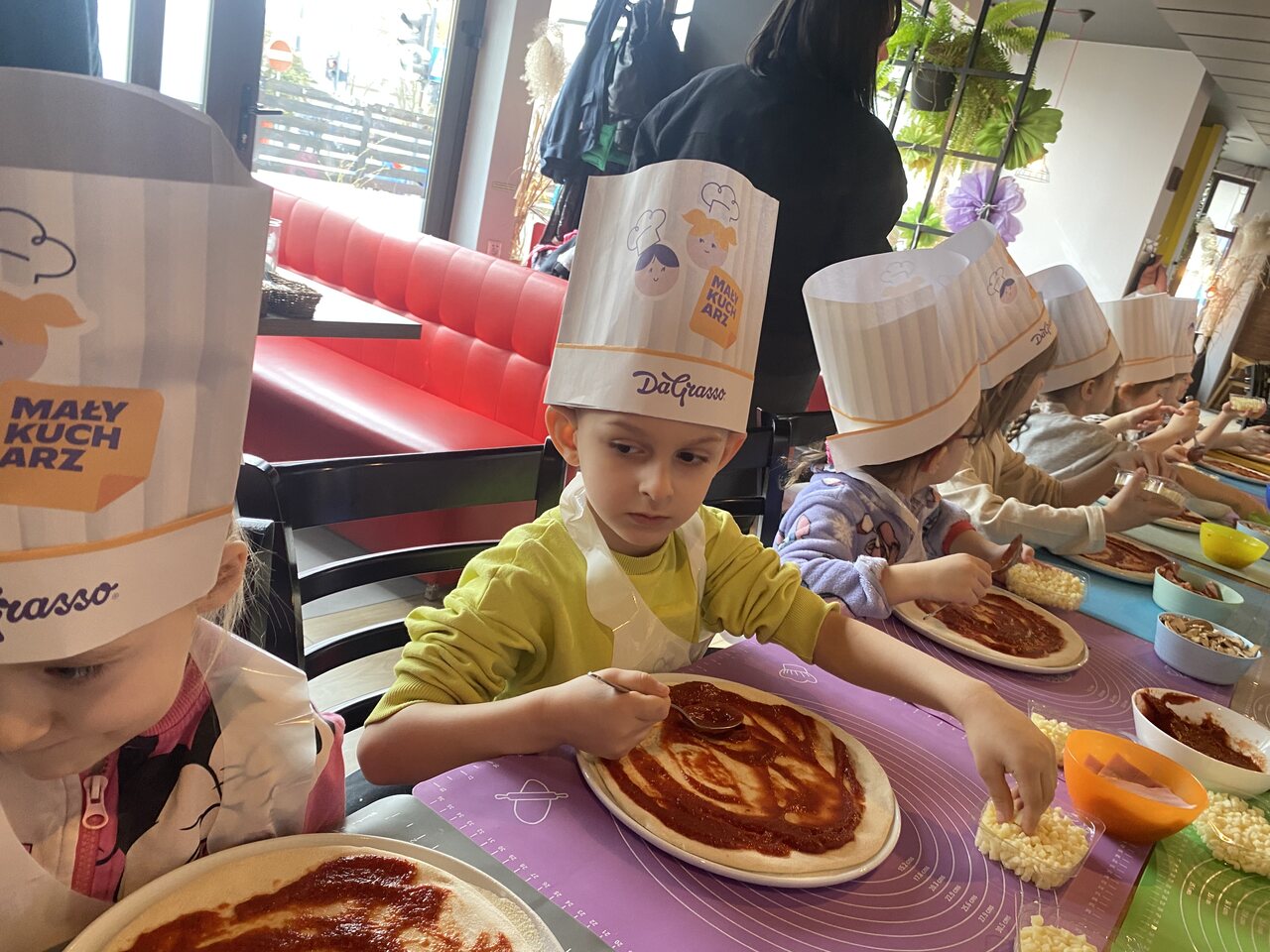 Dziś przedszkolaki wybrały się na wyjątkową wycieczkę do pizzerii Da Grasso, gdzie uczestniczyły w warsztatach kulinarnych – przygotowywaniu własnej pizzy.