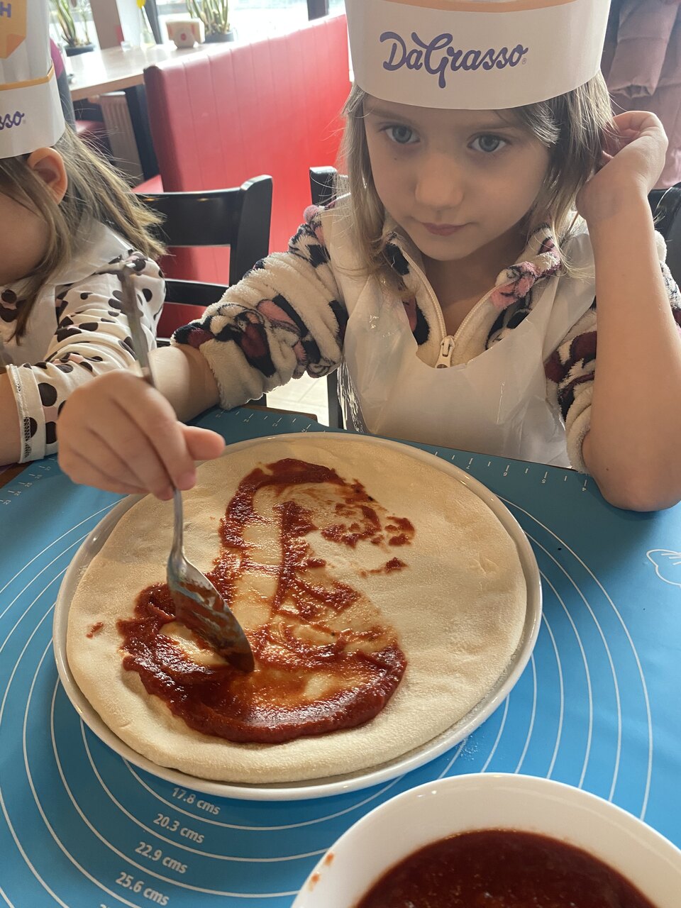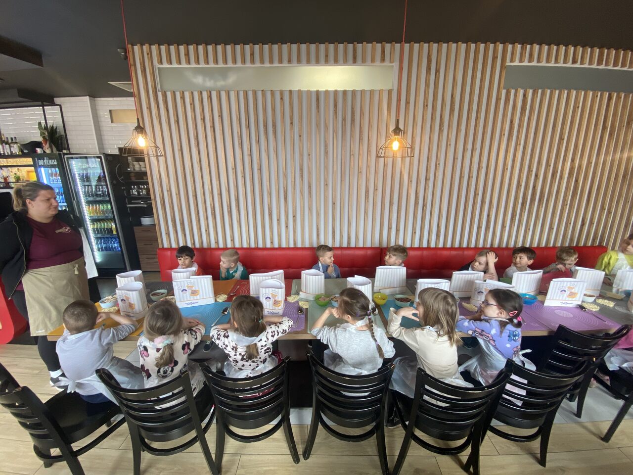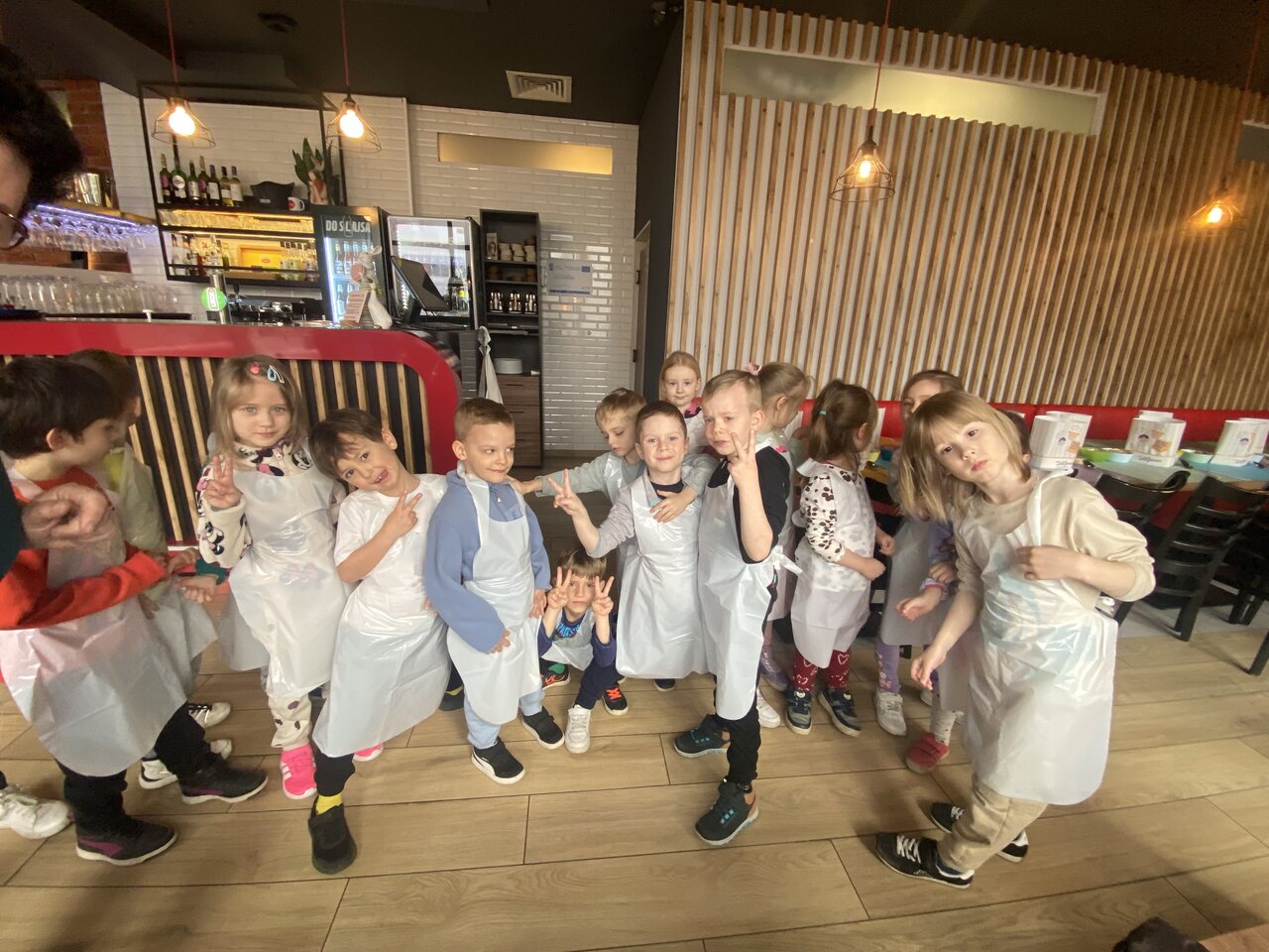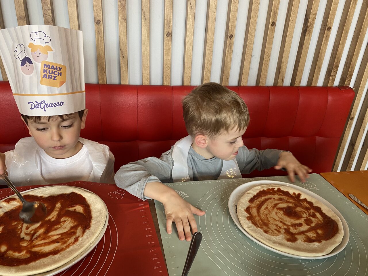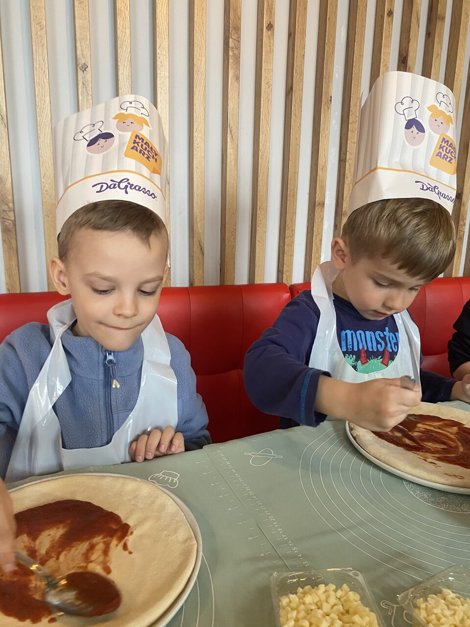 Dziś przedszkolaki wybrały się na wyjątkową wycieczkę do pizzerii Da Grasso, gdzie uczestniczyły w warsztatach kulinarnych – przygotowywaniu własnej pizzy.