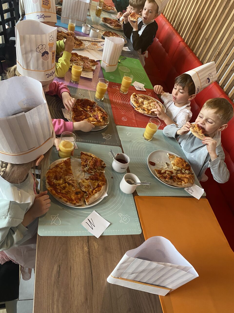 Na zakończenie odbyła się wspólna degustacja przygotowanych pizz, która sprawiła dzieciom wiele radości i satysfakcji. Wycieczka była pełna pozytywnych emocji i kulinarnych doświadczeń.