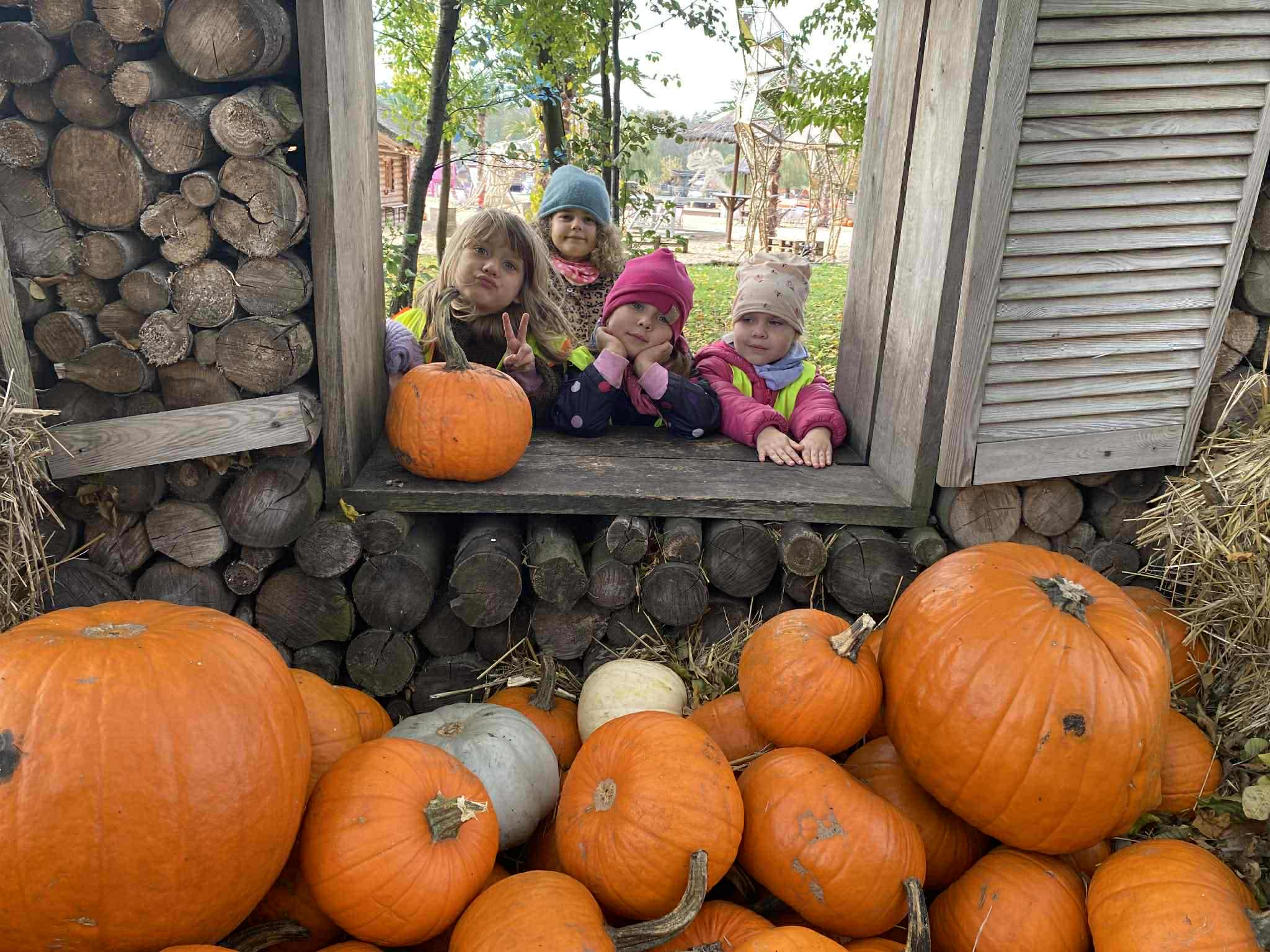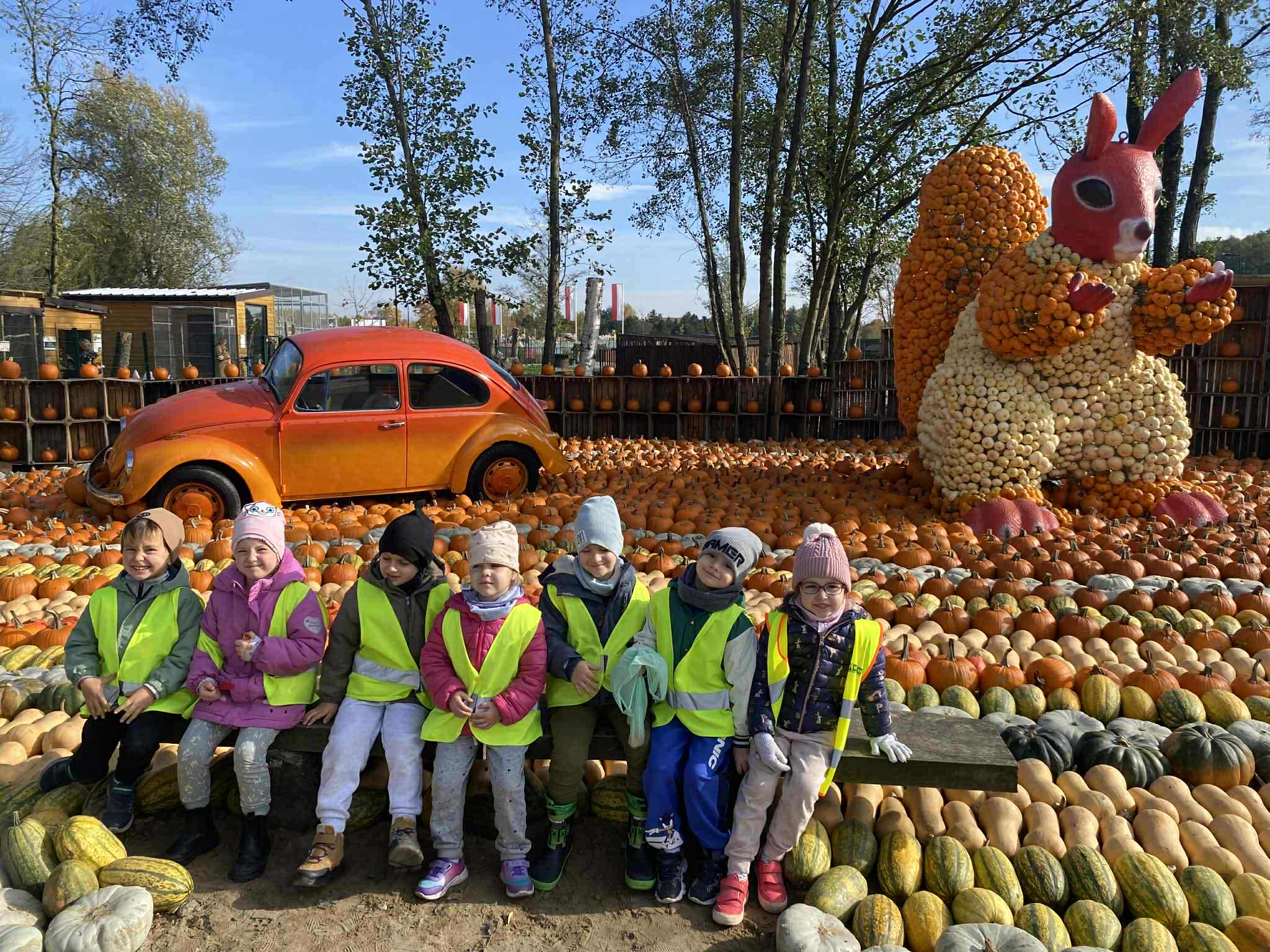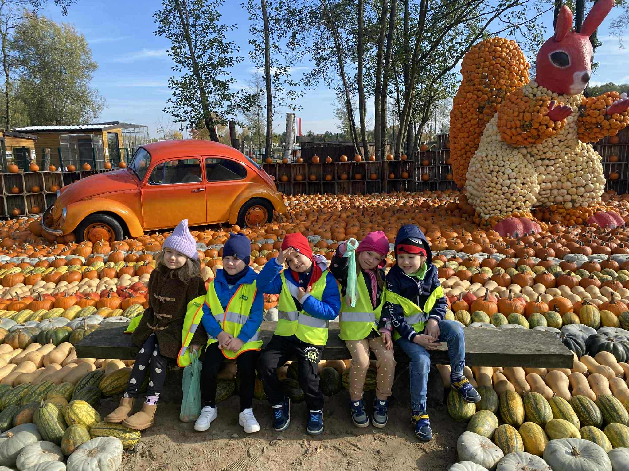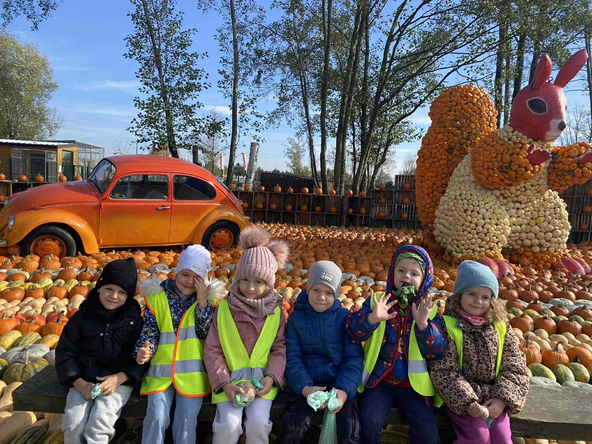 22.10.2025 r. dzieci z naszego przedszkola wybrały się na wycieczkę do Dobronianki w Dobroniu. Celem wycieczki były: obserwacja i czerpanie pozytywnych wrażeń w kontakcie z przyrodą, zainteresowanie różnorodnością gatunkową świata zwierząt oraz kształtowanie świadomości ekologicznej. Przedszkolaki miały możliwość poznać różne zwierzęta takie jak: alpaki, kozy, konie, wielbłądy, osły, mary, króliki, pawie i wiele innych, a także karmić niektóre z ich marchewkami oraz wysłuchać ciekawostek na ich temat. Po zwiedzaniu zoo udaliśmy się na warsztaty plastyczne „Zdobienie drewnianych dyń”, podczas których dzieci rozwijały zdolności manualne i inwencję twórczą. Pobyt w zoo dostarczył najmłodszym wiele radości oraz był wspaniałą lekcją przyrody przeżytą w ciekawym i atrakcyjnym miejscu.