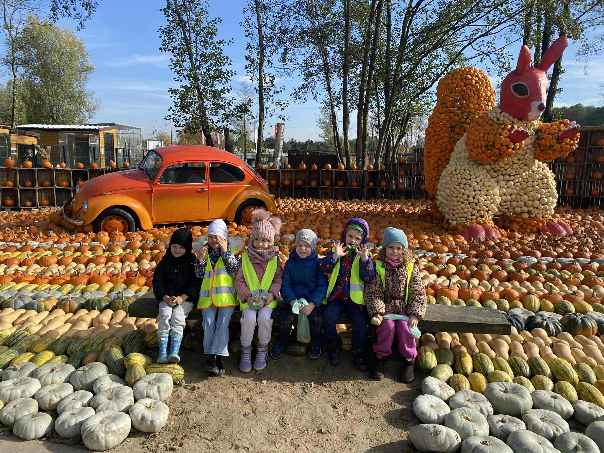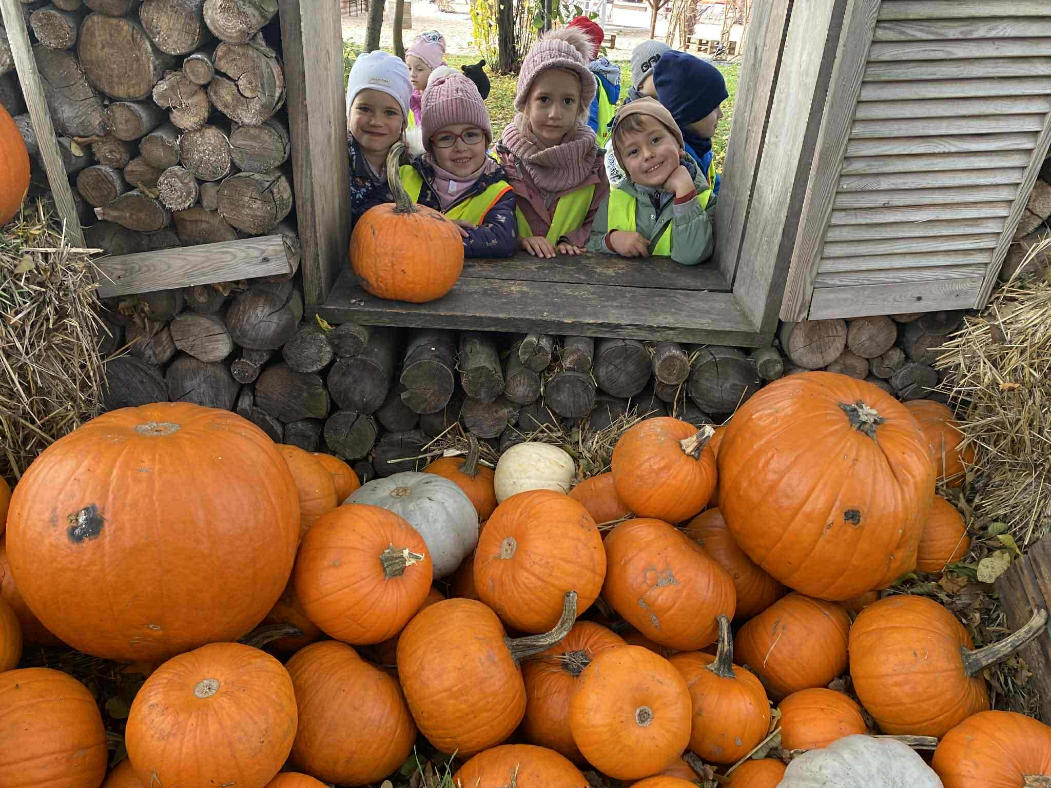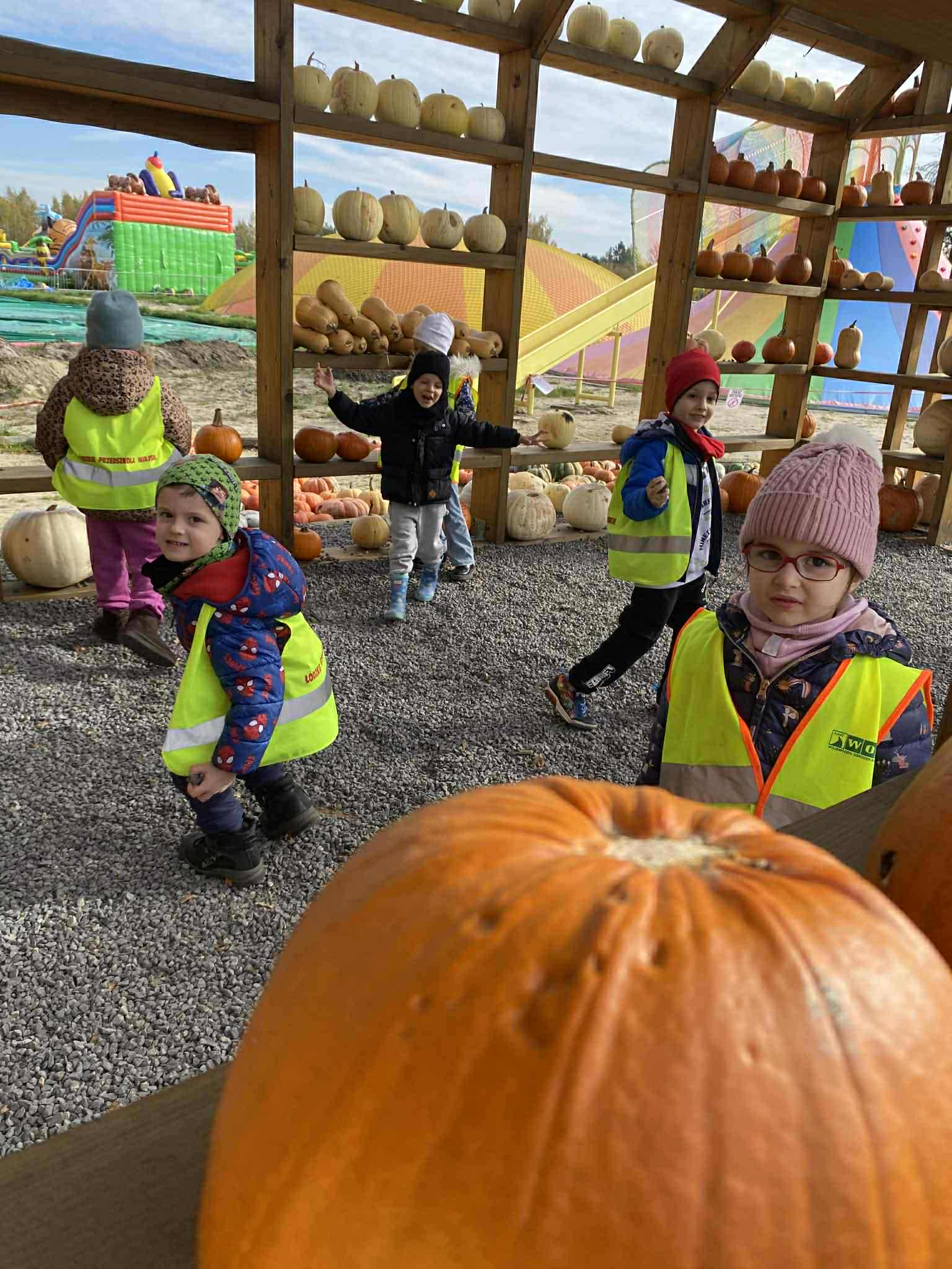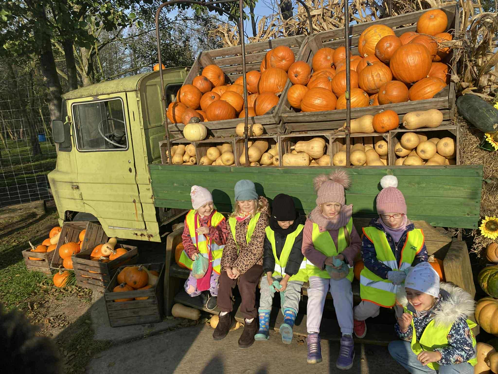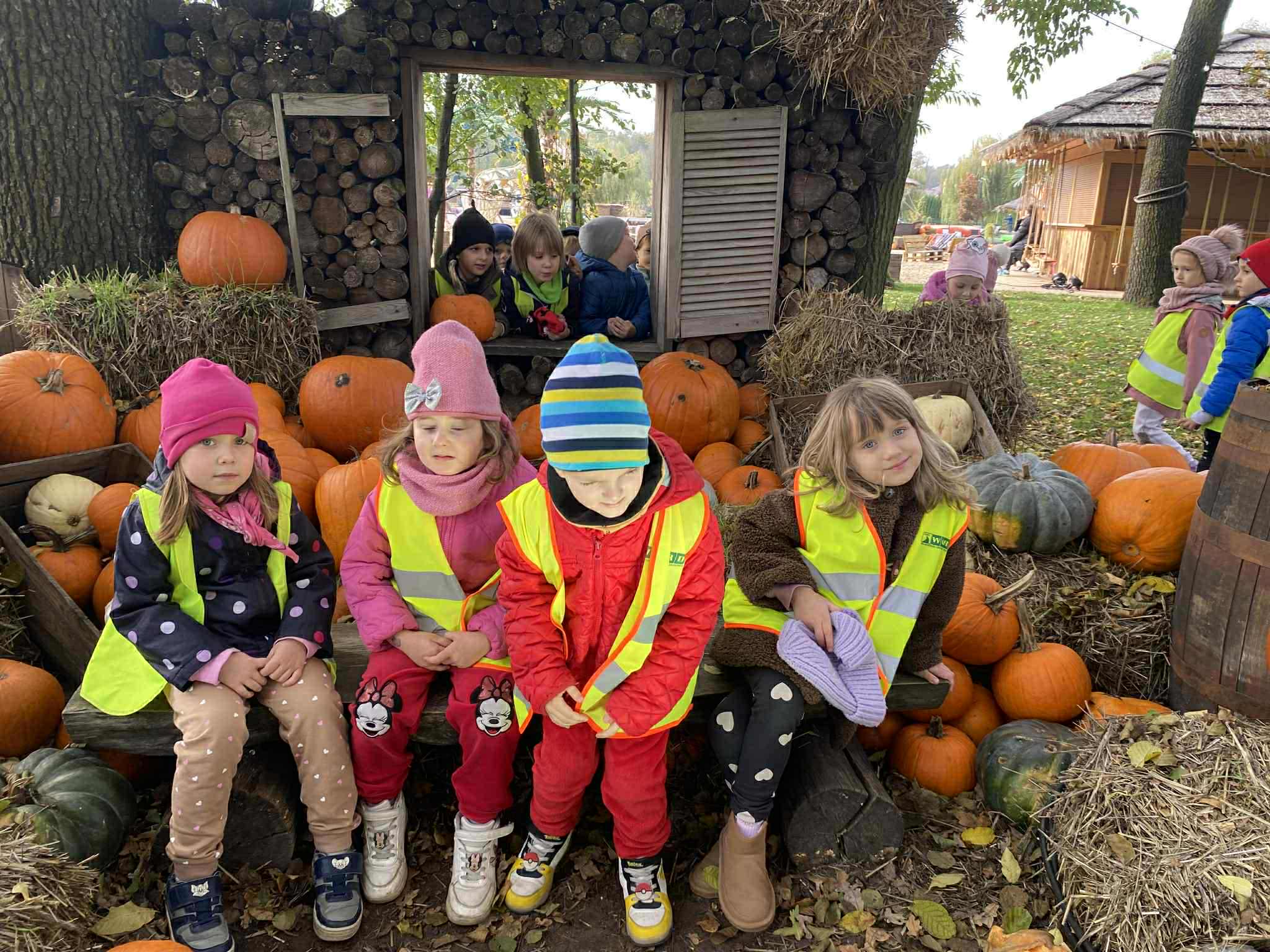 22.10.2025 r. dzieci z naszego przedszkola wybrały się na wycieczkę do Dobronianki w Dobroniu. Celem wycieczki były: obserwacja i czerpanie pozytywnych wrażeń w kontakcie z przyrodą, zainteresowanie różnorodnością gatunkową świata zwierząt oraz kształtowanie świadomości ekologicznej. Przedszkolaki miały możliwość poznać różne zwierzęta takie jak: alpaki, kozy, konie, wielbłądy, osły, mary, króliki, pawie i wiele innych, a także karmić niektóre z ich marchewkami oraz wysłuchać ciekawostek na ich temat. Po zwiedzaniu zoo udaliśmy się na warsztaty plastyczne „Zdobienie drewnianych dyń”, podczas których dzieci rozwijały zdolności manualne i inwencję twórczą. Pobyt w zoo dostarczył najmłodszym wiele radości oraz był wspaniałą lekcją przyrody przeżytą w ciekawym i atrakcyjnym miejscu.