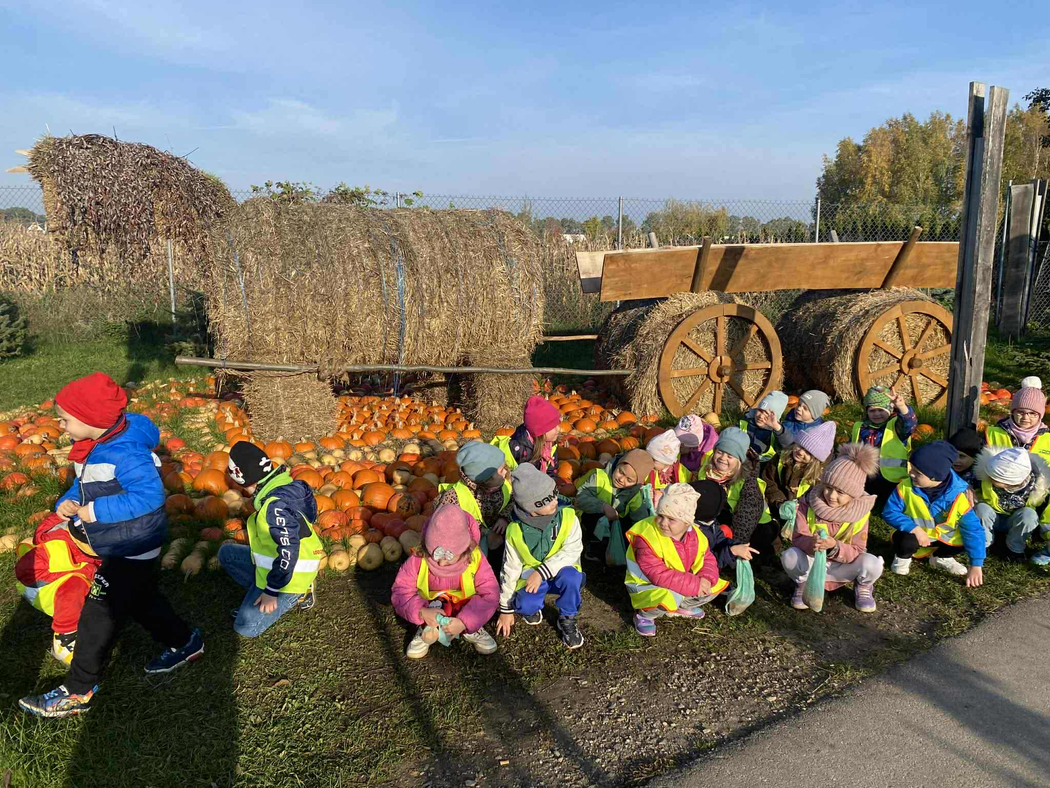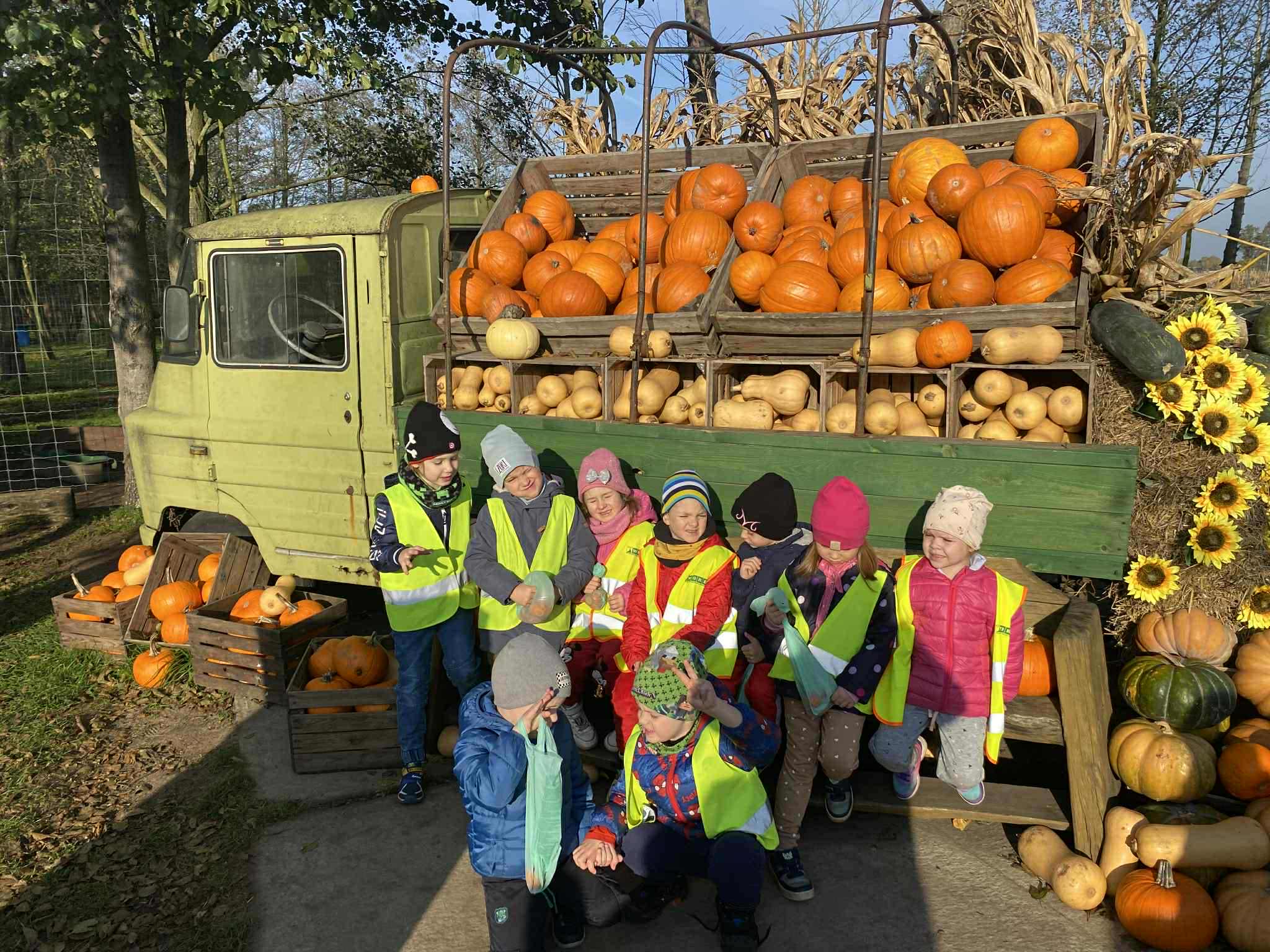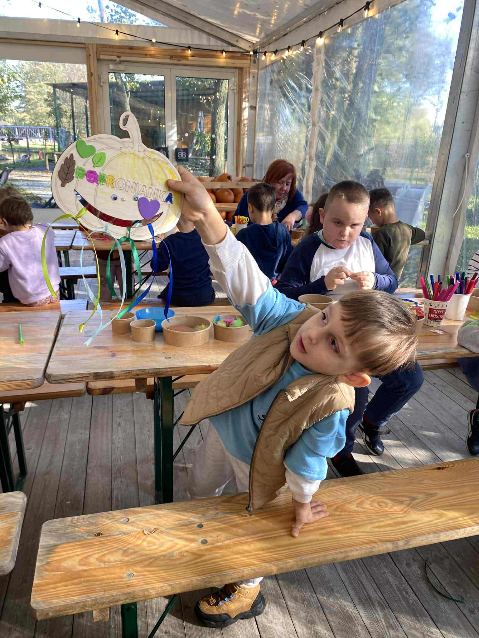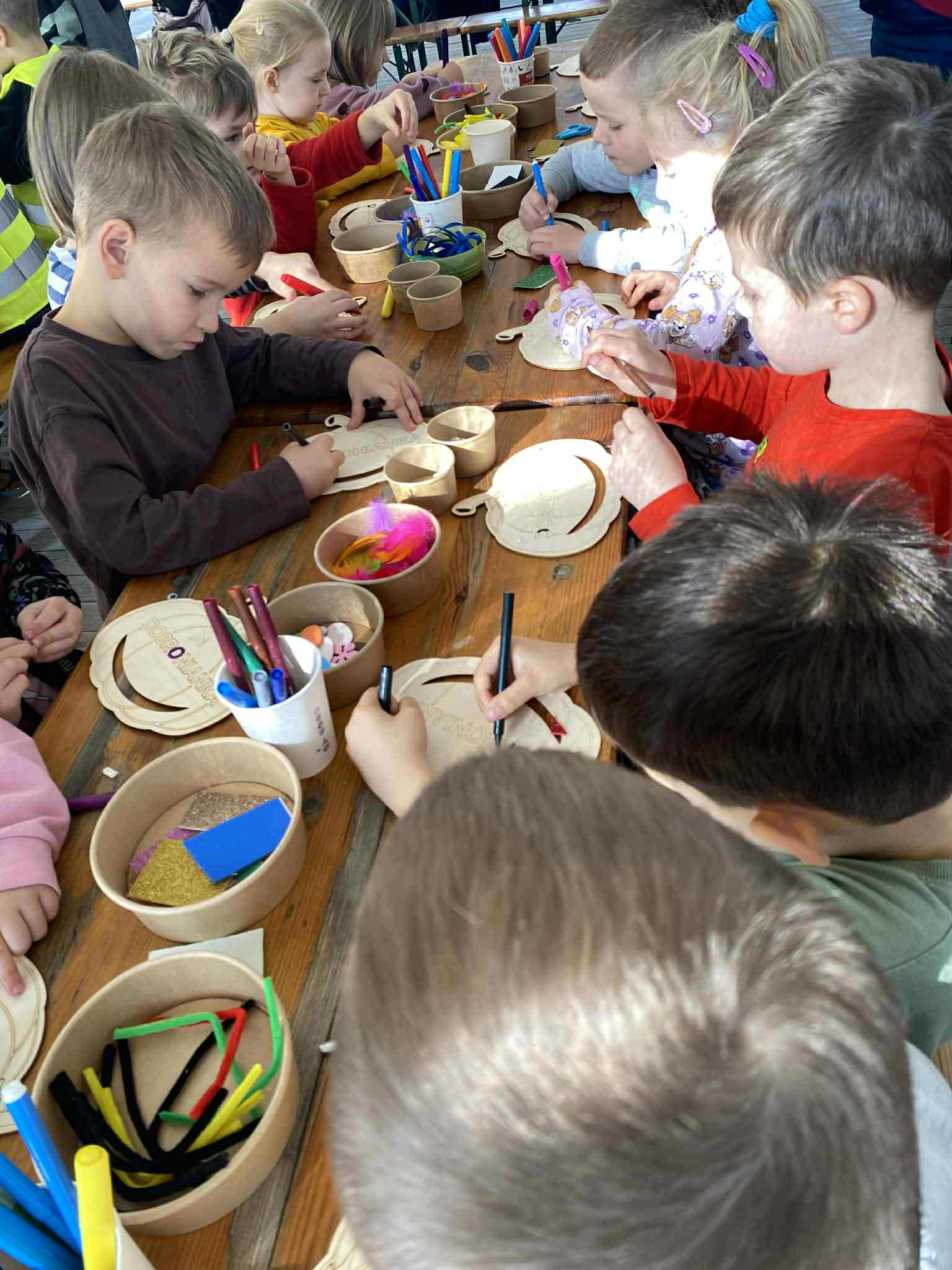 22.10.2025 r. dzieci z naszego przedszkola wybrały się na wycieczkę do Dobronianki w Dobroniu. Celem wycieczki były: obserwacja i czerpanie pozytywnych wrażeń w kontakcie z przyrodą, zainteresowanie różnorodnością gatunkową świata zwierząt oraz kształtowanie świadomości ekologicznej. Przedszkolaki miały możliwość poznać różne zwierzęta takie jak: alpaki, kozy, konie, wielbłądy, osły, mary, króliki, pawie i wiele innych, a także karmić niektóre z ich marchewkami oraz wysłuchać ciekawostek na ich temat. Po zwiedzaniu zoo udaliśmy się na warsztaty plastyczne „Zdobienie drewnianych dyń”, podczas których dzieci rozwijały zdolności manualne i inwencję twórczą. Pobyt w zoo dostarczył najmłodszym wiele radości oraz był wspaniałą lekcją przyrody przeżytą w ciekawym i atrakcyjnym miejscu.