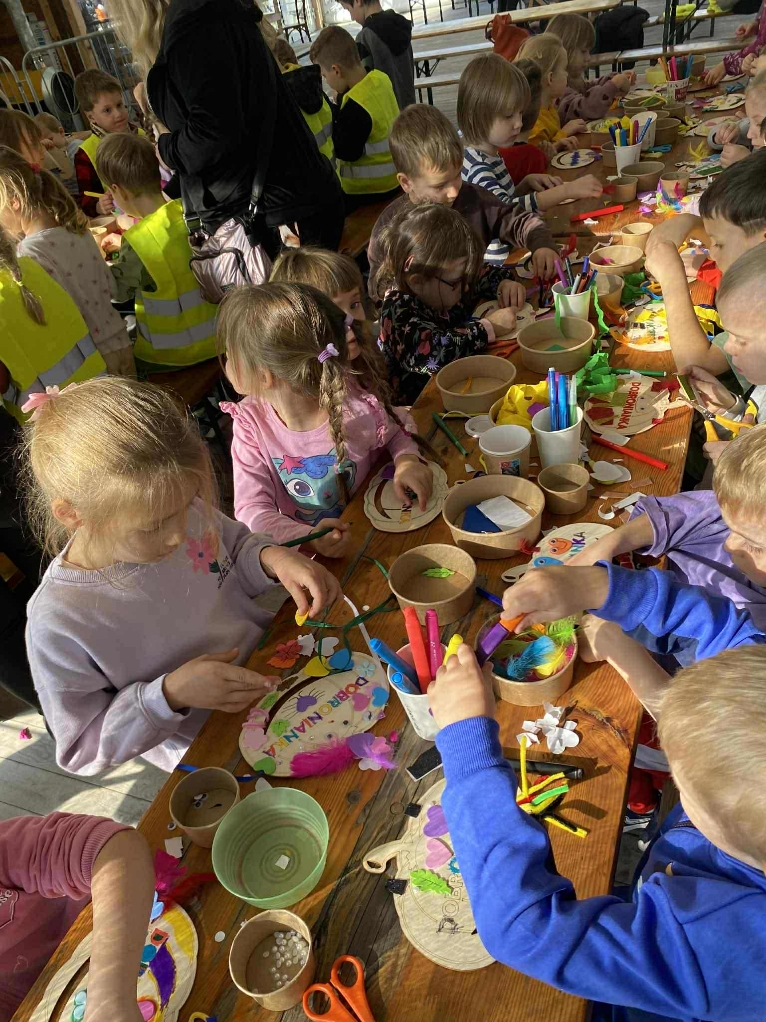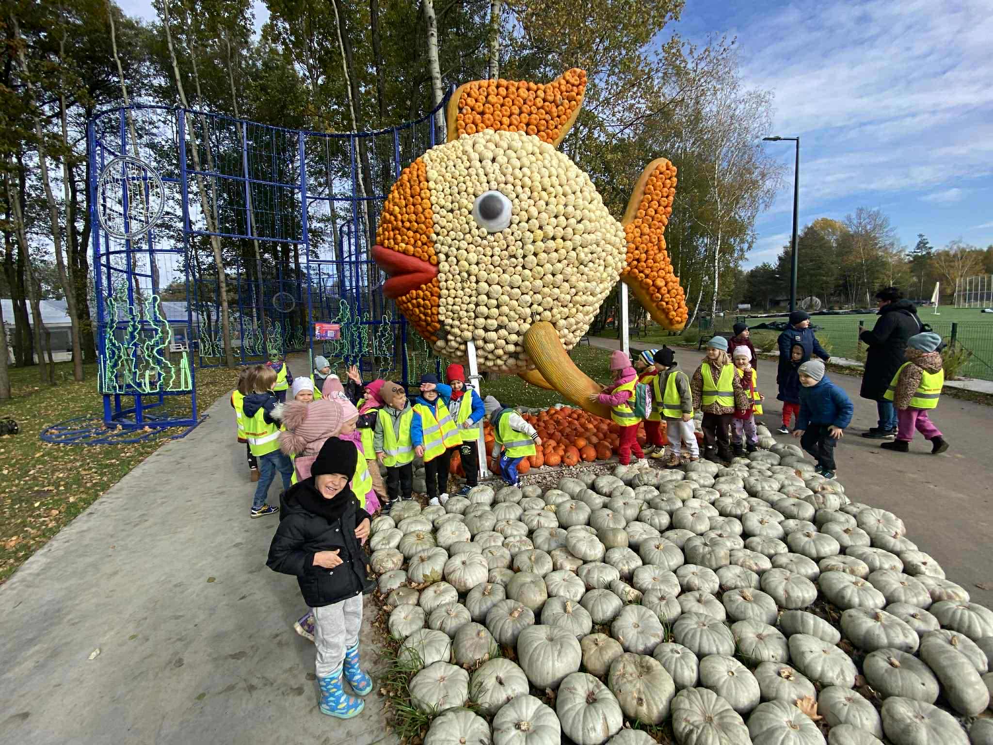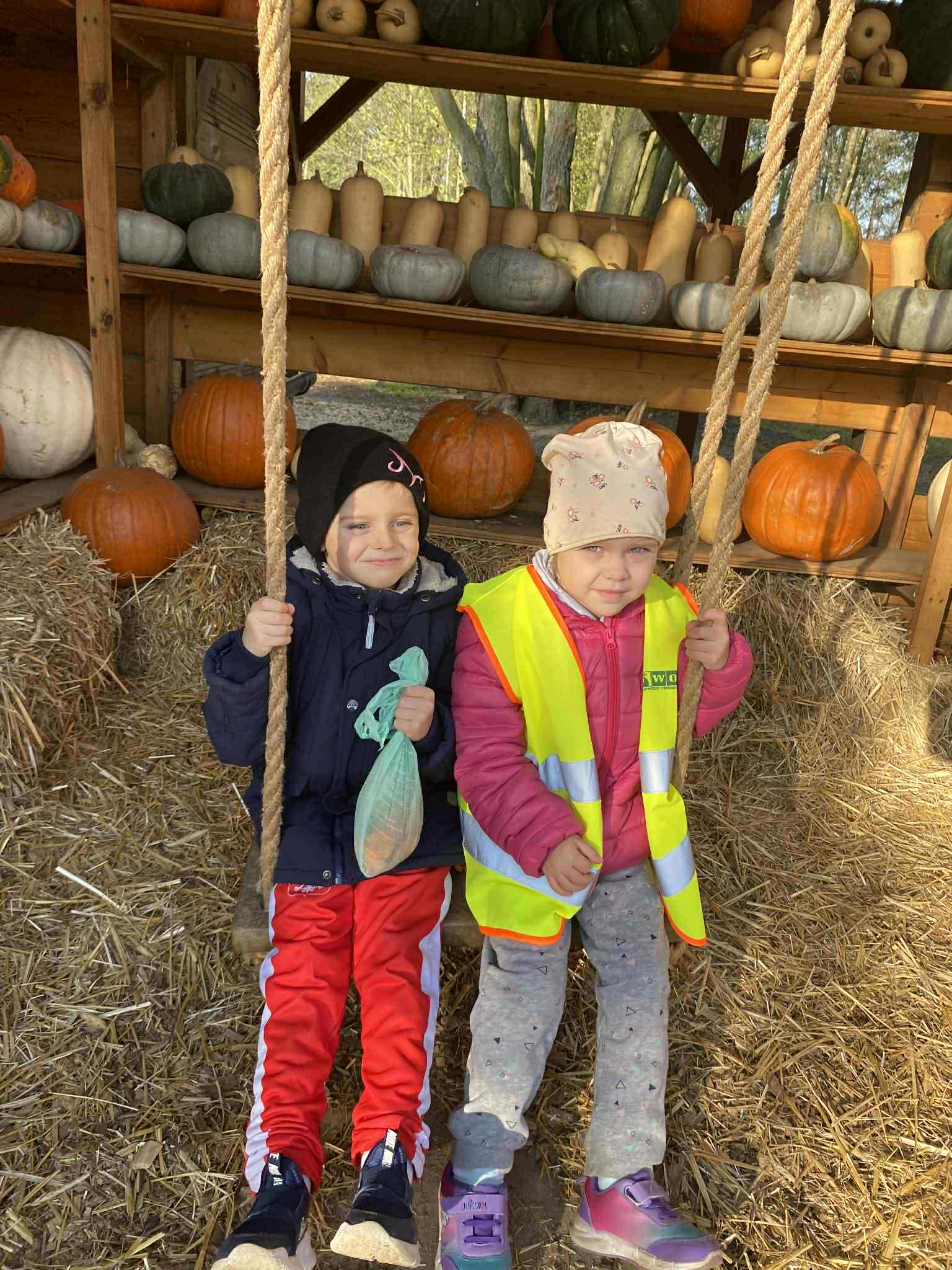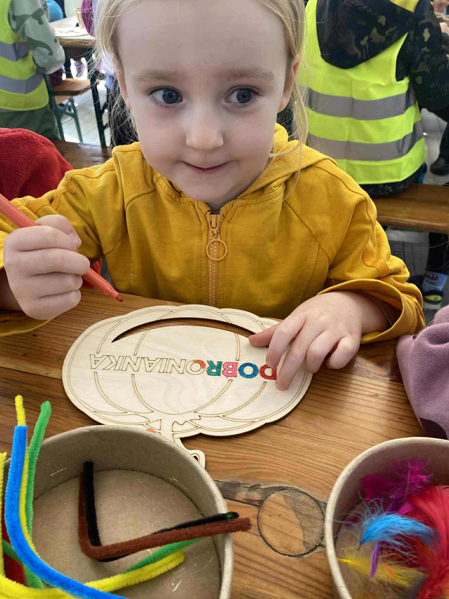 22.10.2025 r. dzieci z naszego przedszkola wybrały się na wycieczkę do Dobronianki w Dobroniu. Celem wycieczki były: obserwacja i czerpanie pozytywnych wrażeń w kontakcie z przyrodą, zainteresowanie różnorodnością gatunkową świata zwierząt oraz kształtowanie świadomości ekologicznej. Przedszkolaki miały możliwość poznać różne zwierzęta takie jak: alpaki, kozy, konie, wielbłądy, osły, mary, króliki, pawie i wiele innych, a także karmić niektóre z ich marchewkami oraz wysłuchać ciekawostek na ich temat. Po zwiedzaniu zoo udaliśmy się na warsztaty plastyczne „Zdobienie drewnianych dyń”, podczas których dzieci rozwijały zdolności manualne i inwencję twórczą. Pobyt w zoo dostarczył najmłodszym wiele radości oraz był wspaniałą lekcją przyrody przeżytą w ciekawym i atrakcyjnym miejscu.
