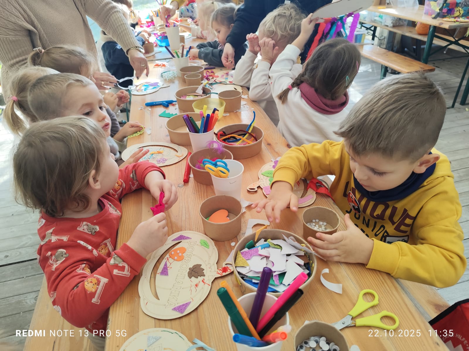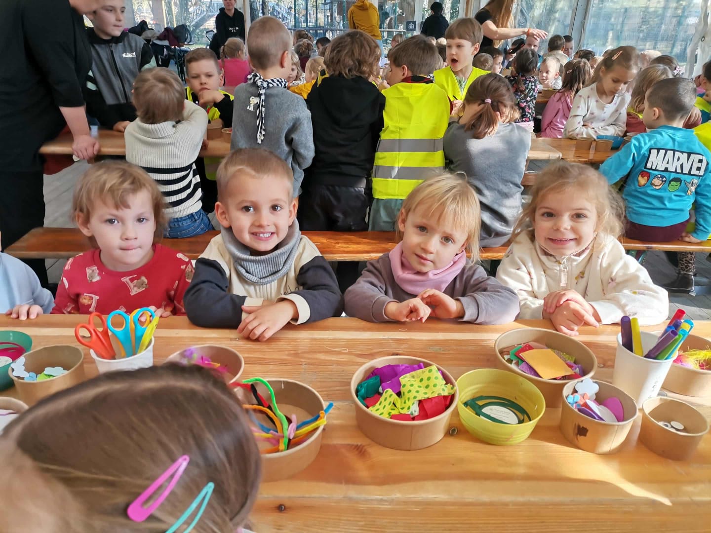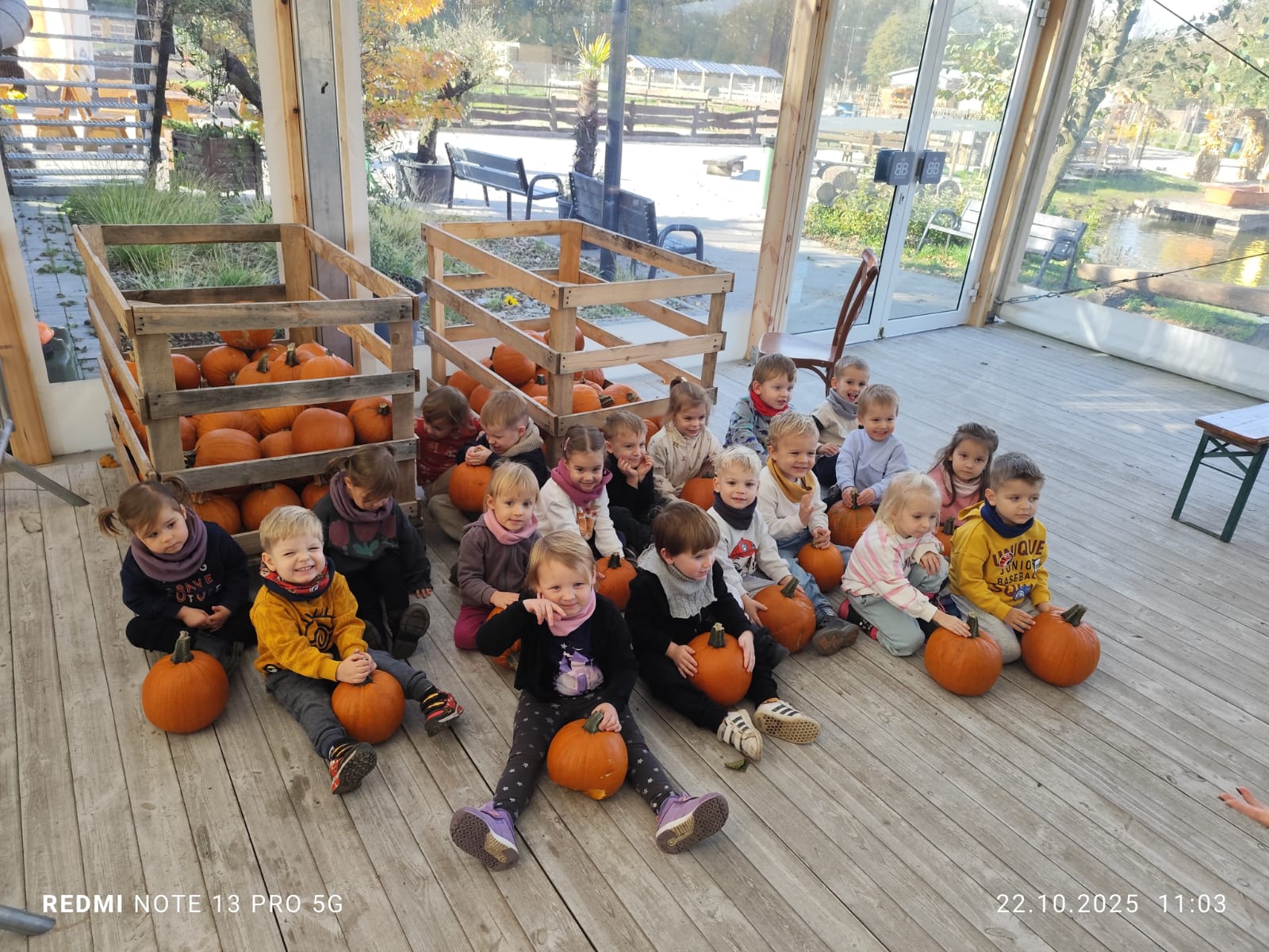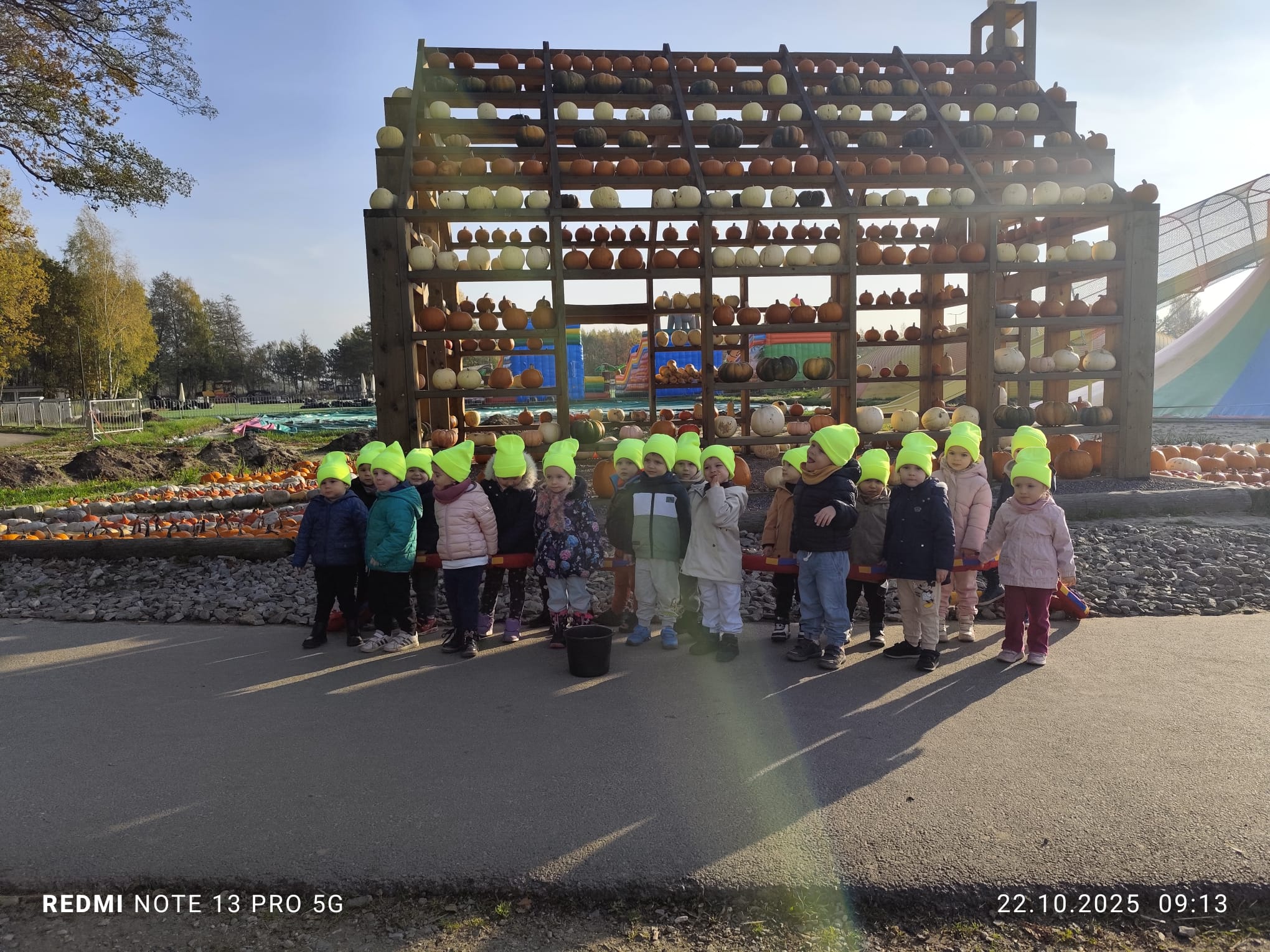 Przedszkolaki wzięły udział w wyjątkowej wycieczce do Dobronianki, gdzie oprócz zwiedzania mini zoo, znajduje się wystawa dyń. Dzieci miały okazję nie tylko podziwiać kolorowe i różnorodne warzywa, ale także uczestniczyć w warsztatach ozdabiania drewnianych dyń, rozwijając swoją kreatywność i wyobraźnię.