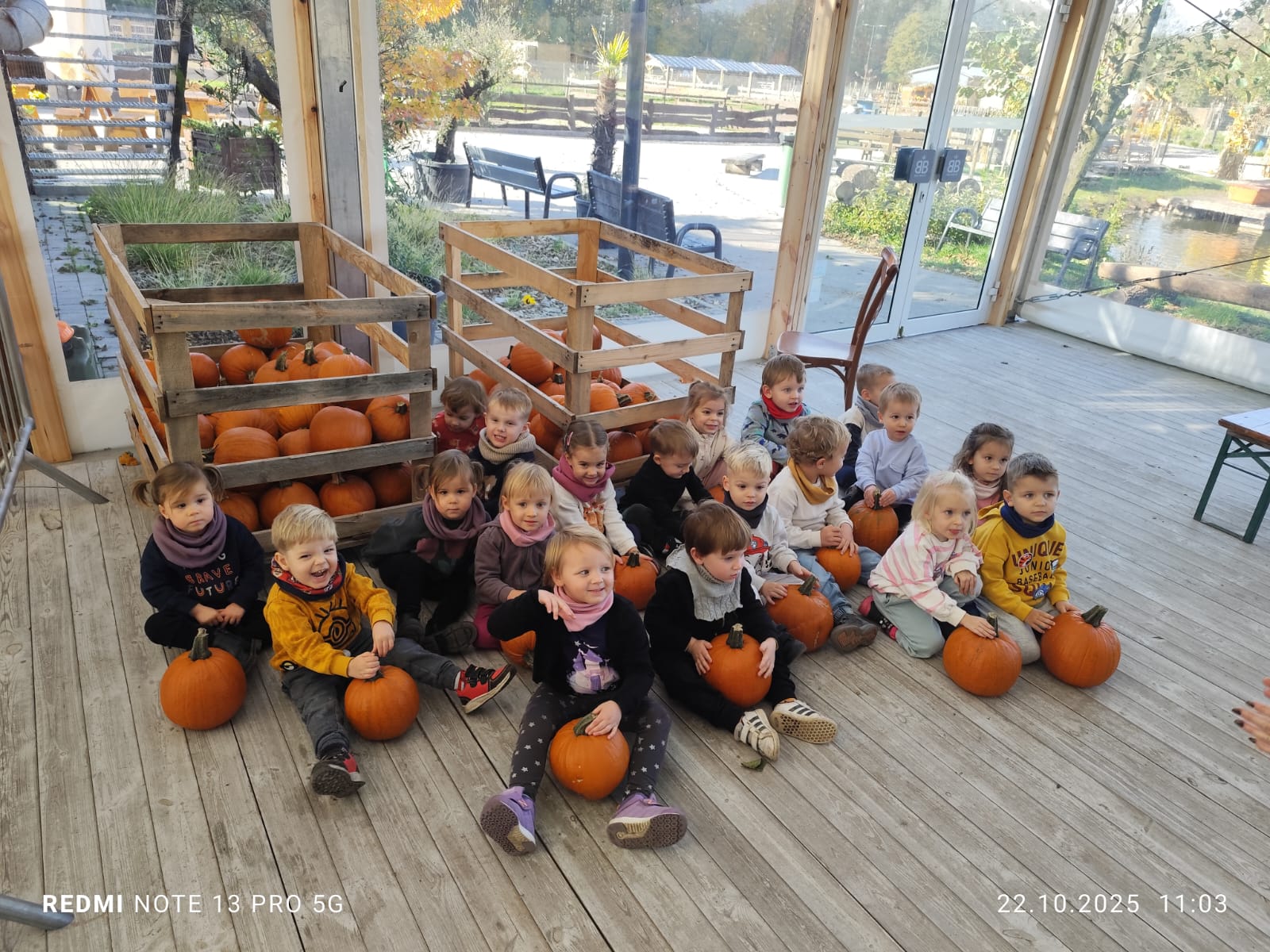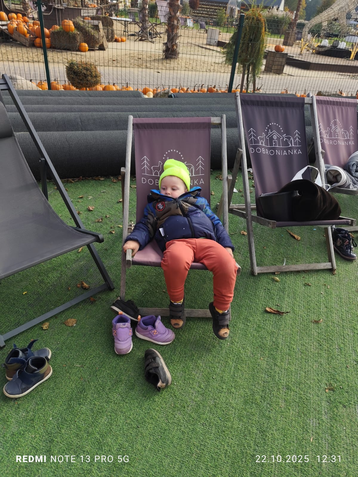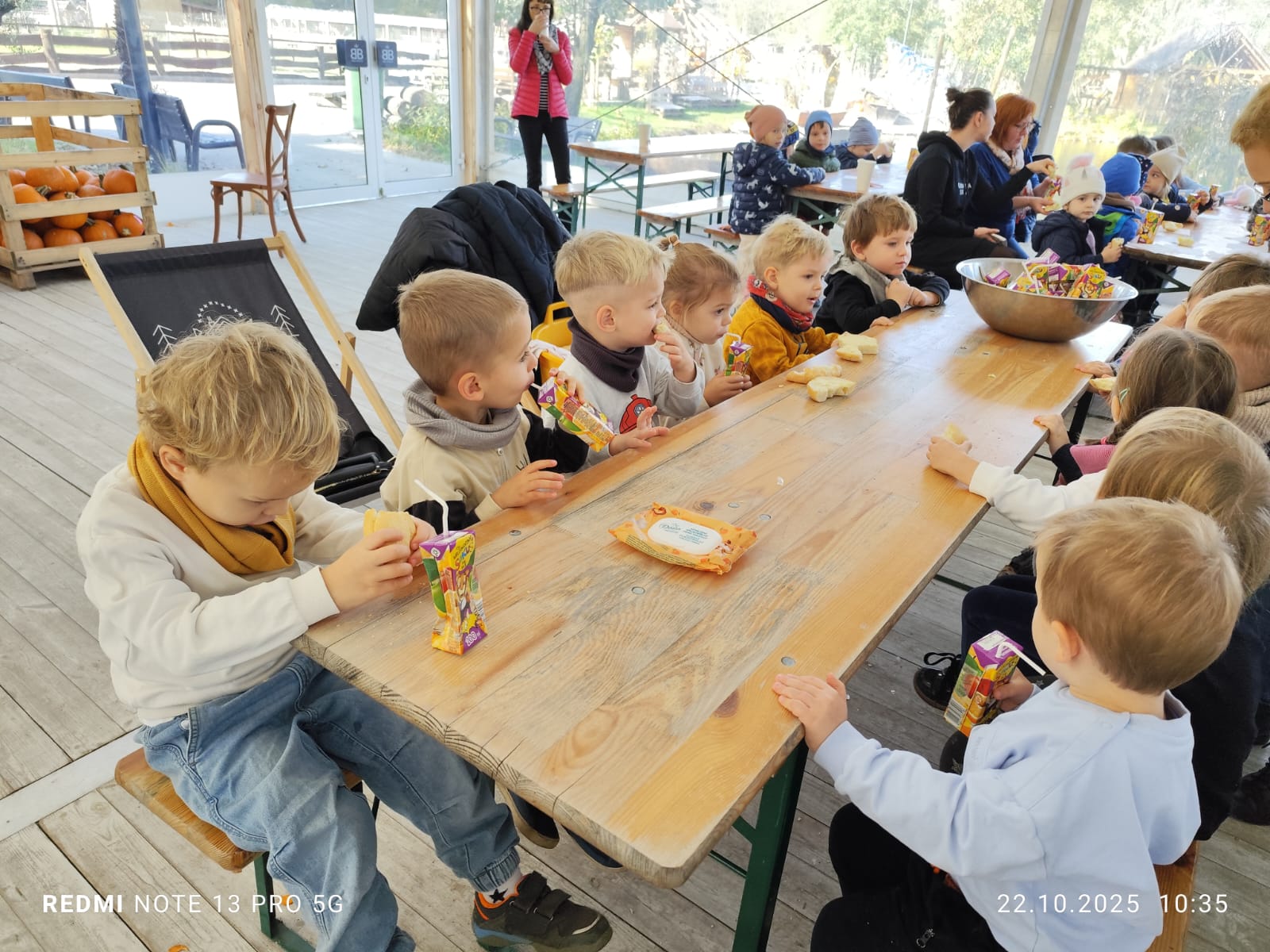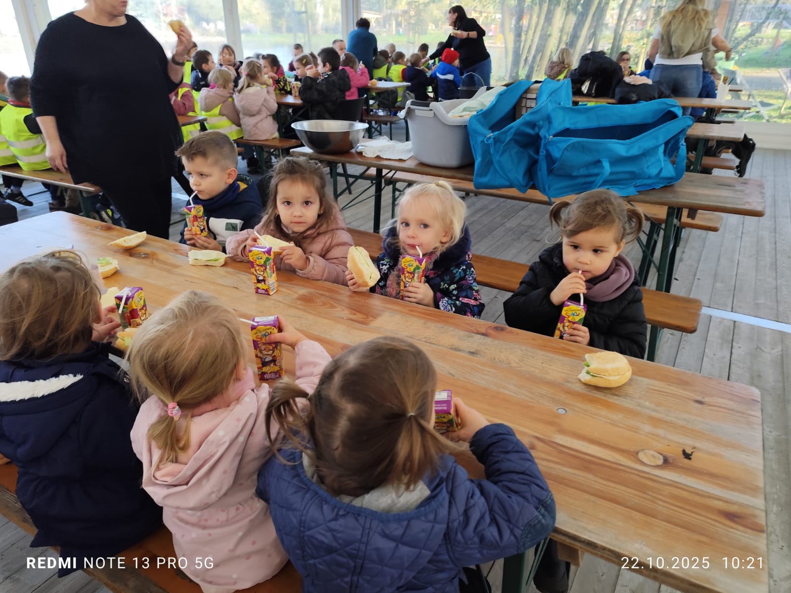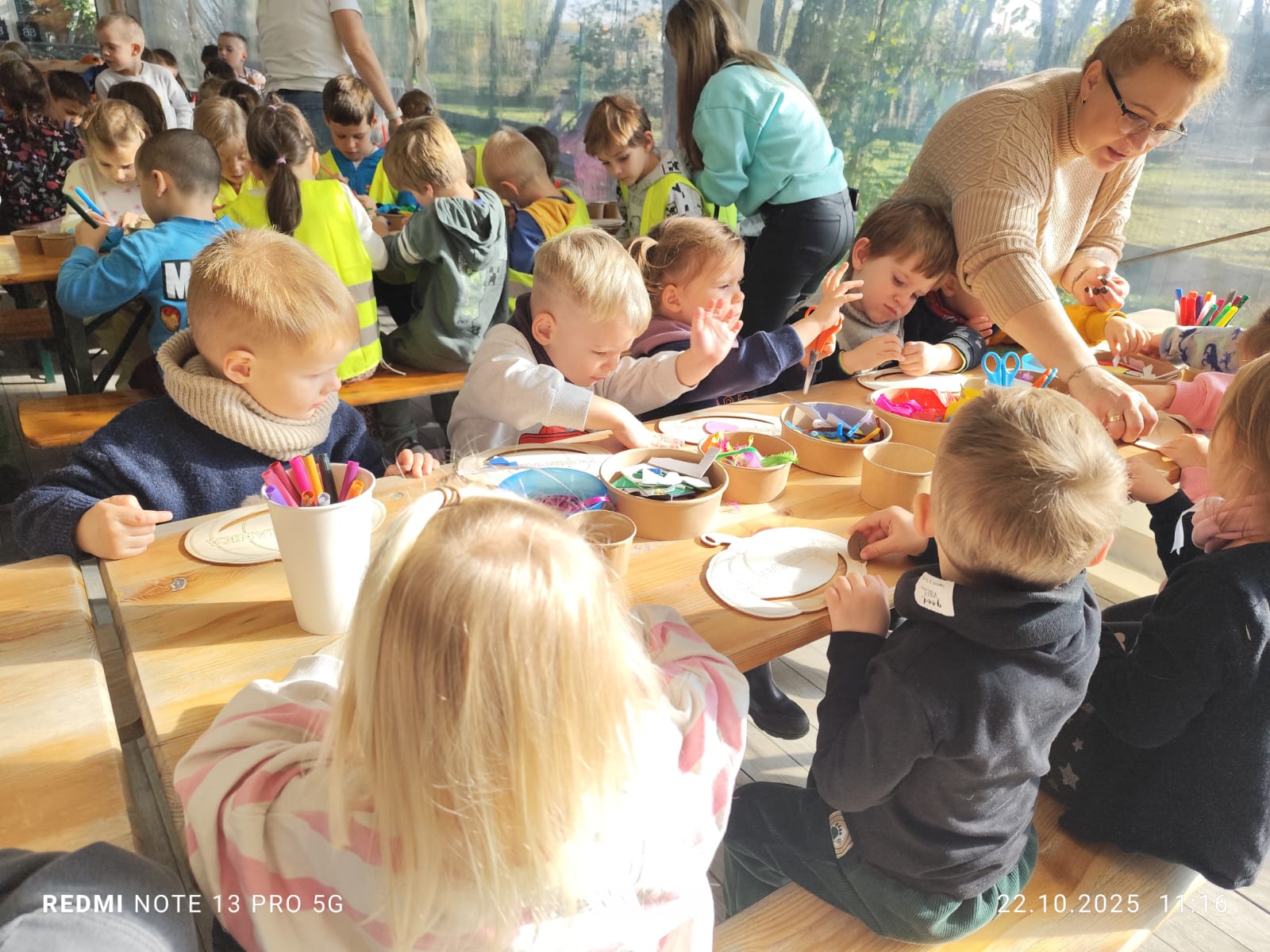 Przedszkolaki wzięły udział w wyjątkowej wycieczce do Dobronianki, gdzie oprócz zwiedzania mini zoo, znajduje się wystawa dyń. Dzieci miały okazję nie tylko podziwiać kolorowe i różnorodne warzywa, ale także uczestniczyć w warsztatach ozdabiania drewnianych dyń, rozwijając swoją kreatywność i wyobraźnię.
