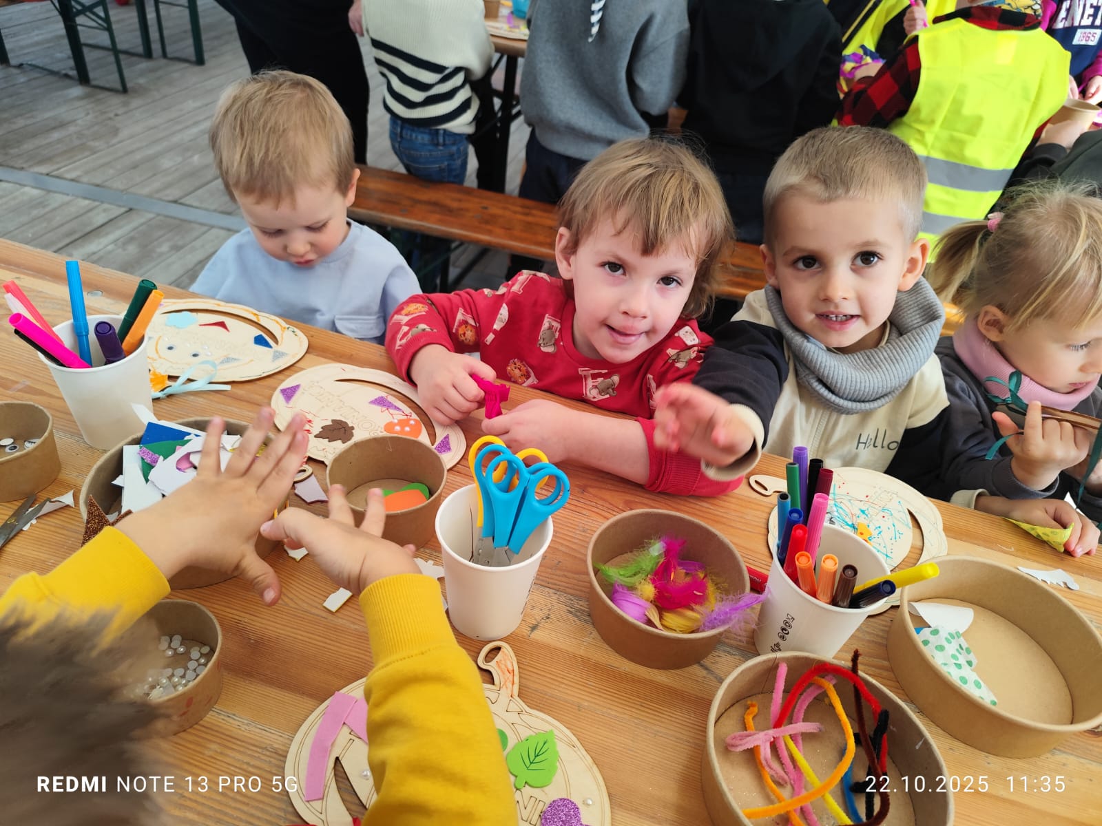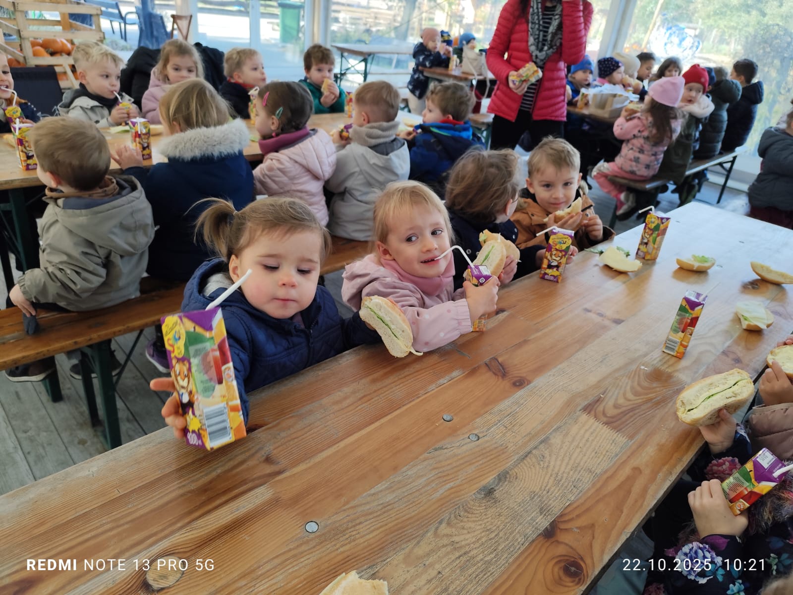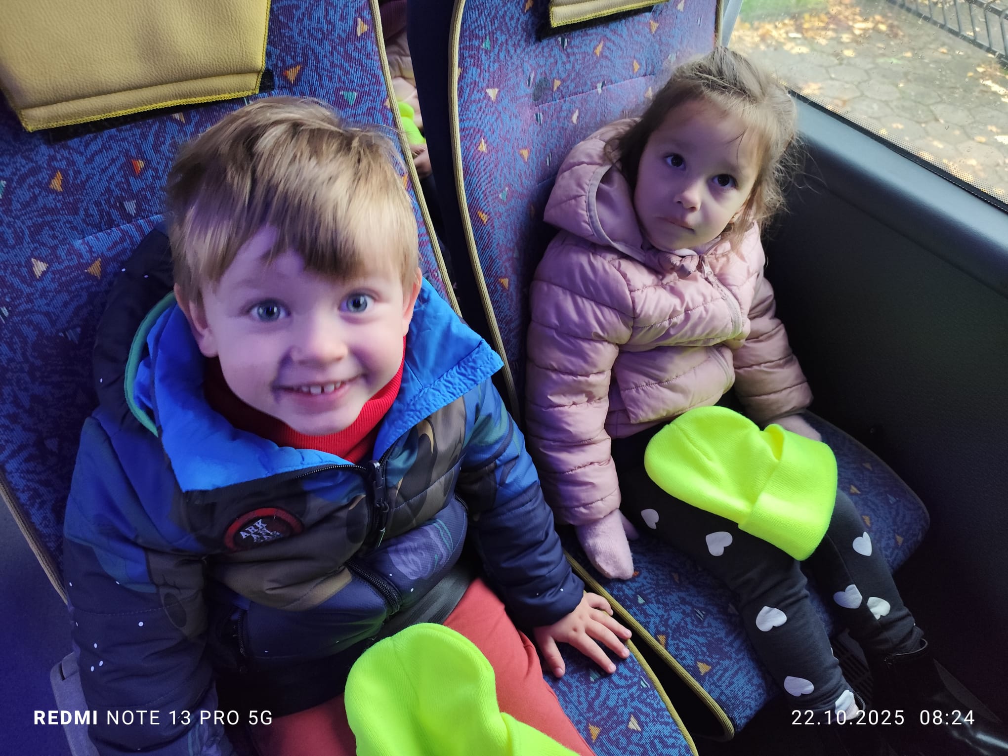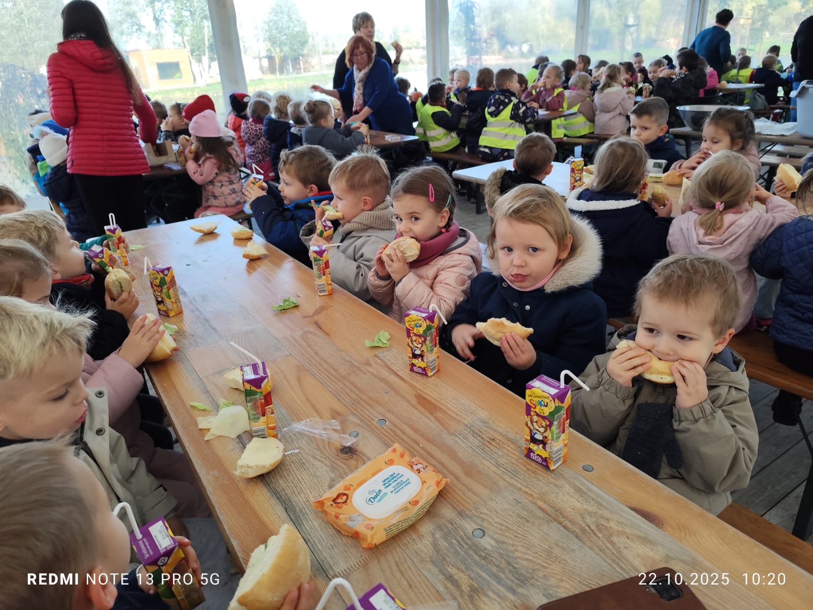 Przedszkolaki wzięły udział w wyjątkowej wycieczce do Dobronianki, gdzie oprócz zwiedzania mini zoo, znajduje się wystawa dyń. Dzieci miały okazję nie tylko podziwiać kolorowe i różnorodne warzywa, ale także uczestniczyć w warsztatach ozdabiania drewnianych dyń, rozwijając swoją kreatywność i wyobraźnię.