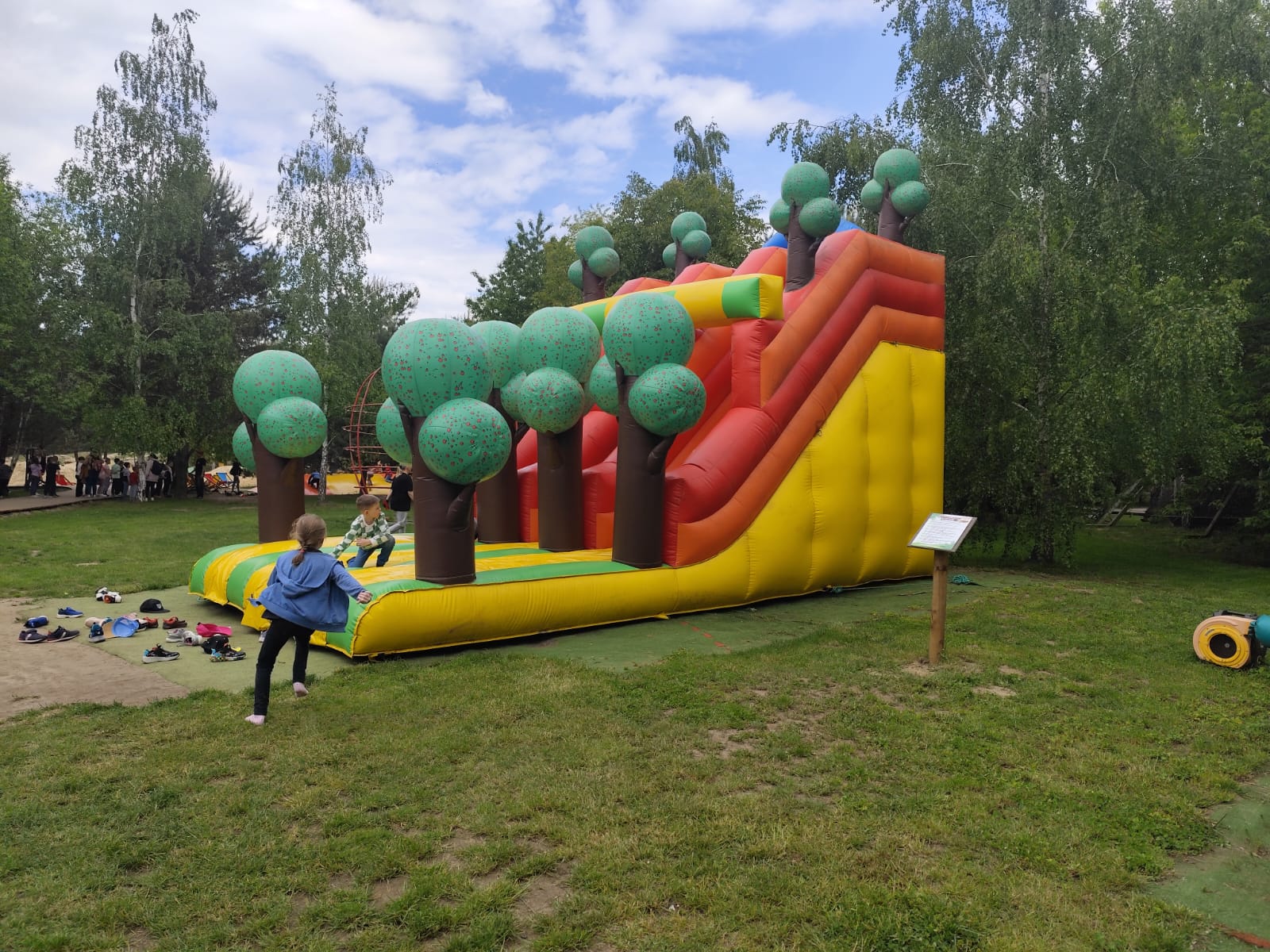 przejechać się ciuchcią Klemensa i zobaczyć park z zupełnie innej perspektywy, skorzystać z licznych atrakcji – dmuchańców, zjeżdżalni, placów zabaw i strefy kreatywnej zabawy, zaczerpnąć świeżego powietrza w otoczeniu tężni, zjeść pyszny posiłek na łonie natury.