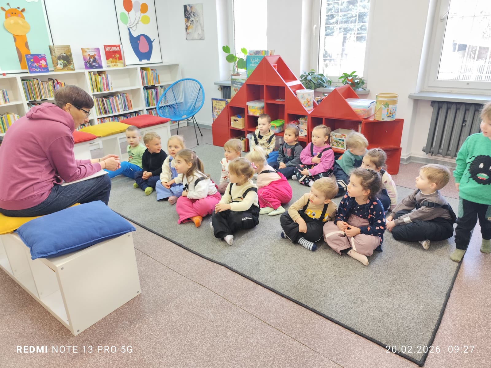 Nasze przedszkolaki wybrały się z wizytą do pobliskiej biblioteki, gdzie czekało na nie bardzo ciekawe spotkanie. Już od progu dzieci poczuły wyjątkową atmosferę tego miejsca – pełnego książek, historii i bohaterów ukrytych na kartach opowieści.