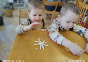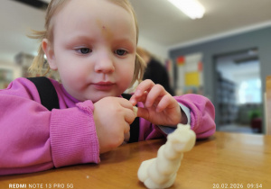Po wysłuchaniu opowieści przyszedł czas na twórczą zabawę. Dzieci z ogromnym zaangażowaniem lepiły z masy solnejwłasne zwierzątka. Powstało wiele ciekawych i bardzo pomysłowych prac, które były dowodem na to, jak bogata potrafi być dziecięca wyobraźnia.