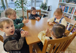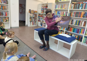 Podczas zajęć dzieci wysłuchały opowieści o sympatycznym wilczku. Historia wzbudziła duże zainteresowanie i była doskonałą okazją do rozmowy o bohaterach książki oraz o tym, jak ważną rolę odgrywa wyobraźnia podczas czytania.